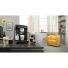 - Espressor negru, elegant, cu finisaje cromate atrăgătoare.