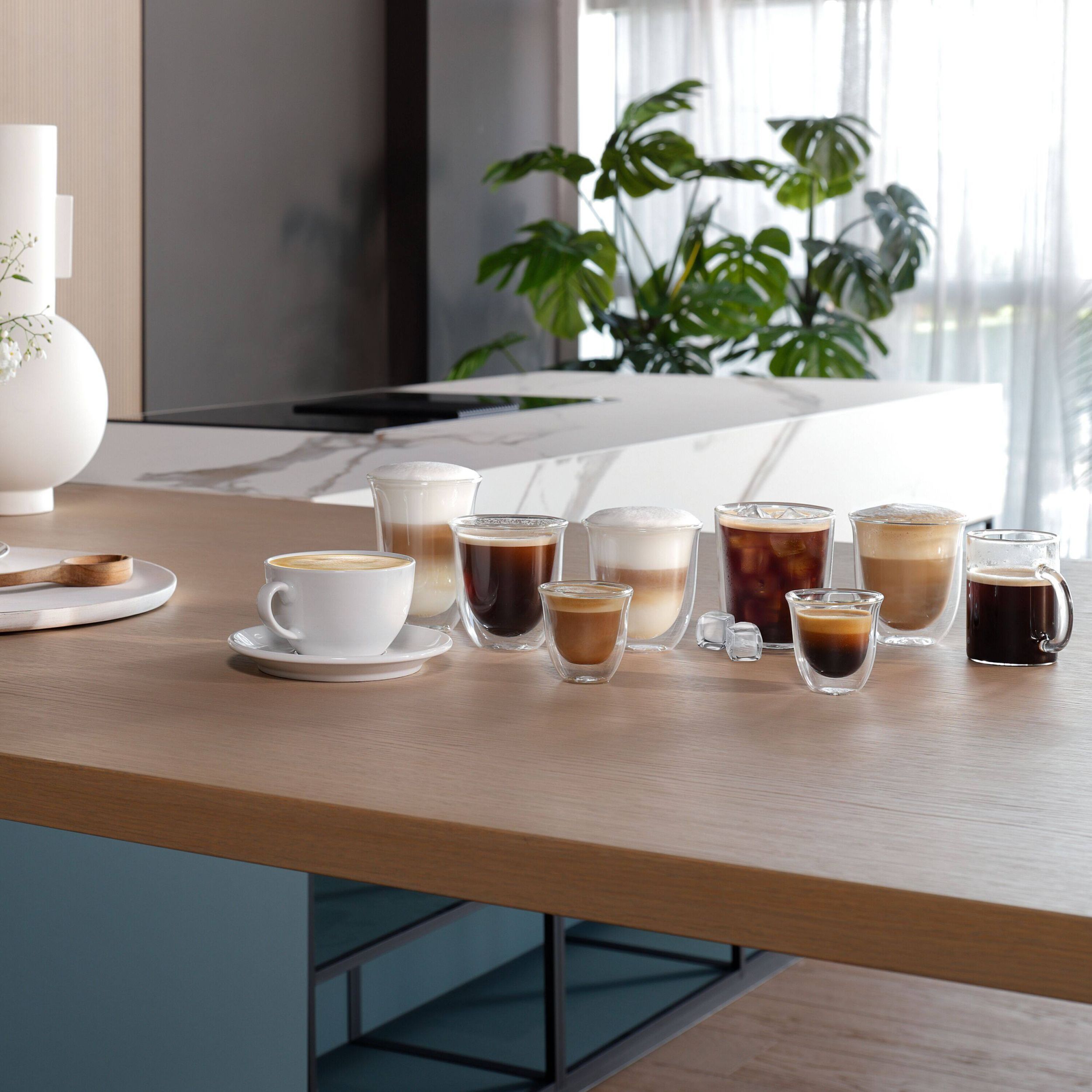 18 băuturi preparate direct, cu o simpla atingere de buton: Cold Coffee, Cold Americano, Espresso, Cafea, Long, Doppio+, Americano, Cappuccino, Latte Macchiato, Cappuccino+, Cappuccino Mix, Hot Milk, Caffe Latte, Flat White, Cortado, Espresso Macchiato, Lapte cald spumat, Apă caldă.