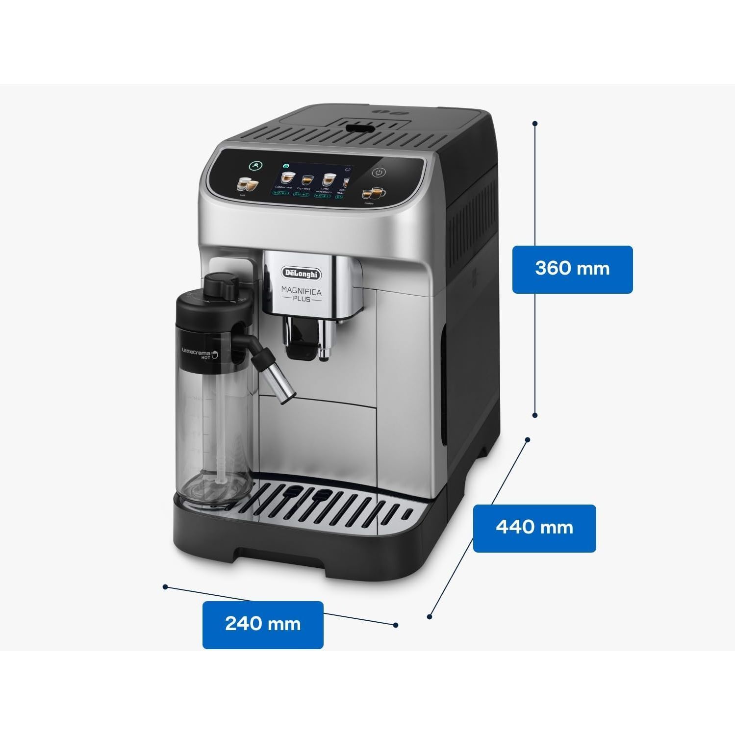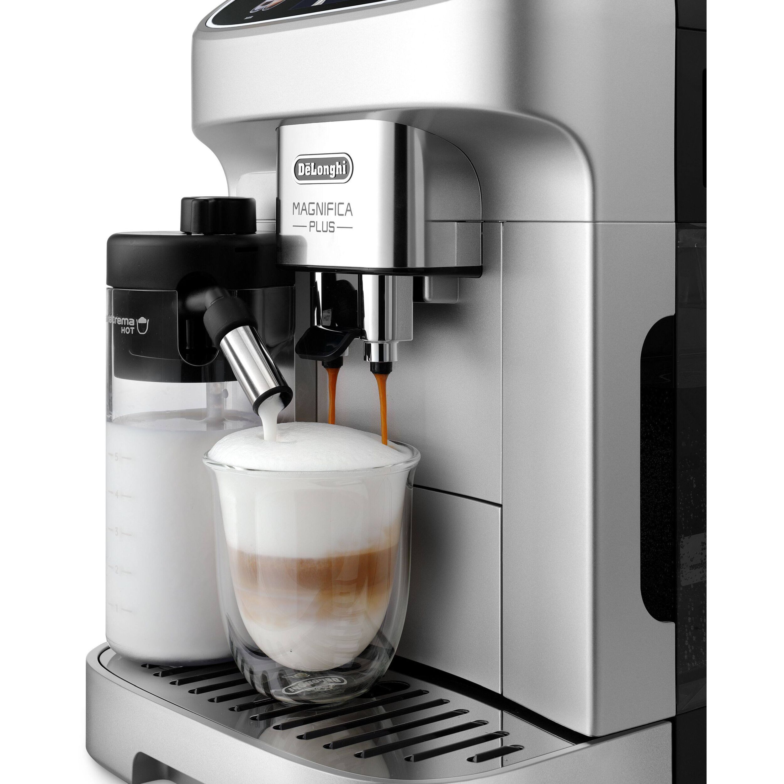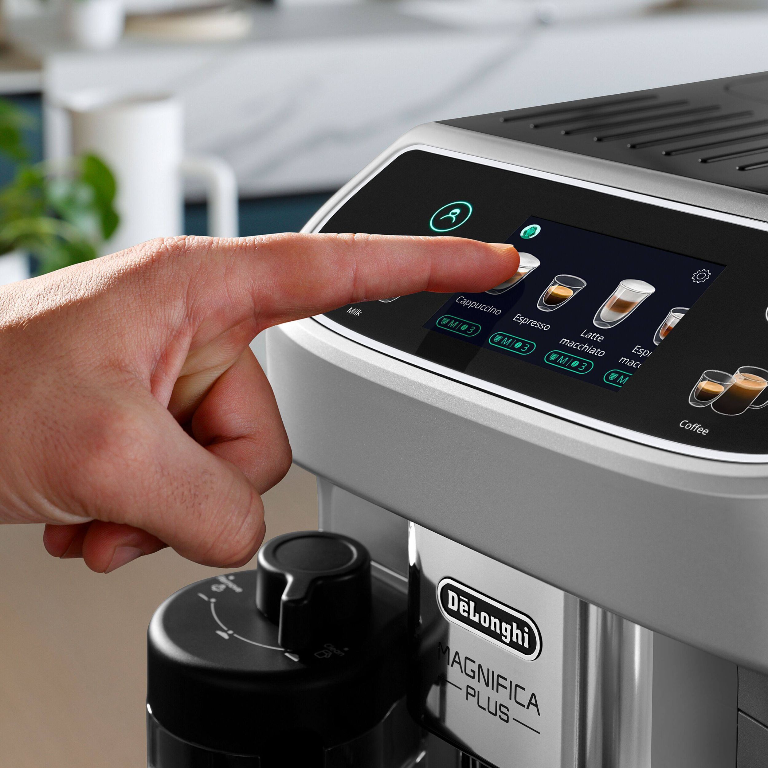 Există o cafea potrivită oricărui gust grație espressorului Magnifica Plus și celor 18 băuturi disponibile prin simpla apăsare a unui buton. Bucură-te de o experiență captivantă prin intermediul afișajului color tactil de 3,5", cu animații și personalizează preferințele cu până la 4 profiluri de utilizator. Savurează o spumă bogată și fină folosind tehnologia LatteCrema Hot pentru toate băuturile pe bază de lapte.