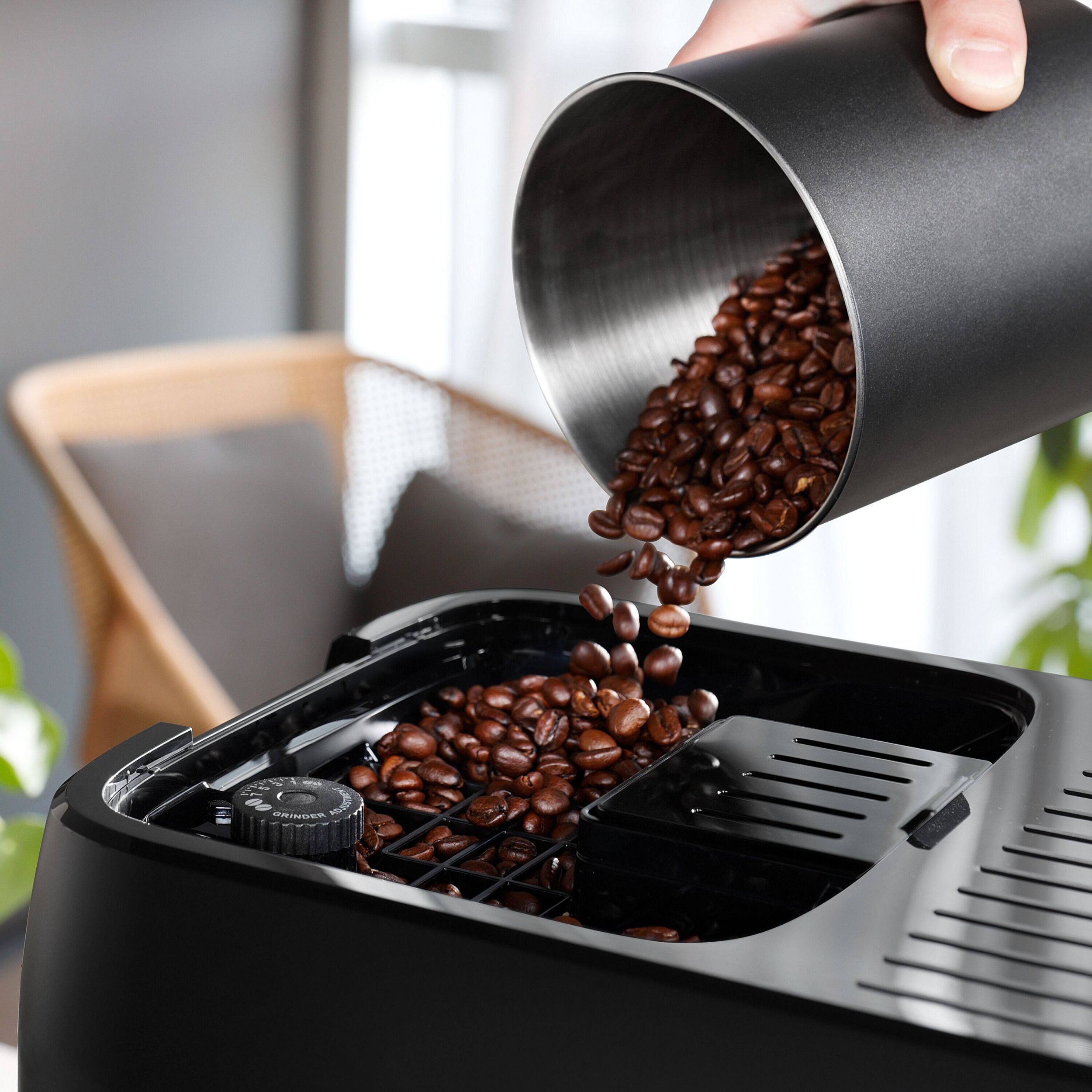 Espressorul râșnește boabele de cafea chiar înainte de preparare pentru ca tu să te bucuri de o cafea de calitate în fiecare ceașcă.