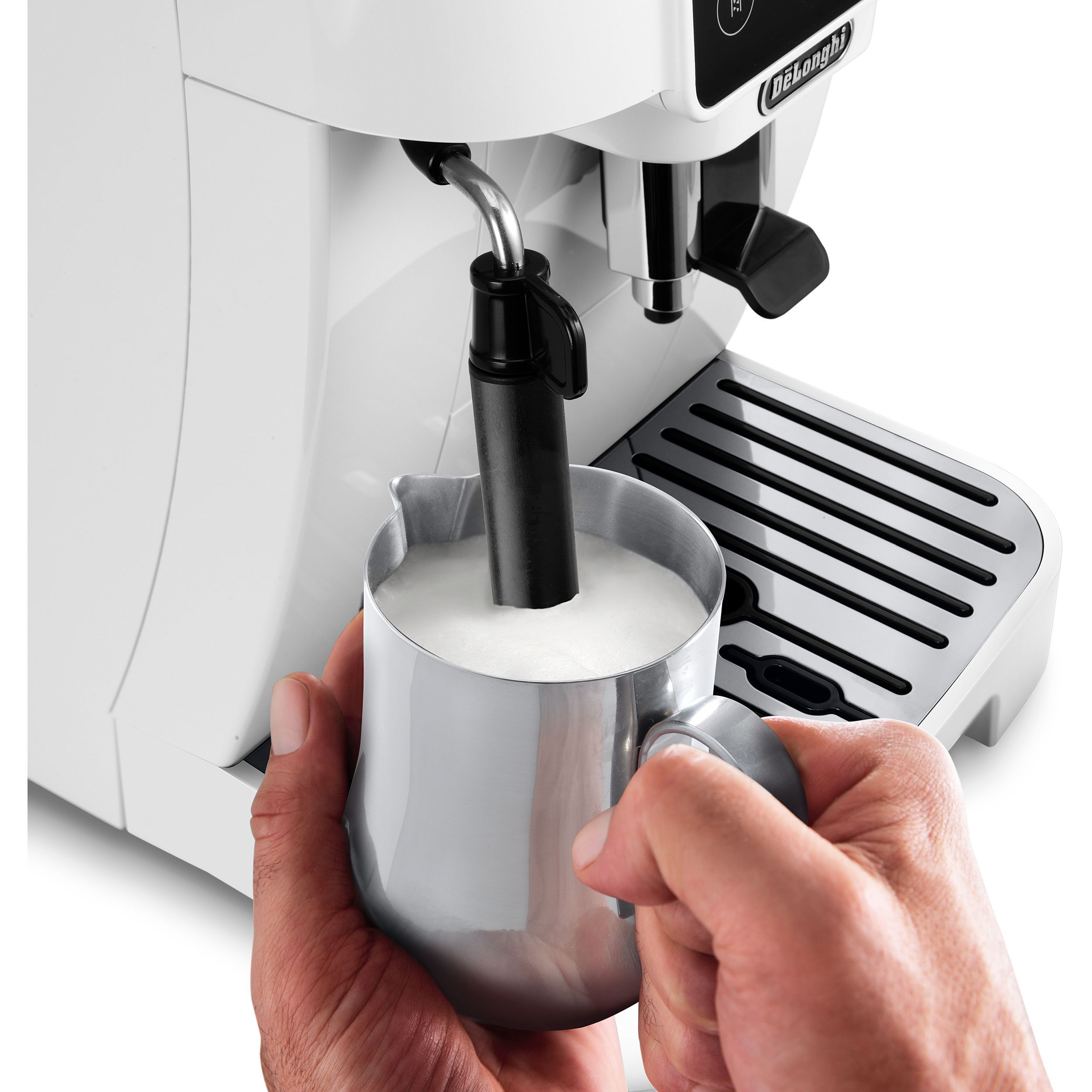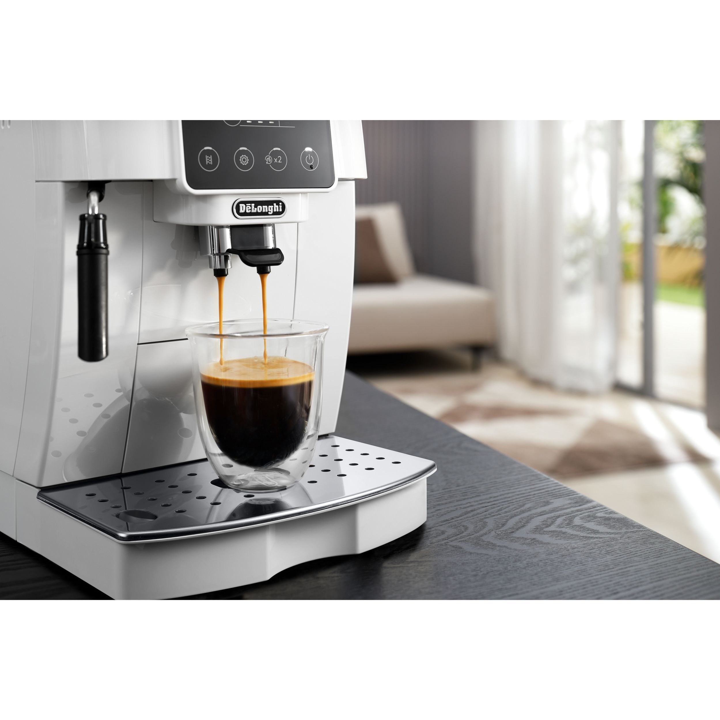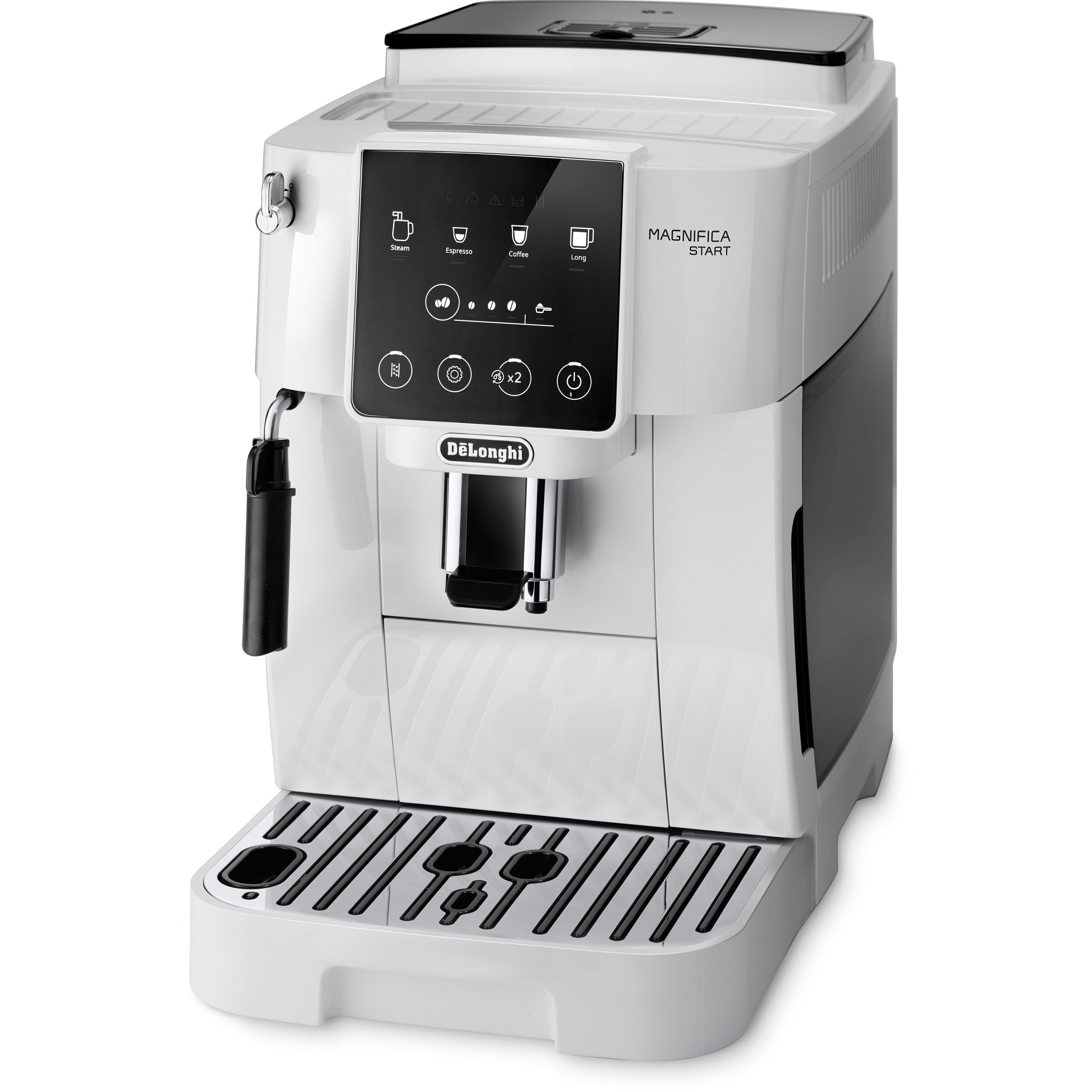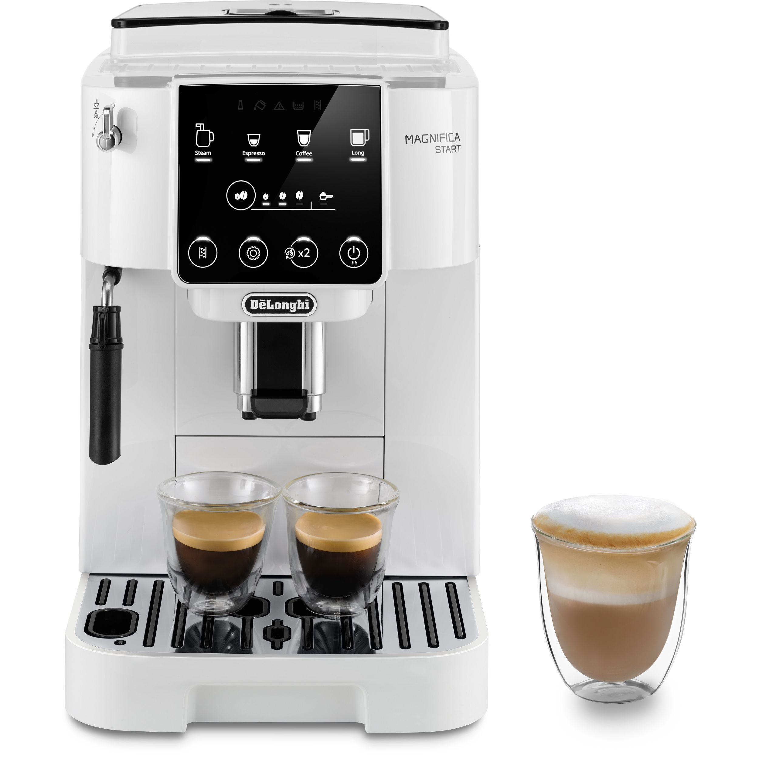 Espressorul automat De’Longhi Magnifica Start îți oferă tot ce ai nevoie pentru a pătrunde în lumea cafelei, la tine acasă, preparând băuturile tale preferate pe bază de espresso. Echipat cu o interfață prietenoasă și având un finisaj alb atrăgător, pune la dispoziție o selecție personalizată de băuturi preparate cu o simplă atingere de buton.