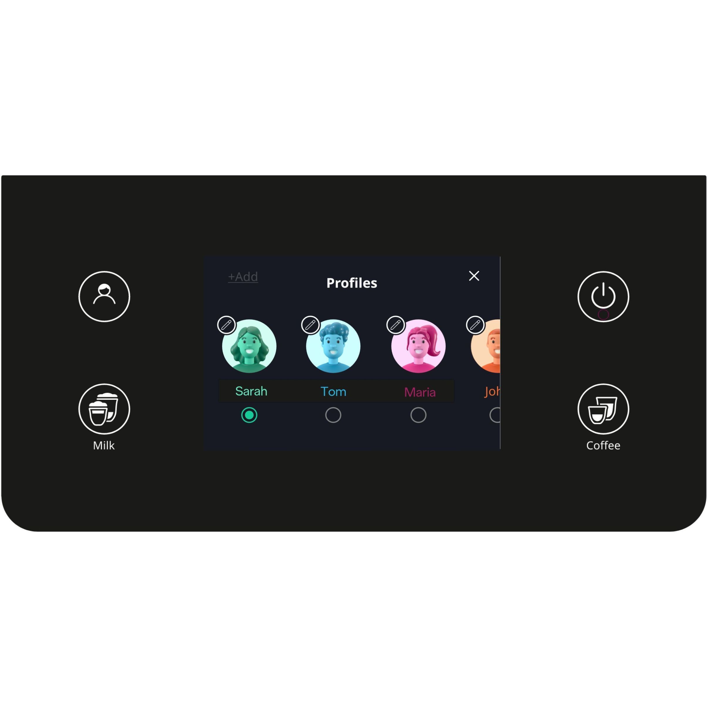 Bucură-te de interacțiunea cu afișajul color intuitiv și tactil, de 9cm, cu multe animații. Rivelia îți dezvăluie ritualul cafelei și ajustează meniul pe parcursul zilei, pentru o experiență captivantă, personalizată, cu până la 4 profiluri de utilizator.