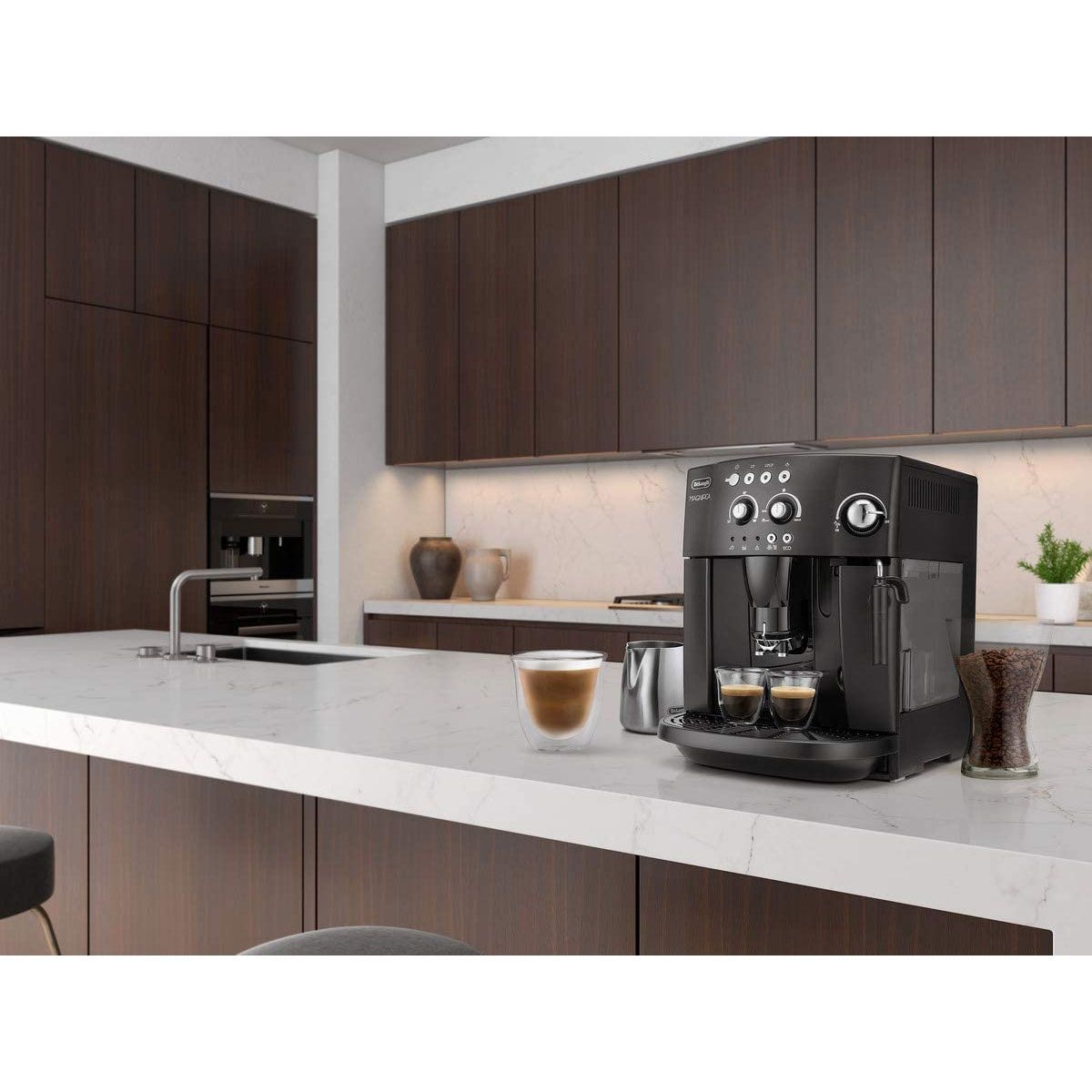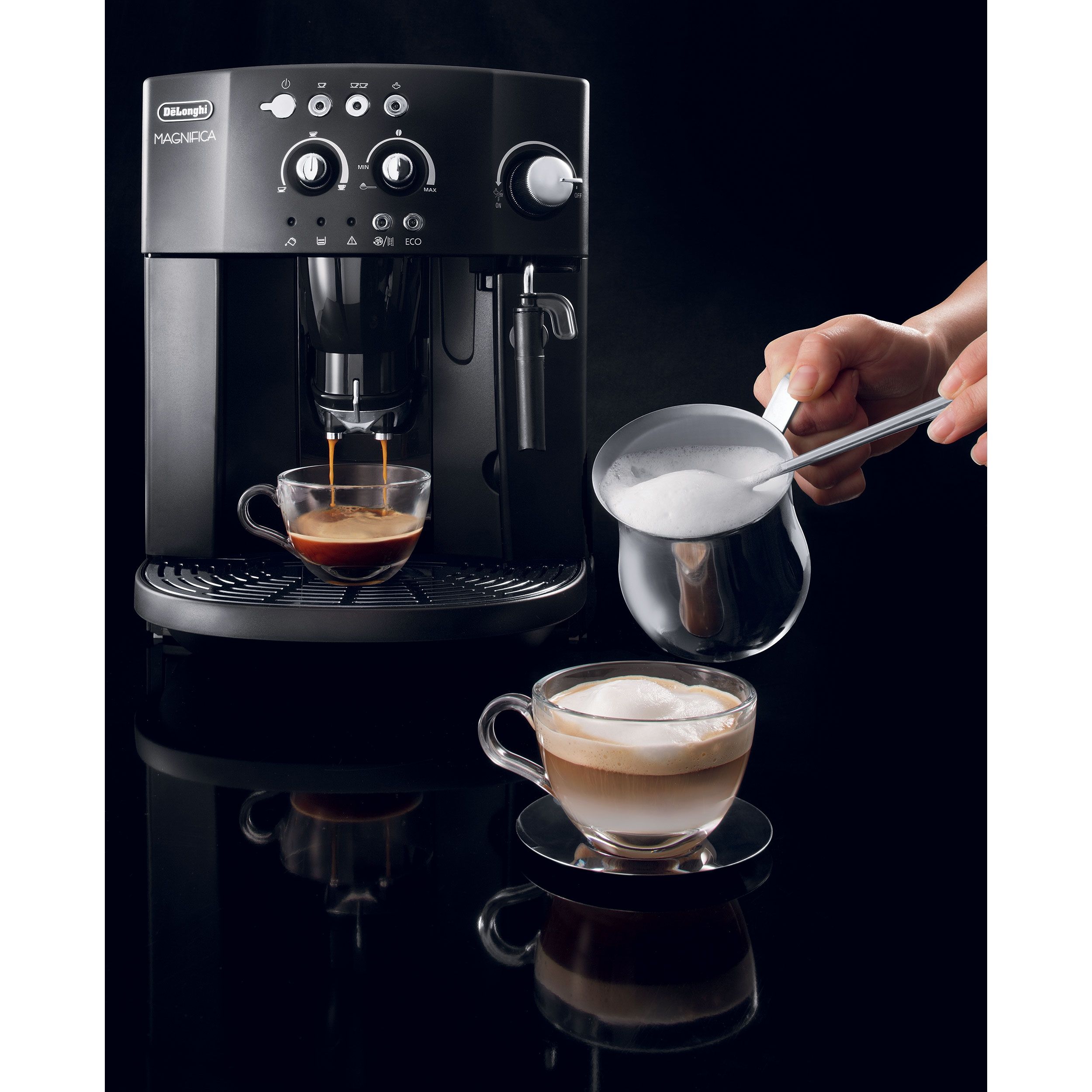 Espressorul automat Magnifica. Vă permite personalizarea băuturilor prin opțiunile de setare a cantității de apă, aromei și temperaturii, acesta este echipat cu un dispozitiv de spumare manuală a laptelui pentru a pregăti cu ușurință cappuccino sau lapte cald.