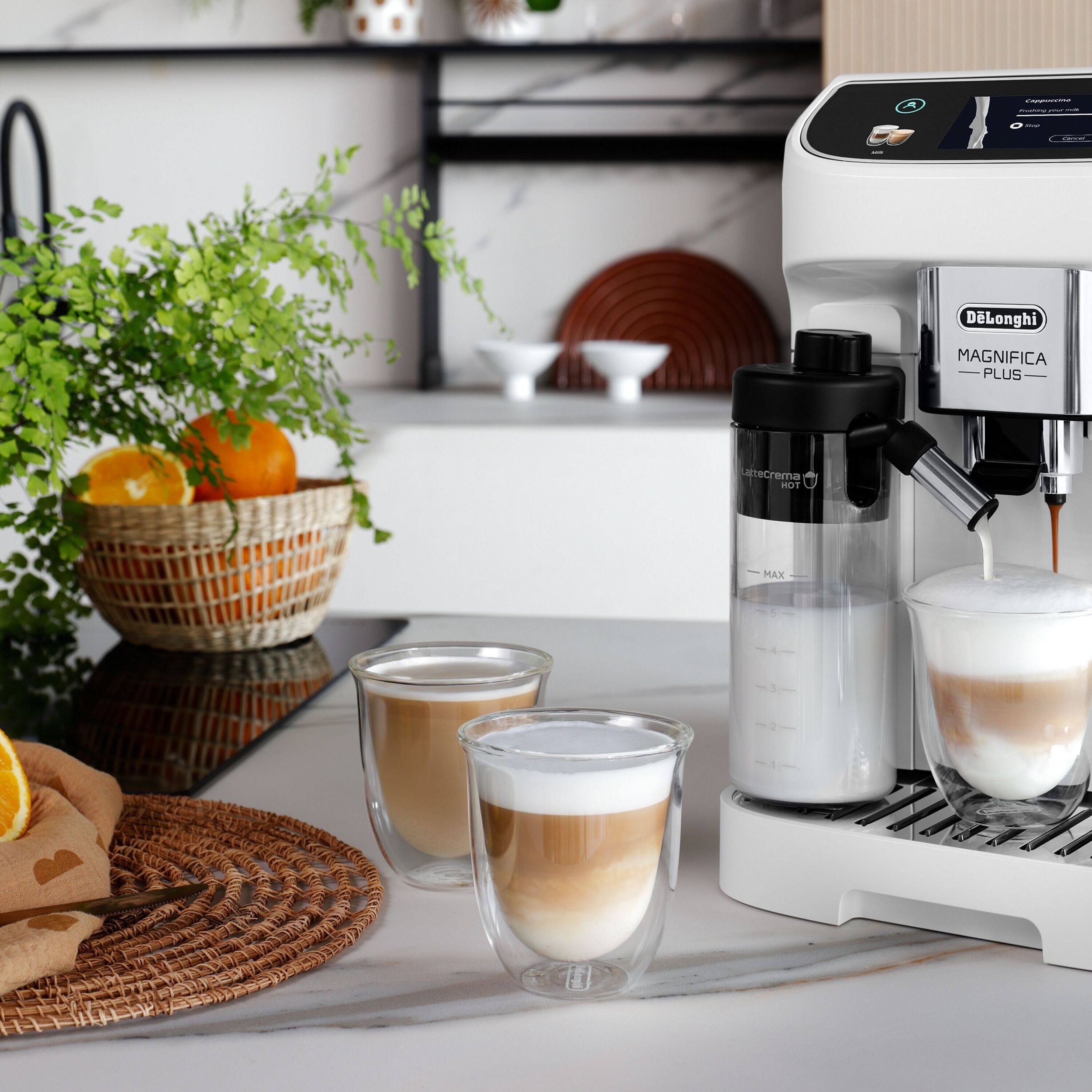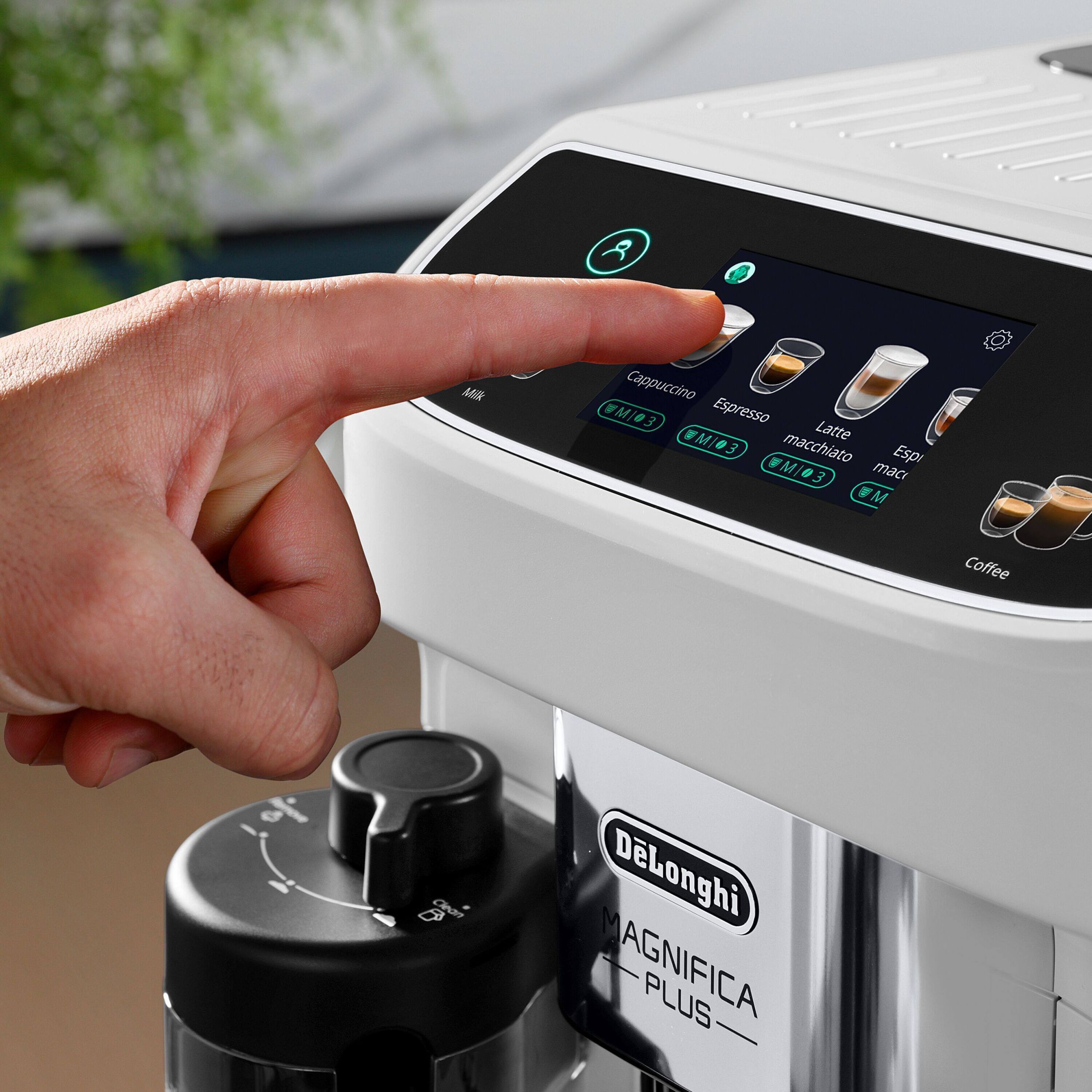 Există o cafea potrivită oricărui gust grație espressorului Magnifica Plus și celor 15 băuturi disponibile prin simpla apăsare a unui buton. Bucurați-vă de o experiență captivantă prin intermediul afișajului color tactil de 9cm, cu animații și personalizați preferințele cu până la 4 profiluri de utilizator. Savurați o spumă bogată și fină folosind tehnologia LatteCrema Hot pentru toate băuturile pe bază de lapte.