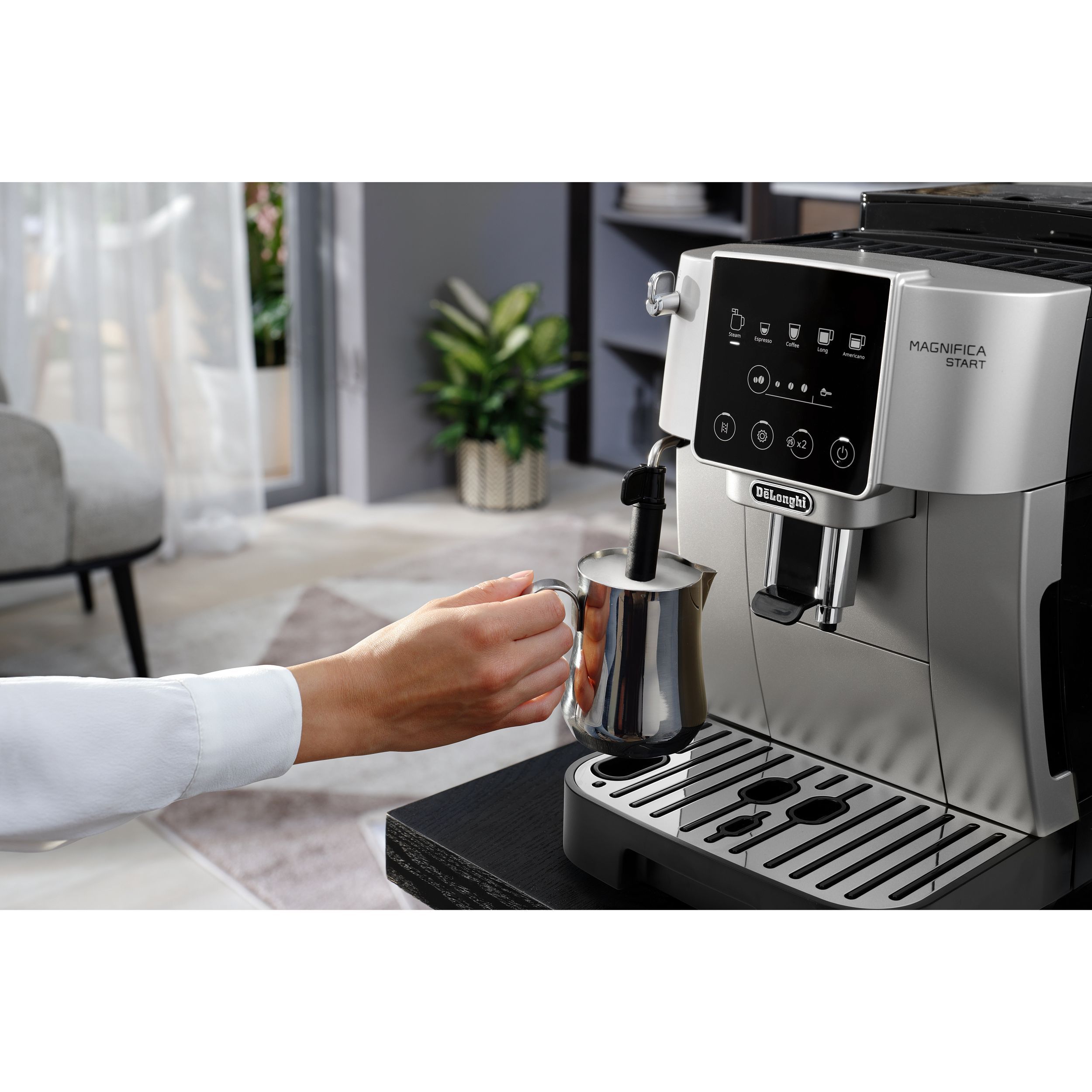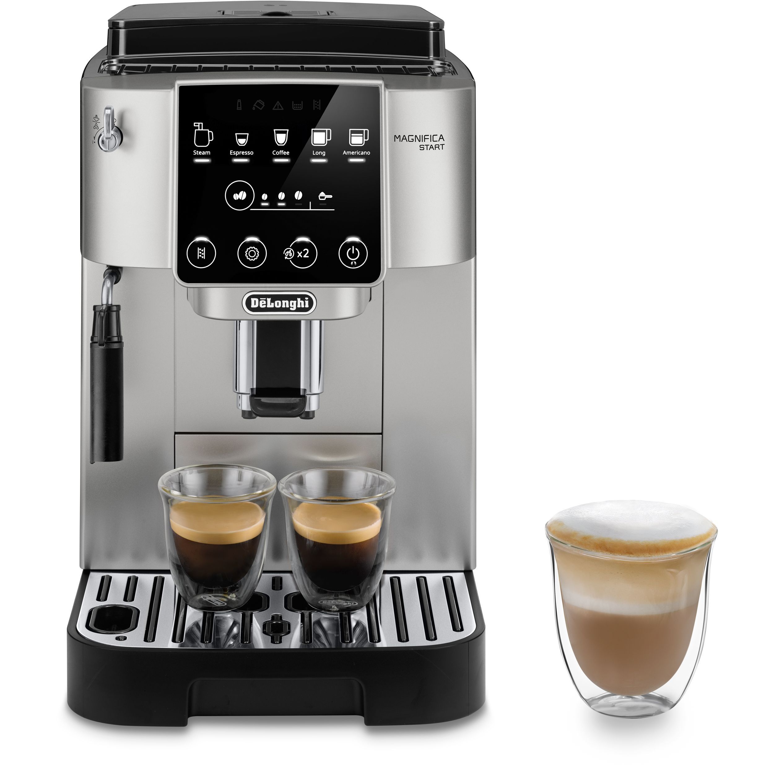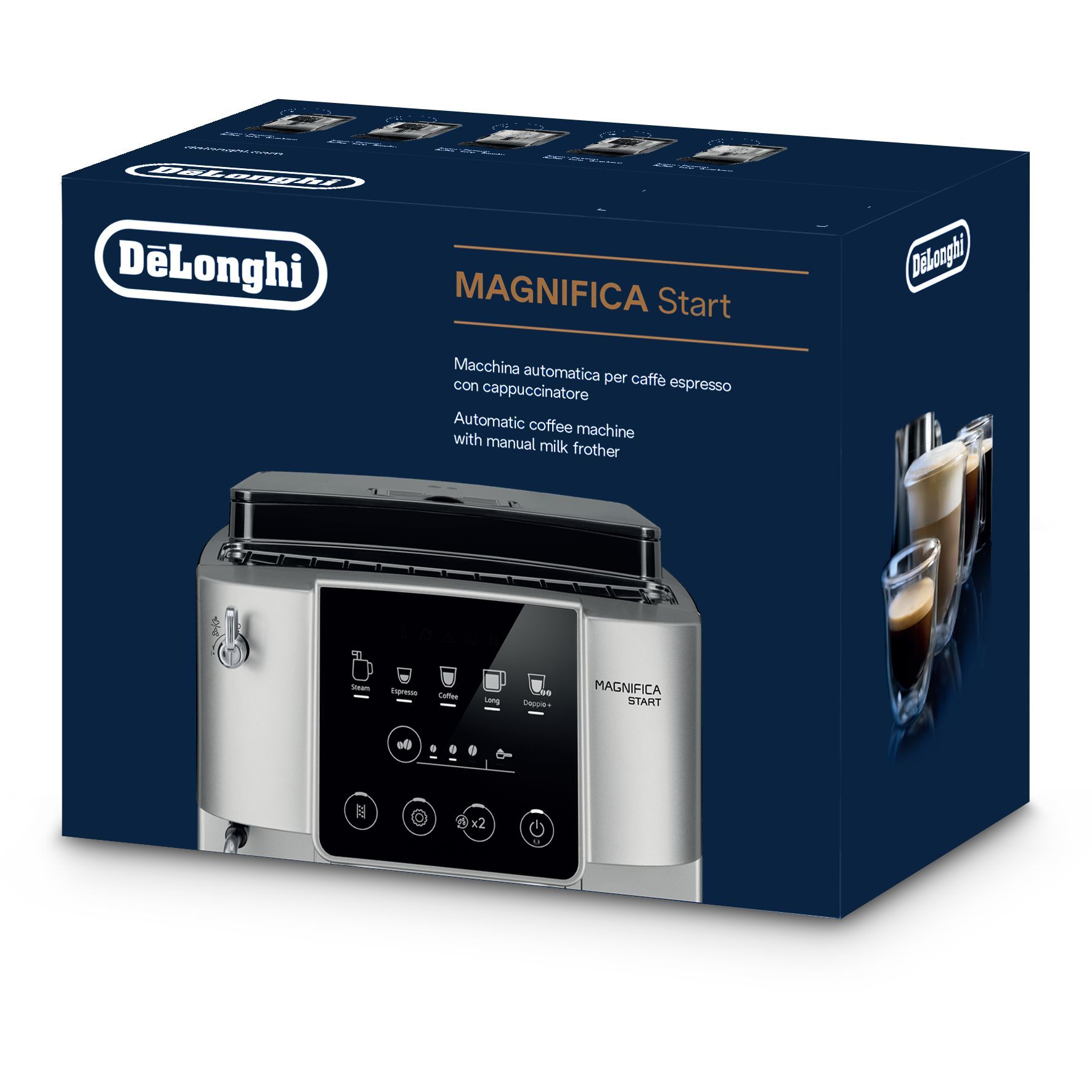 Espressorul automat De’Longhi Magnifica Start îți oferă tot ce ai nevoie pentru a pătrunde în lumea cafelei, la tine acasă, preparând băuturile tale preferate pe bază de espresso. Echipat cu o interfață prietenoasă și având un finisaj alb atrăgător, pune la dispoziție o selecție personalizată de băuturi preparate cu o simplă atingere de buton.