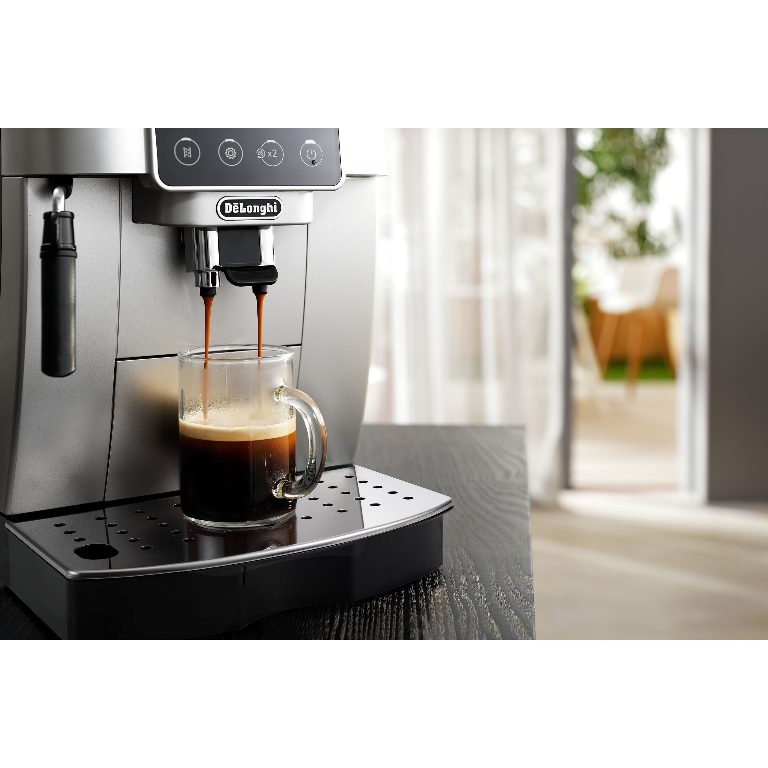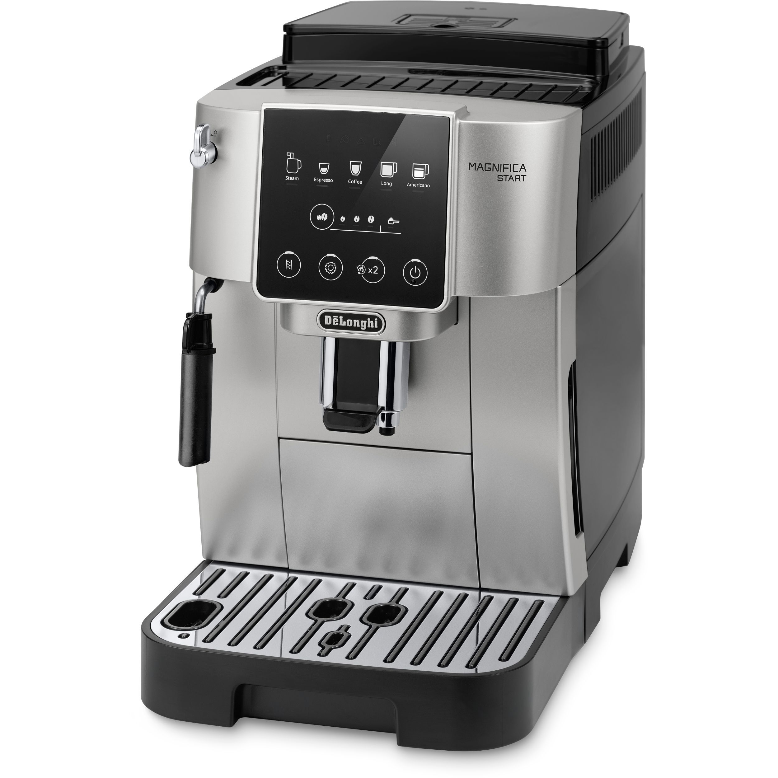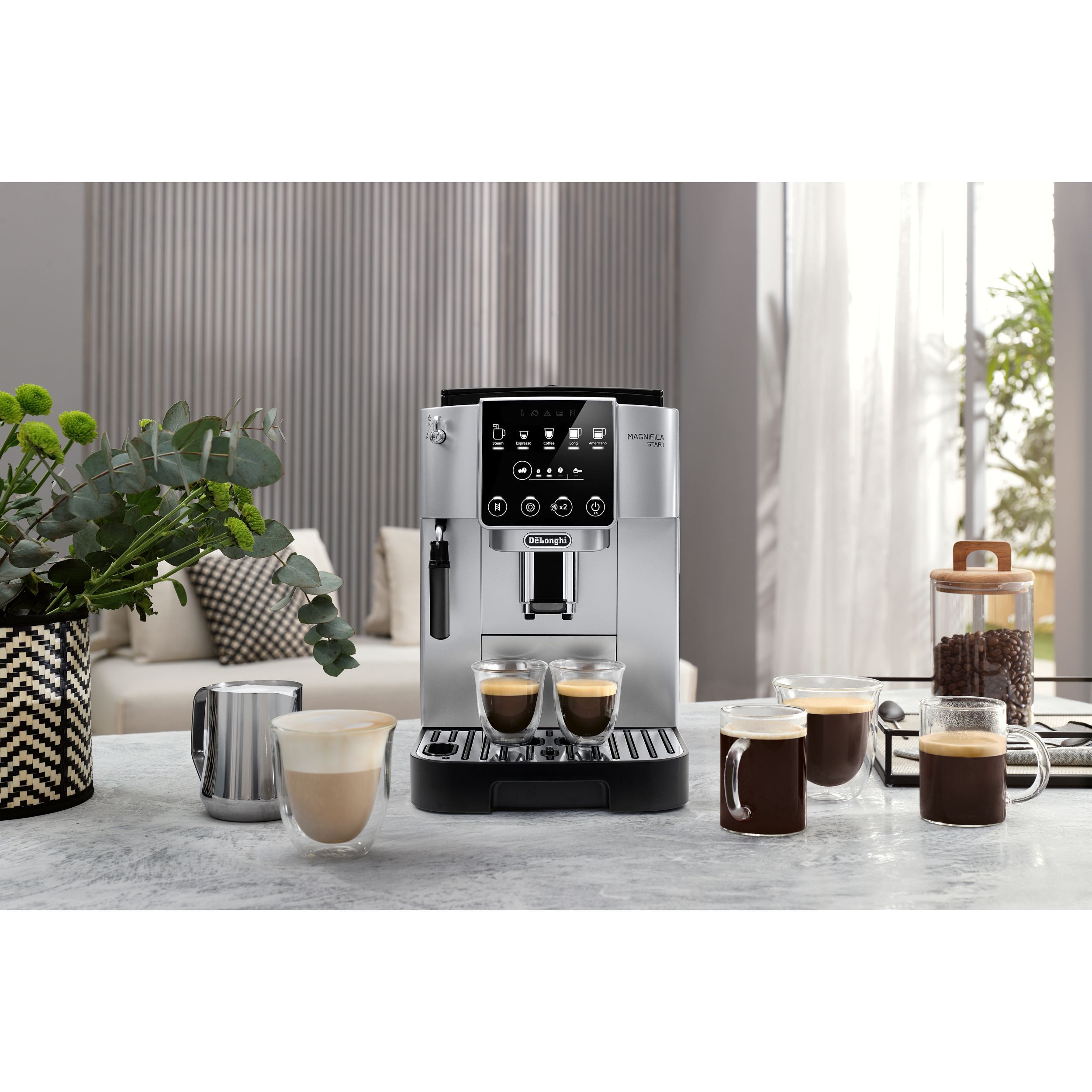 Espressorul automat De’Longhi Magnifica Start îți oferă tot ce ai nevoie pentru a pătrunde în lumea cafelei, la tine acasă, preparând băuturile tale preferate pe bază de espresso. Echipat cu o interfață prietenoasă și având un finisaj alb atrăgător, pune la dispoziție o selecție personalizată de băuturi preparate cu o simplă atingere de buton.
