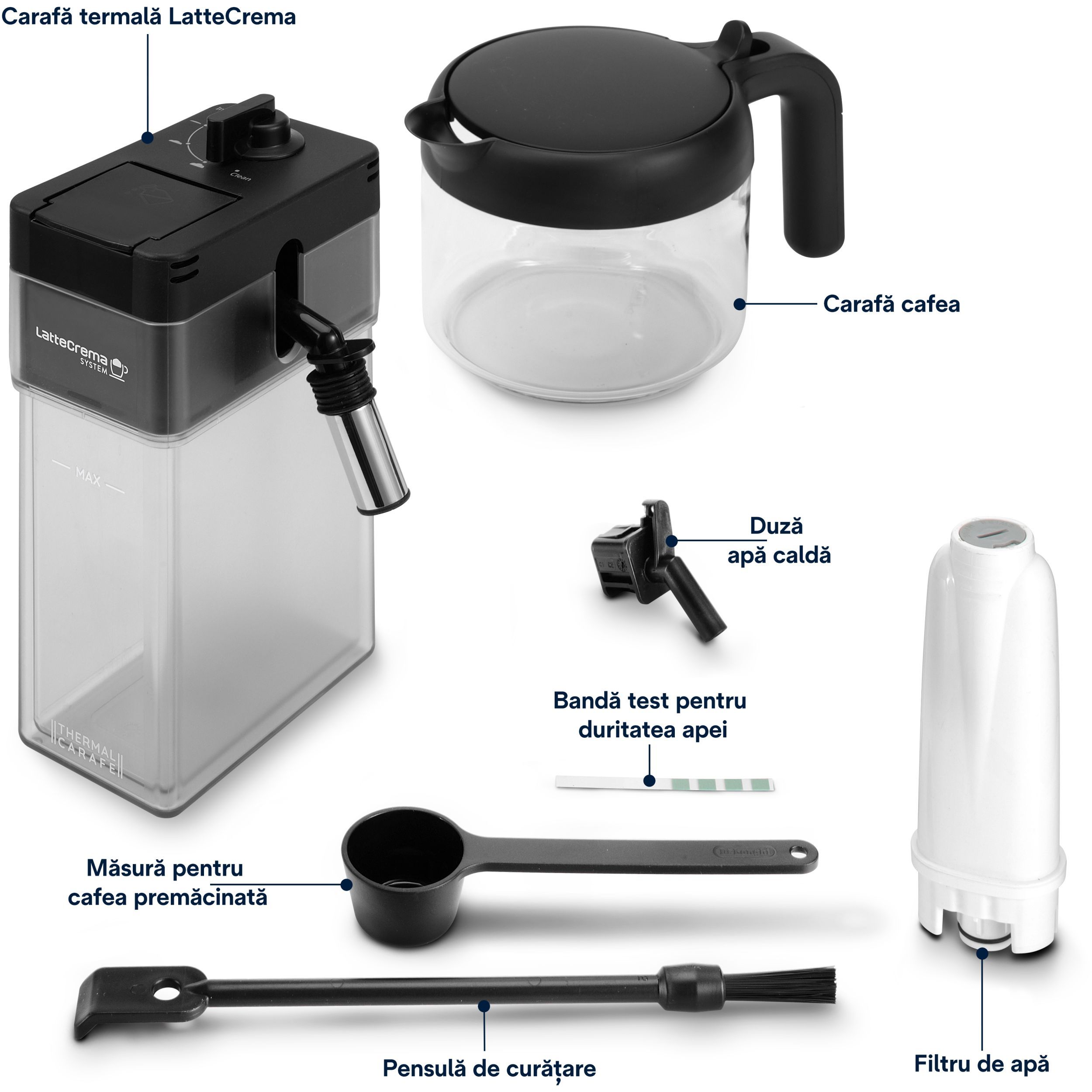 • Spumă de lapte densă și cremoasă, ce rezistă până la ultima picătură, livrată automat la temperatura ideală, datorită tehnologiei LatteCrema;