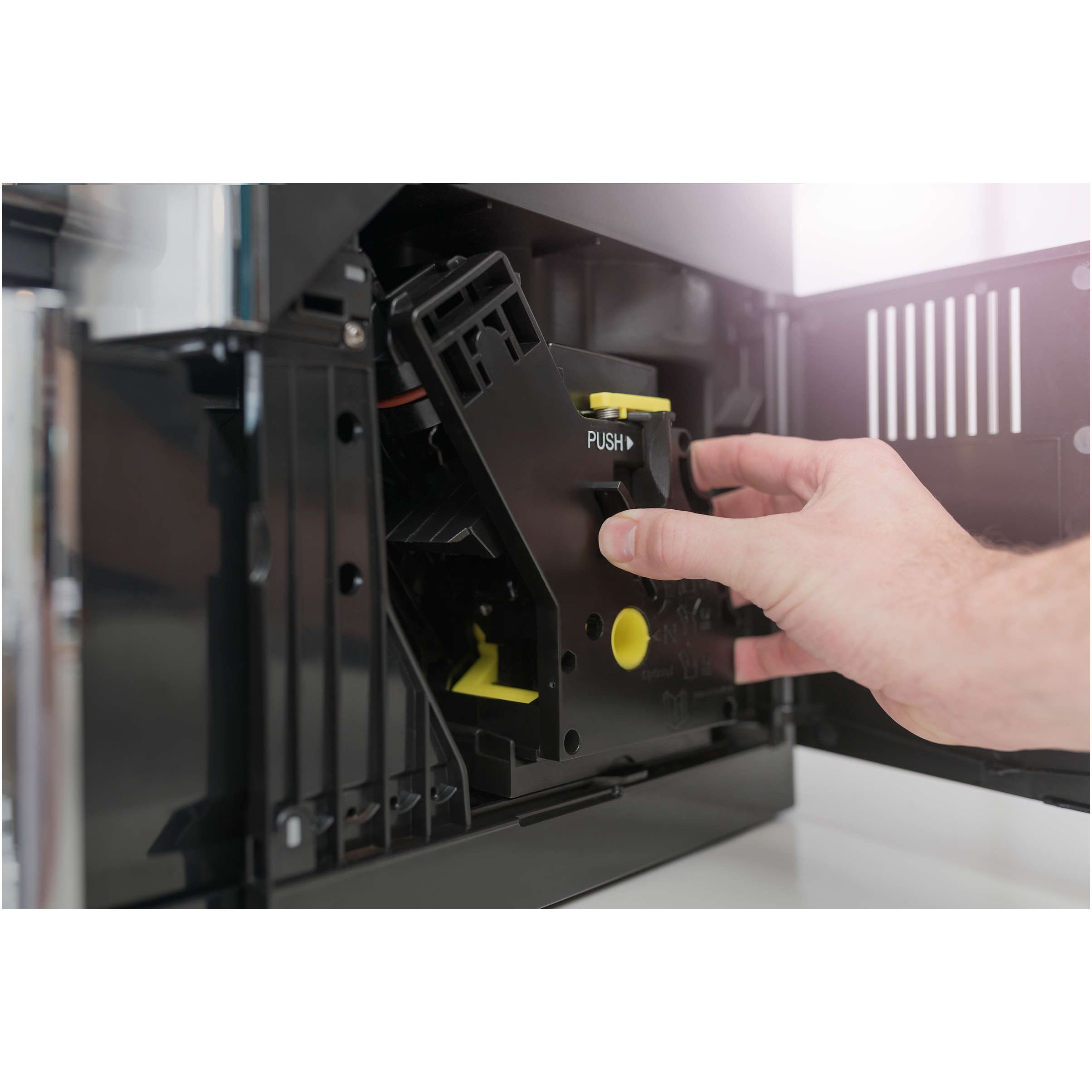 Curăţare uşoară graţie unităţii de preparare complet detaşabile. Unitatea de preparare este inima oricărui espressor complet automat şi trebuie curăţată periodic. Unitatea de preparare detaşabilă permite curăţarea temeinică prin simpla clătire la robinet.