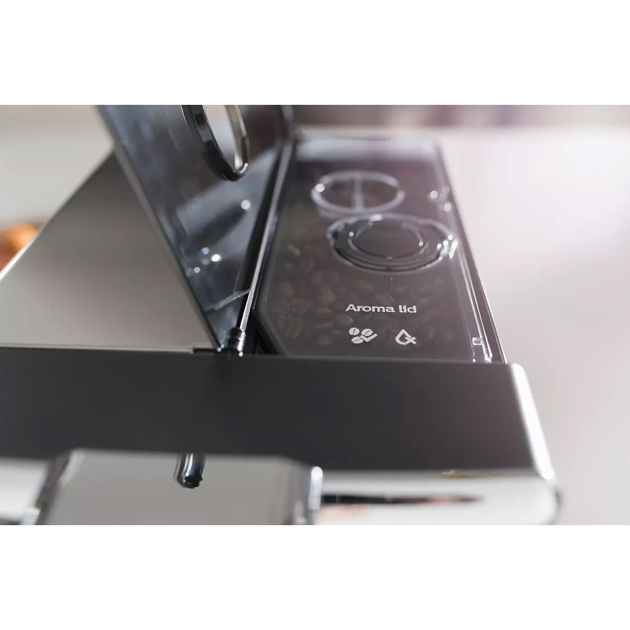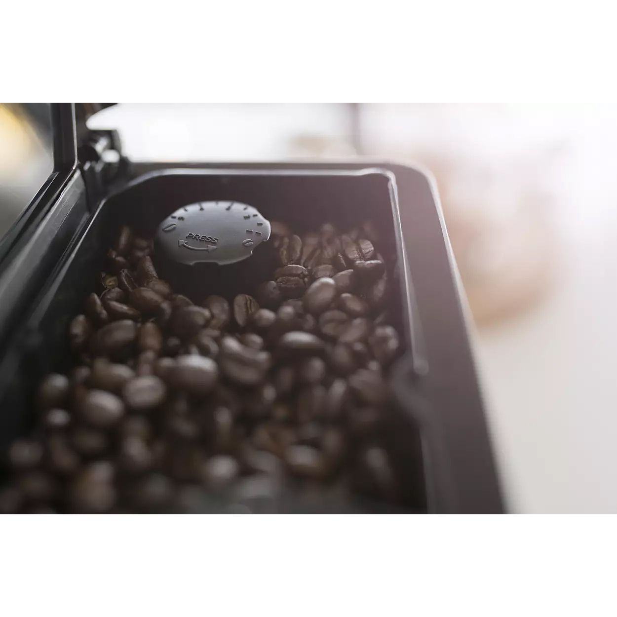 Păstrează boabele proaspete mai mult timp cu Aroma Seal. Noua funcţie Aroma Seal protejează boabele de cafea şi se asigură că îşi păstrează aroma iniţială în timp, reducând totodată zgomotul râşniţei.