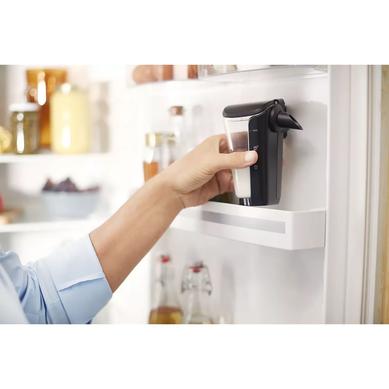 Capacul de depozitare de pe LatteGo menţine laptele proaspăt în frigider. Pentru depozitare uşoară şi comodă în frigider sau afară poţi folosi capacul de depozitare special pentru LatteGo.