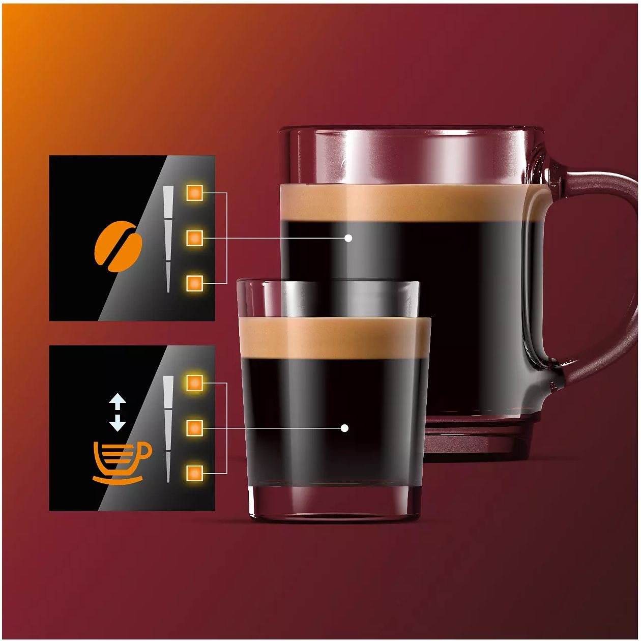 Ajustează intensitatea aromei şi cantitatea cu My Coffee Choice. Ajustează intensitatea aromei şi cantitatea de băutură folosind meniul My Coffee Choice. Alege cu uşurinţă din trei setări diferite pentru a se potrivi preferinţelor tale.