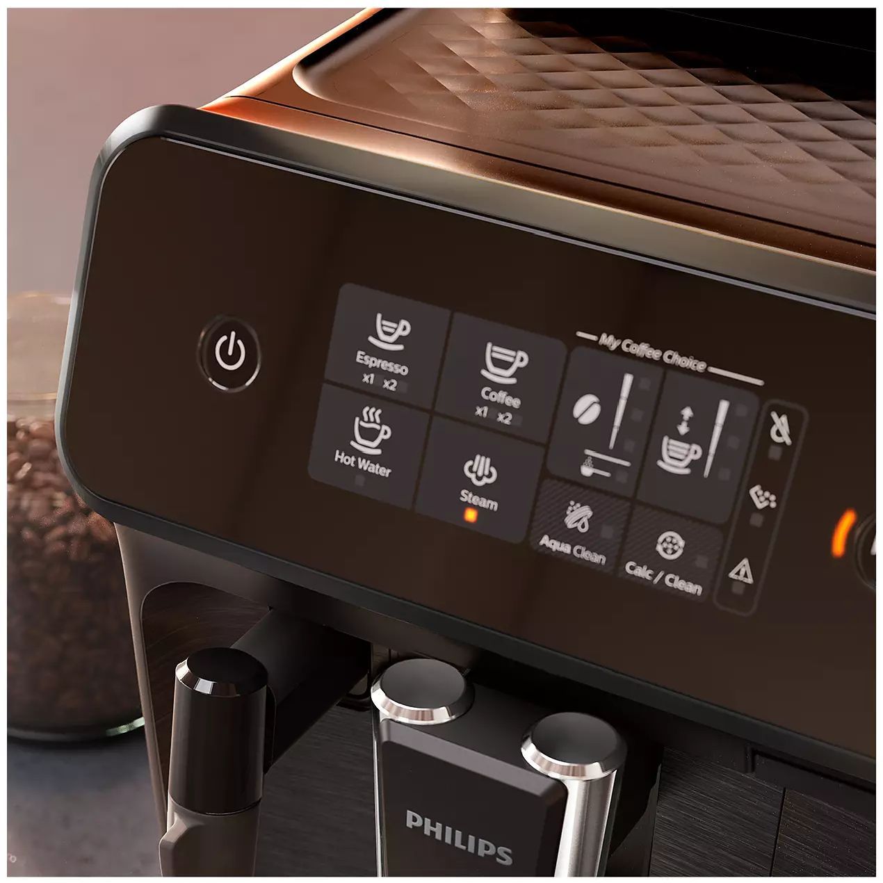 Selectare uşoară a cafelei cu afişajul tactil intuitiv. Gustul şi aroma irezistibile ale cafelei din boabe proaspete este doar la o atingere distanţă. Afişajul nostru tactil intuitiv îţi permite să selectezi uşor cafeaua preferată.