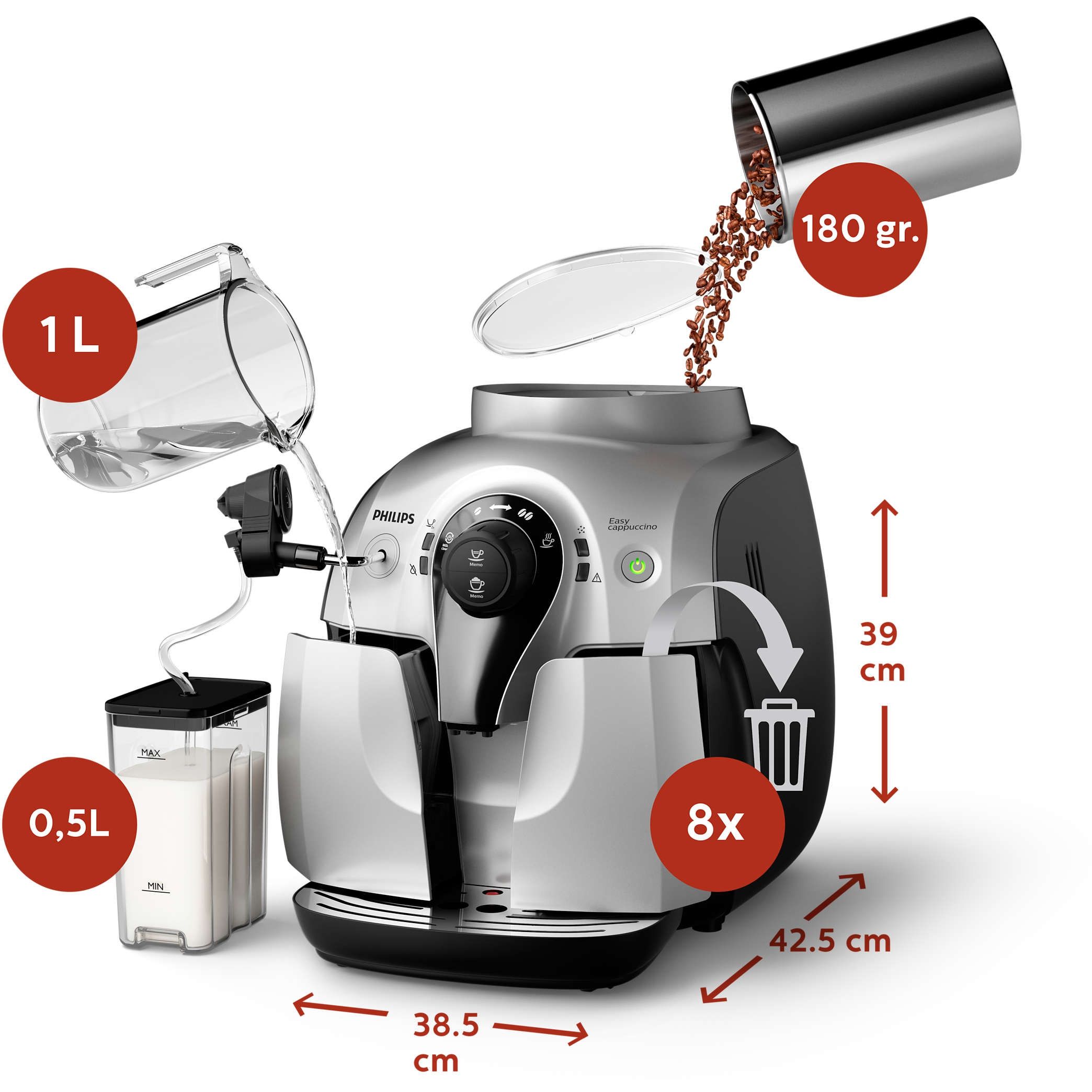 Nu a fost niciodată mai uşor să prepari un cappuccino. Poţi obţine espresso-ul perfect din boabe de cafea proaspăt măcinate, apăsând un buton şi aşteptând câteva secunde. În plus, cu noul sistem Easy Cappuccino, prepararea unui cappuccino n-a fost niciodată mai uşoară.
