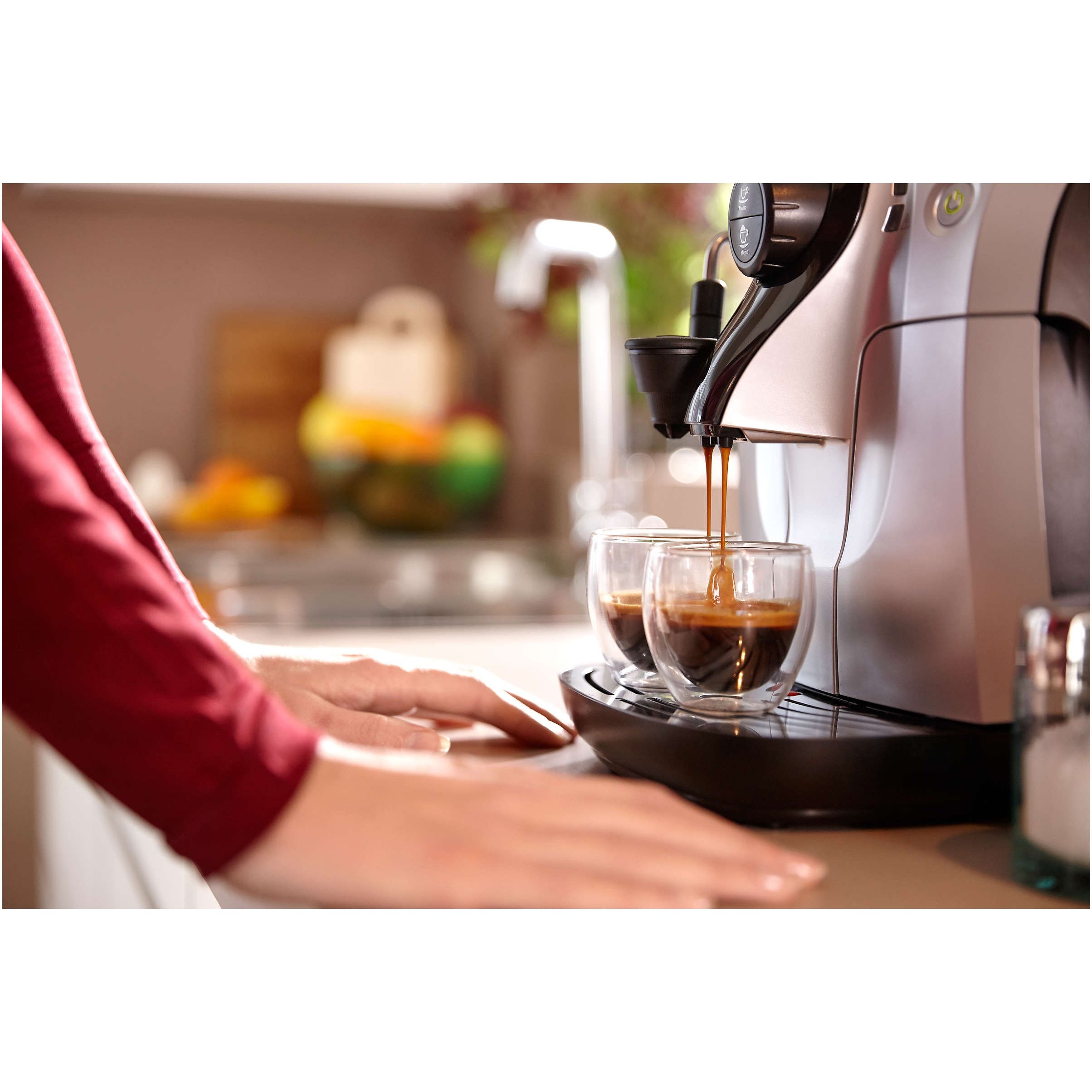 Savurează un espresso excelent cu clătirea automată şi detartrarea ghidată. Acest espressor îşi curăţă automat cu apă circuitul de cafea la pornirea sau oprirea aparatului, oferindu-ţi un gust minunat şi proaspăt la fiecare ceaşcă de espresso. Detartrarea regulată prelungeşte durata de viaţă a espressorului. Aparatul va afişa un mesaj atunci când este necesară detartrarea şi te va îndruma prin mesaje afişate pe ecran, indicându-ţi operaţiile necesare şi momentul la care trebuie efectuate.