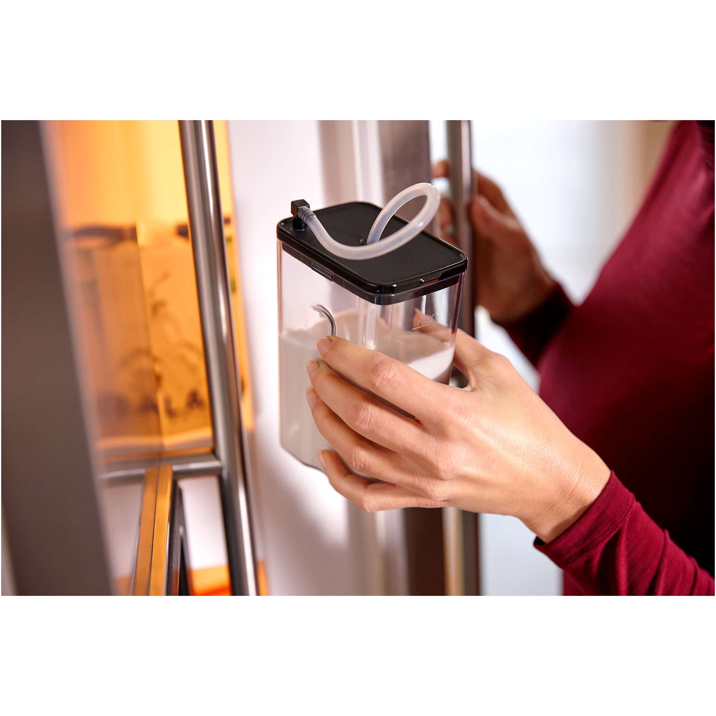 Recipient extern pentru lapte inclus, uşor de curăţat şi depozitat. Savurează cappuccino cremos cu laptele preferat mulţumită recipientului extern pentru lapte, lavabil în maşina de spălat vase. Detaşează-l cu uşurinţă de aparat şi pune-l în frigider pentru prospeţime de durată. Nu a fost niciodată mai uşor să prepari cappuccino cu orice tip de lapte.