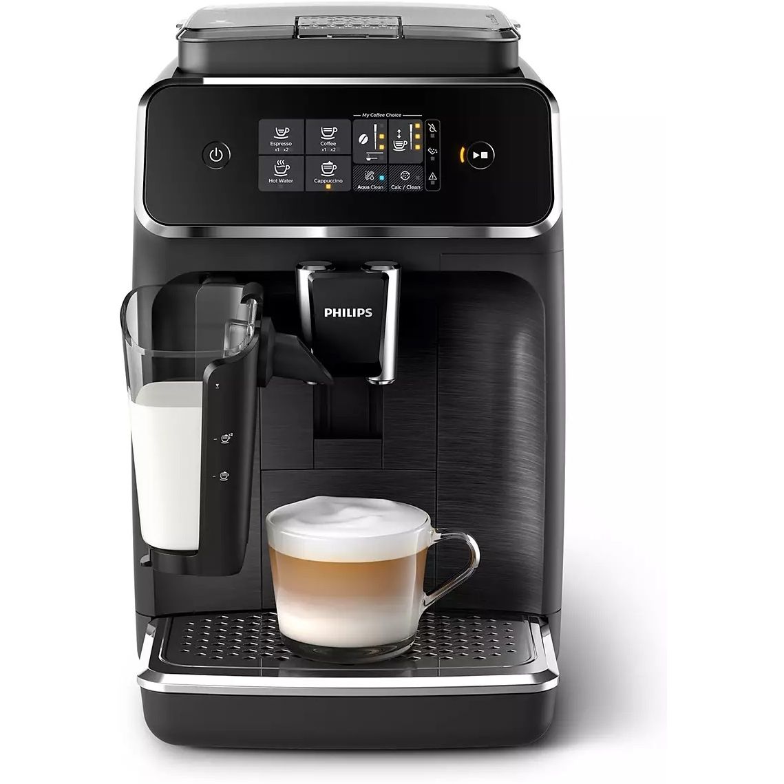 Prepară uşor varietăţi de cafea aromate, precum espresso, cafea şi cappuccino, cu o singură apăsare de buton. LatteGo adaugă varietăţilor cu lapte o spumă fină şi cremoasă, este uşor de configurat şi poate fi curăţat în doar 15 secunde*.