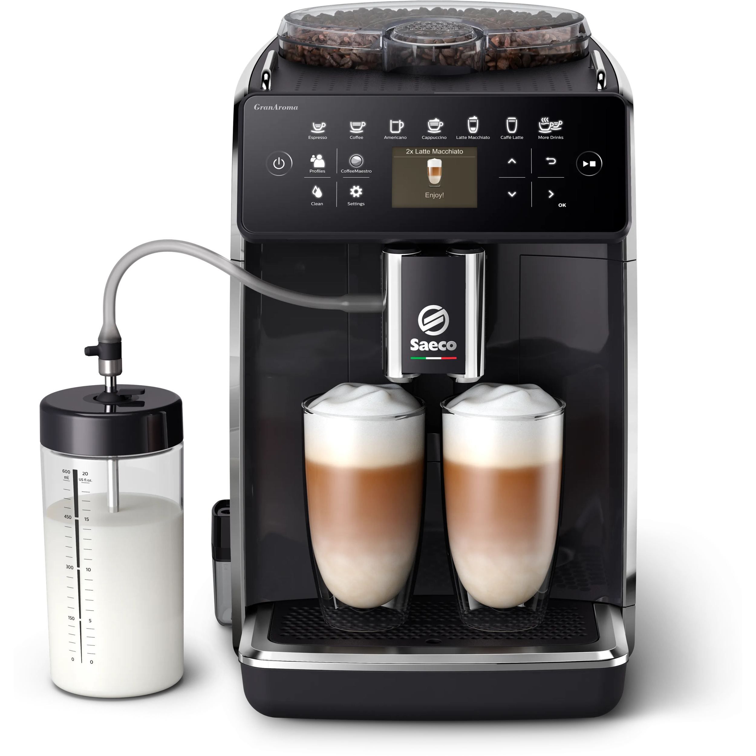 14 băuturi renumite în întreaga lume prin simpla apăsare a unui buton. Explorează lumea cafelei, de la reţete obişnuite precum espresso şi cappuccino şi până la specialităţi de cafea, cum ar fi espresso macchiato italian.