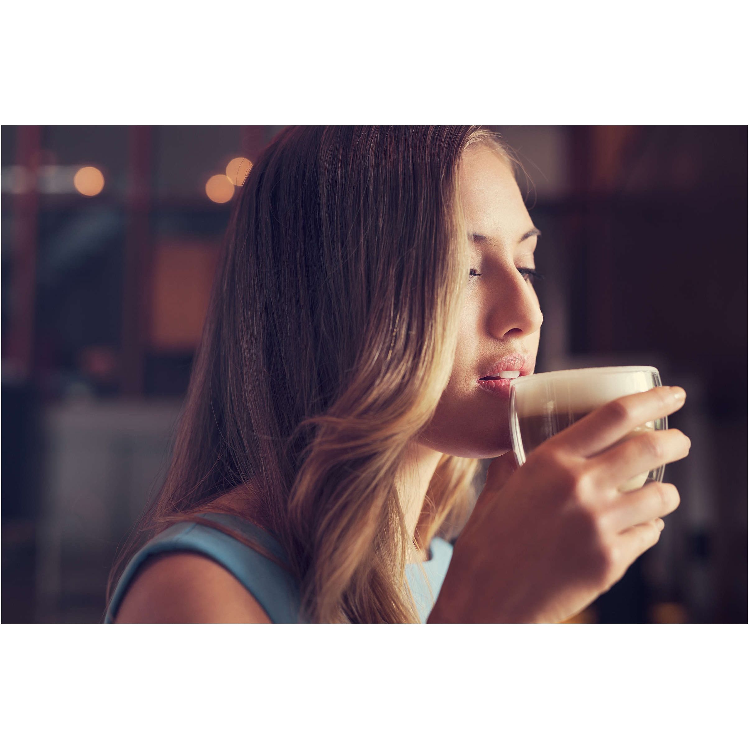 PREPARĂ SIMULTAN 2 CEŞTI DE BĂUTURĂ CU CAFEA, INCLUSIV CAPPUCCINO. Îţi creezi băuturile cu cafea preferate, inclusiv cappuccino şi latte macchiato în porţii simple sau duble, printr-o singură atingere.