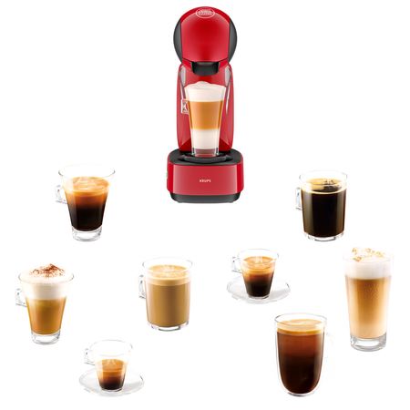 Peste 30 de rețete savuroase. Bucură-te de cele peste 30 de rețete premium pe care NESCAFÉ® Dolce Gusto® le oferă, indiferent de tipul de cafea pe care îl preferi. Savurează un Ristretto puternic, Espresso intens, Lungo aromat până la Cappucino spumos și Latte Macchiato rafinat. De asemenea, aparatul oferă posibilitatea de a prepara ciocolată caldă, ceai și băuturi reci.