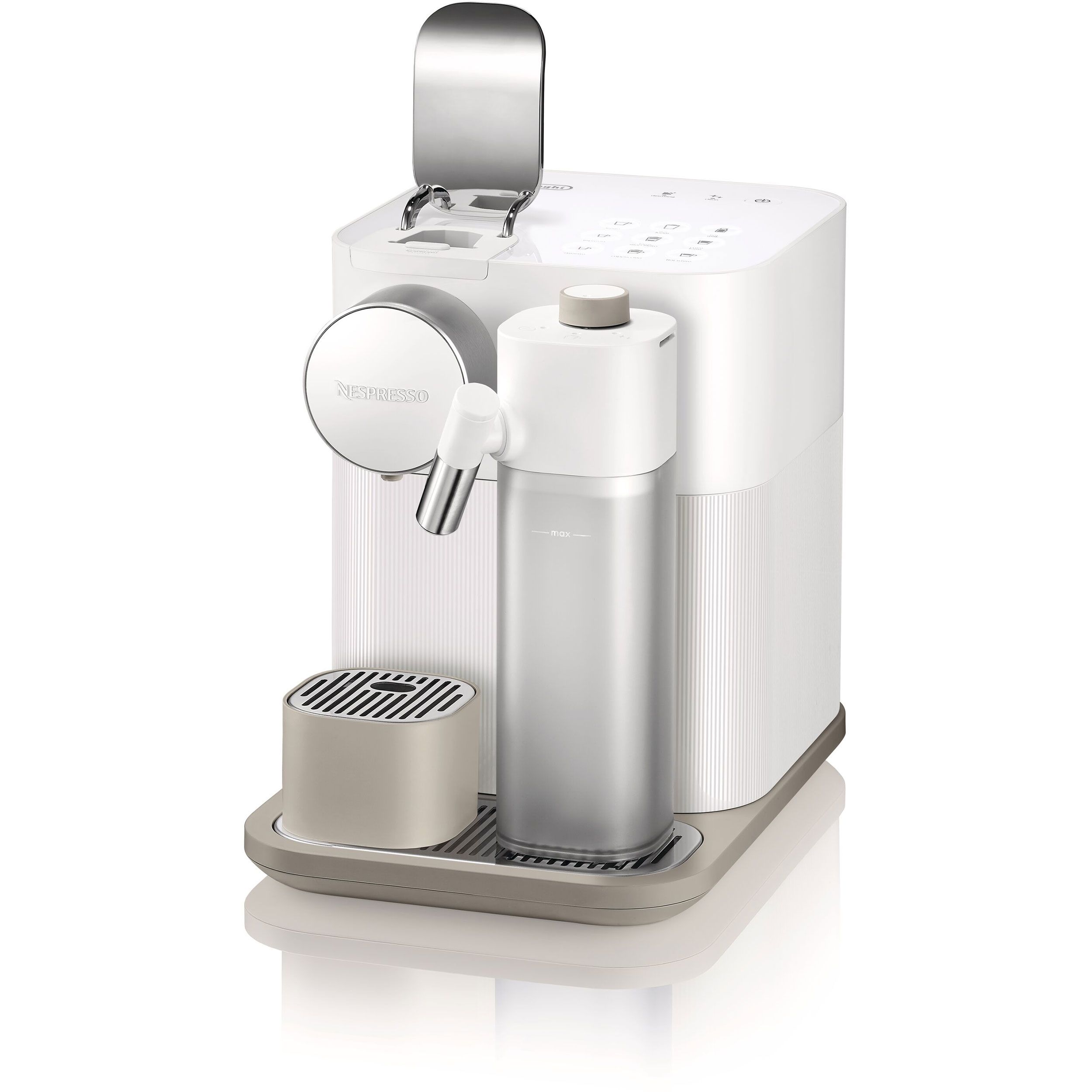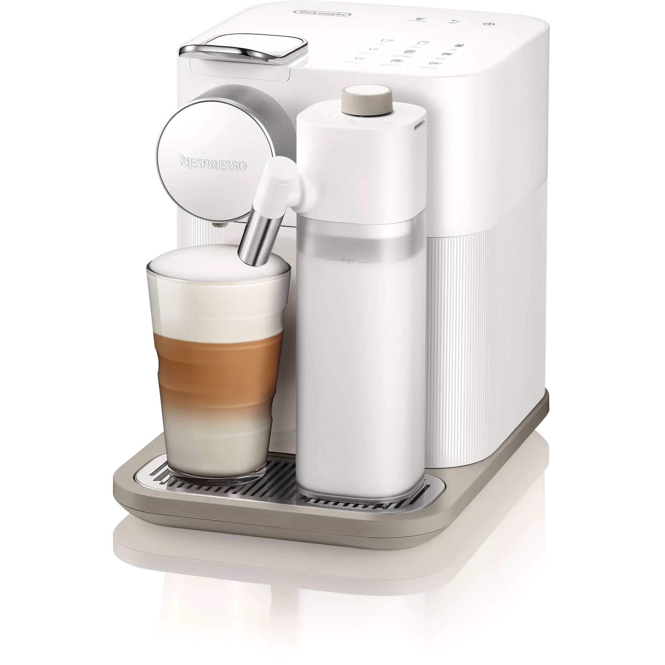 Gran Lattissima. Este cel mai avansat espressor din gama Lattissima, având 3 niveluri de extracție a cafelei, ristretto (25ml), espresso (40ml) lungo (110ml) și alte 6 butoane pentru rețete speciale cu lapte, prestabilite. Acestea îl fac expresor perfect pentru adevărații iubitori ai cafelei cu lapte. Rezervorul de lapte detașabil permite păstrarea lui la frigider pentru a vă bucura și a doua zi de rețetele speciale ce așteaptă să fie descoperite.Recomand acest expresor familiilor și birourilor mici, datorită capacității mari a rezervorului de apă (1.3 l), dar și a rezervorului pentru lapte (0.5l), care permit realizarea mai multor rețete cu lapte spectaculoase Mai multe rețete la o simplă atingere a unui buton.Fie că vă doriți un Cappuccino, un Latte Machiatto, un Flat White sau doriți doar să adăugați spumă de lapte în cafeaua voastră, este foarte simplu: lăsați expresorul Gran Lattissima să prepare cafeaua. Aduceți aroma cafelei Nespresso în rețeta aleasă. Designul emblematic Lattissima și sistemul one-touch aduc o notă aparte noului espressor. Gran Lattissima este echipat cu un sistem ușor de curățat, astfel și se curăță automat după pregătirea unei rețete cu lapte, totul în timp ce vă relaxați.