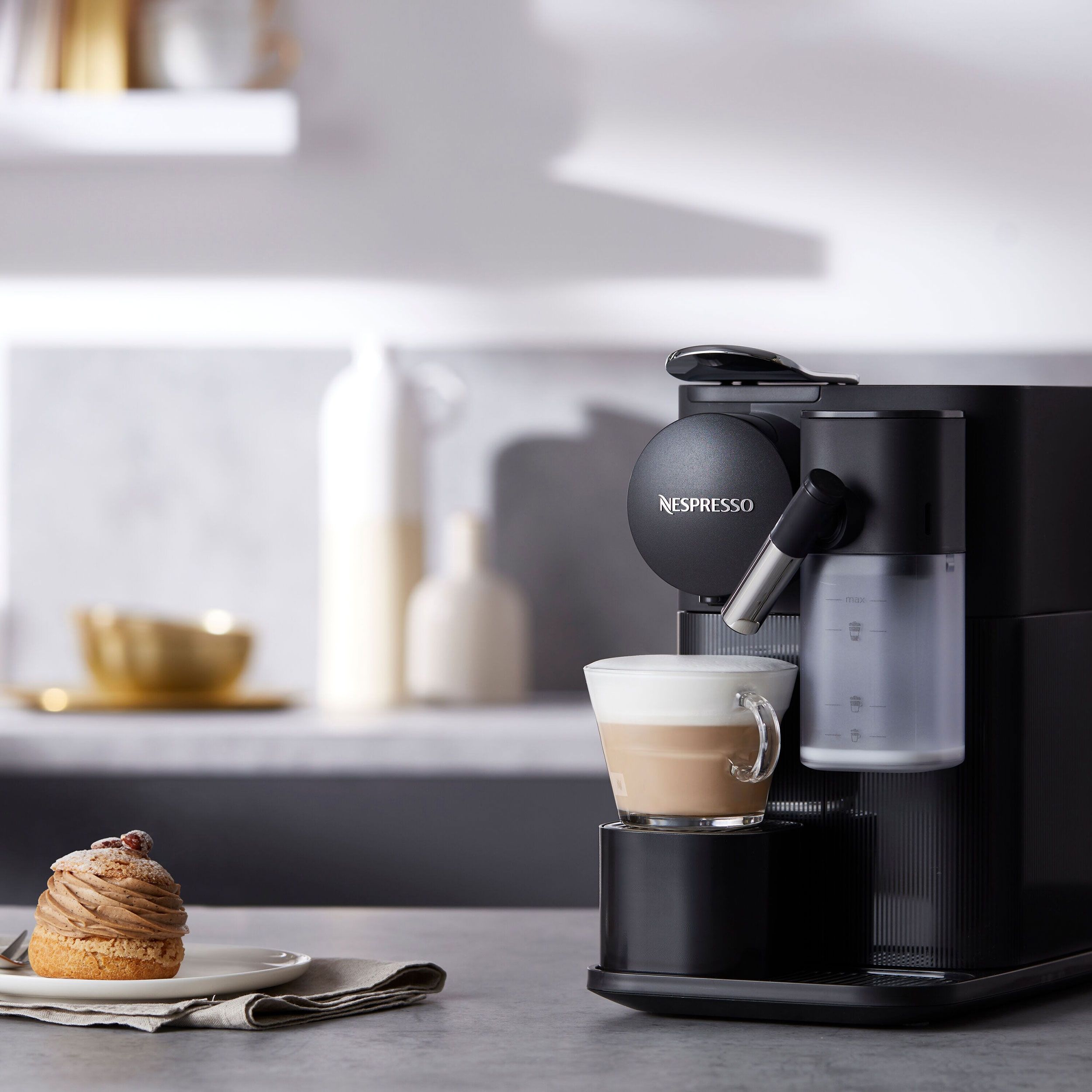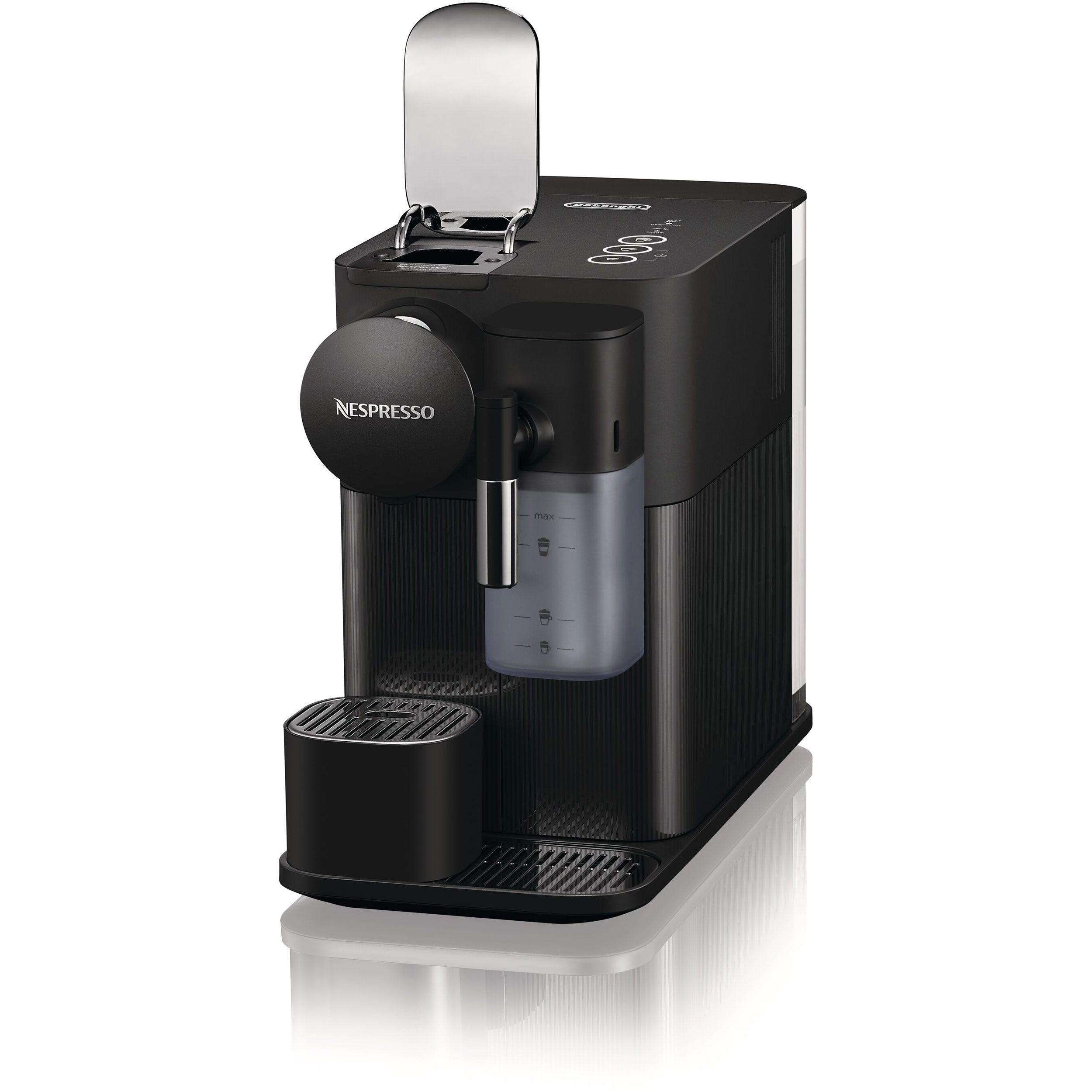 Sistem revolutionar pentru spuma de lapte. Încorporat Tot ceea ce aveti de facut este sa umpleți rezervorul pentru lapte proaspăt, iar espressorul va adauga spuma direct în ceașca dvs, cu atingerea unui singur buton, acesta știe să prepare cele mai populare trei rețete de cafea cu lapte: Espresso Macchiato, Cappuccino, Latte Macchiato. In plus, noul Nespresso Lattissima One dispune acum și de un rezervor mai generos pentru lapte, cu capac detasabil pentru reumplere.