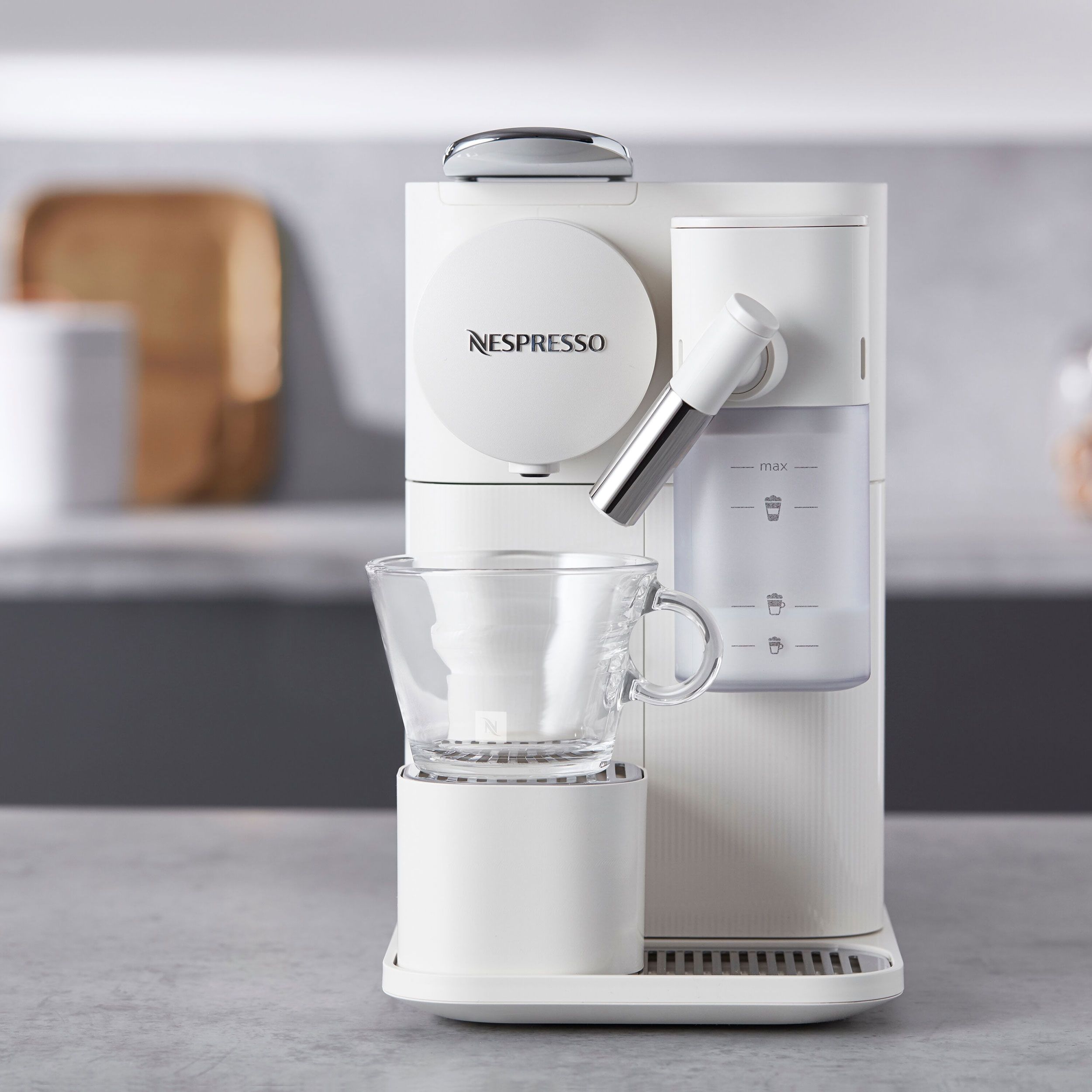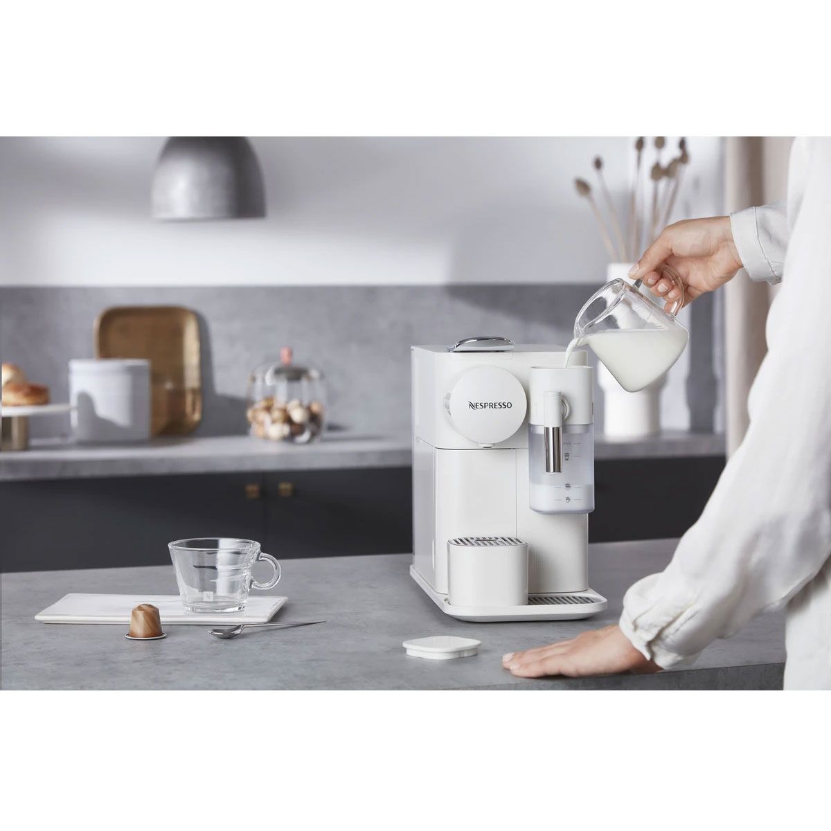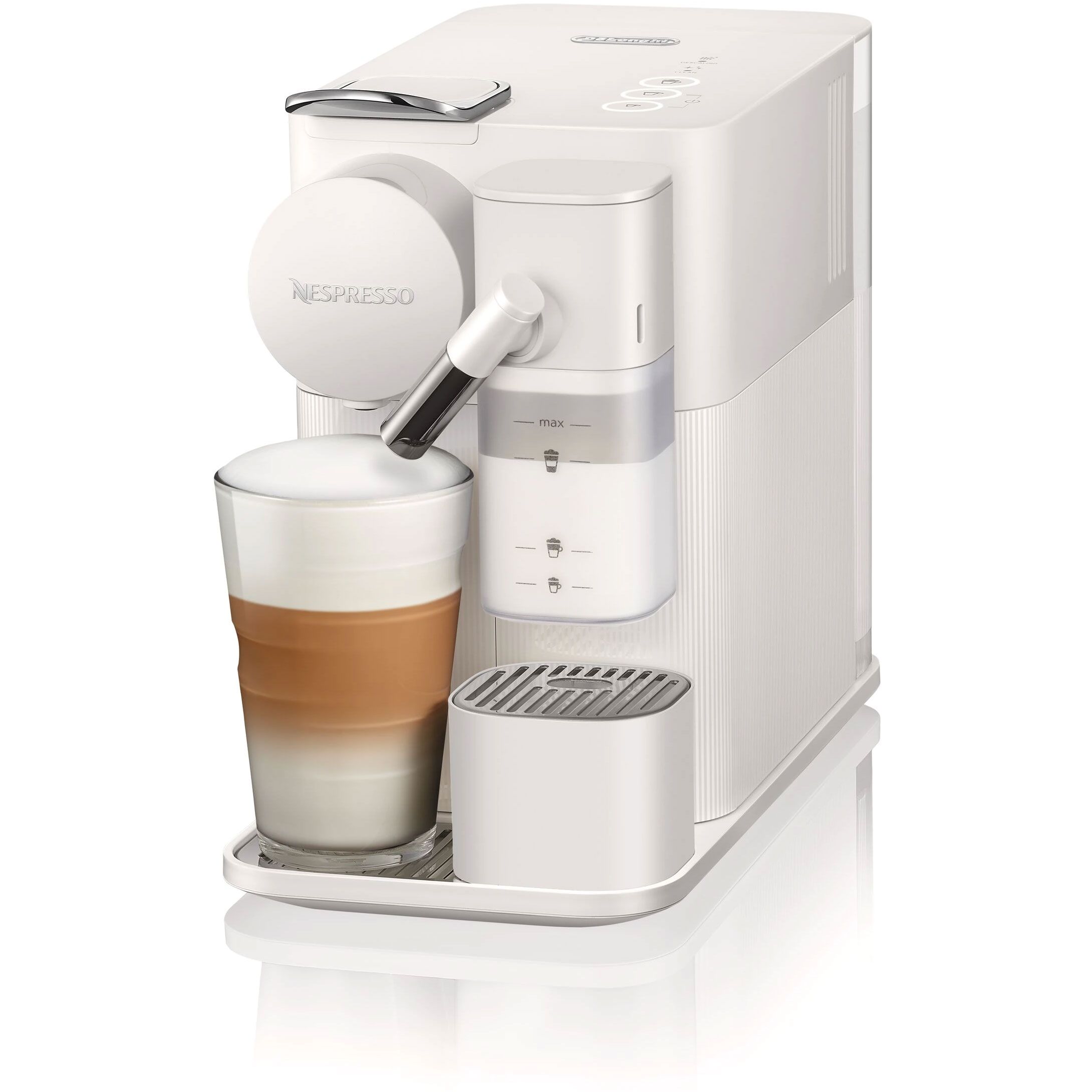Sistem revolutionar pentru spuma de lapte. Încorporat Tot ceea ce aveti de facut este sa umpleți rezervorul pentru lapte proaspăt, iar espressorul va adauga spuma direct în ceașca dvs, cu atingerea unui singur buton, acesta știe să prepare cele mai populare trei rețete de cafea cu lapte: Espresso Macchiato, Cappuccino, Latte Macchiato. In plus, noul Nespresso Lattissima One dispune acum și de un rezervor mai generos pentru lapte, cu capac detasabil pentru reumplere.