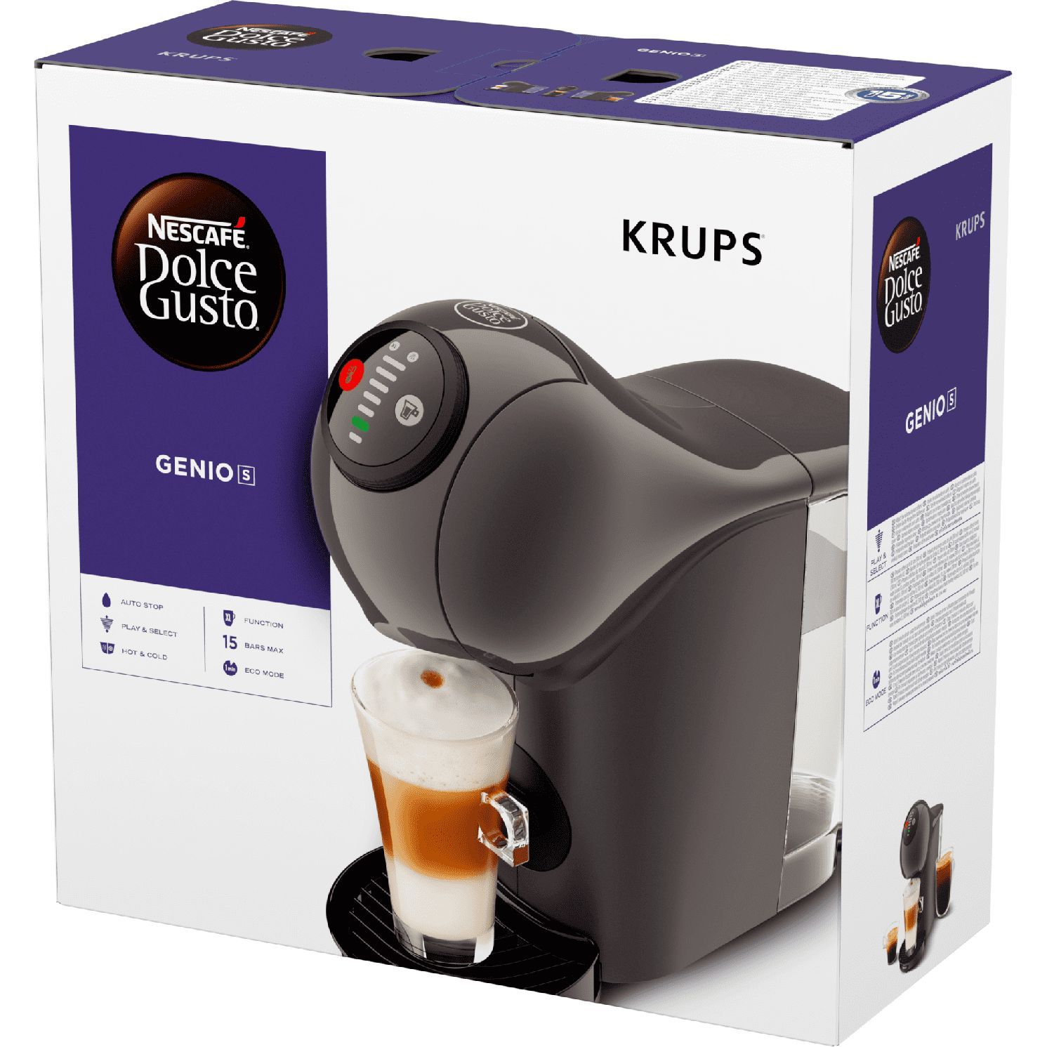Espressor cu capsule KRUPS NESCAFÉ Dolce Gusto Genio S KP243B10, 15 bari, 1500W, Rezervor 0.8l, Functie XL