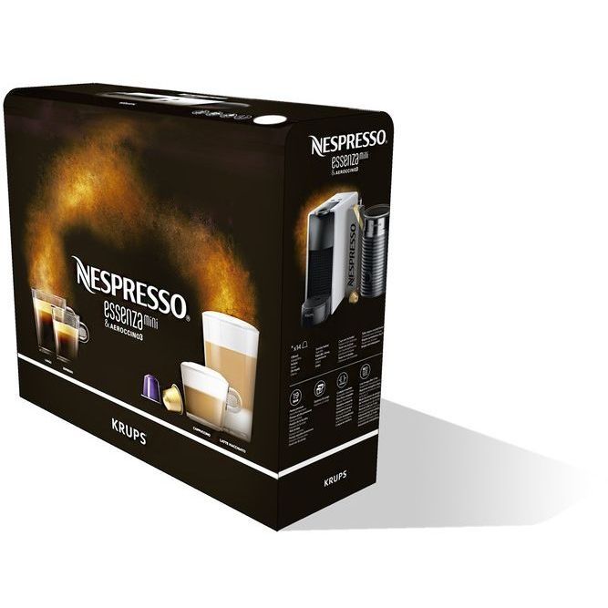 Tehnologia Aeroccino. Produce lapte fierbinte și spumă perfectă pentru băuturi cu cafea și lapte, cu un timp de încălzire rapid de fulger de 25 de secunde și funcții automate de economisire a energiei pentru a completa pachetul. Nespresso Essenza Mini: aparatul de cafea capsulă perfect într-un cadru ultra-compact pentru confort maxim.