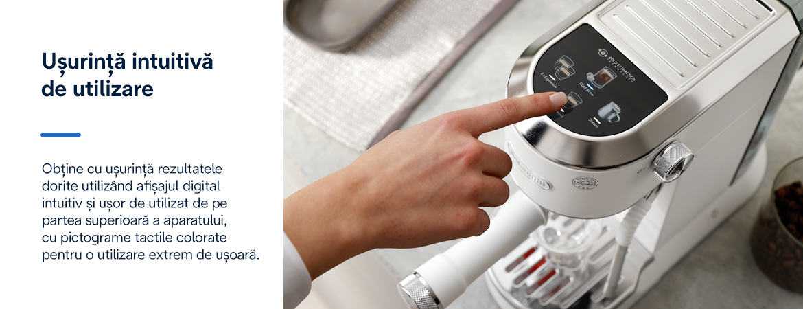 Obține cu ușurință rezultatele dorite utilizând afișajul digital intuitiv și ușor de utilizat de pe partea superioară a aparatului, cu pictograme tactile colorate pentru o utilizare extrem de ușoară.
