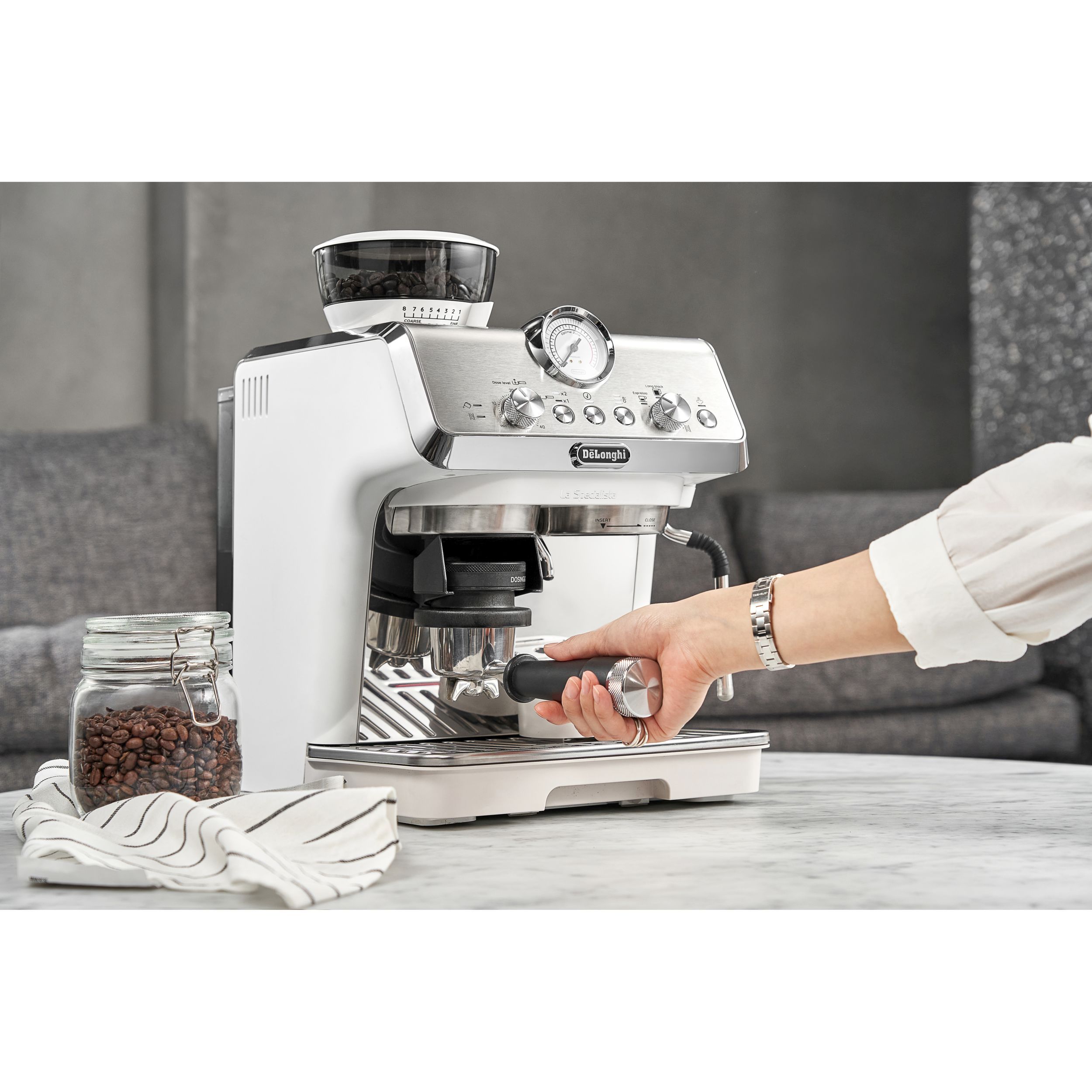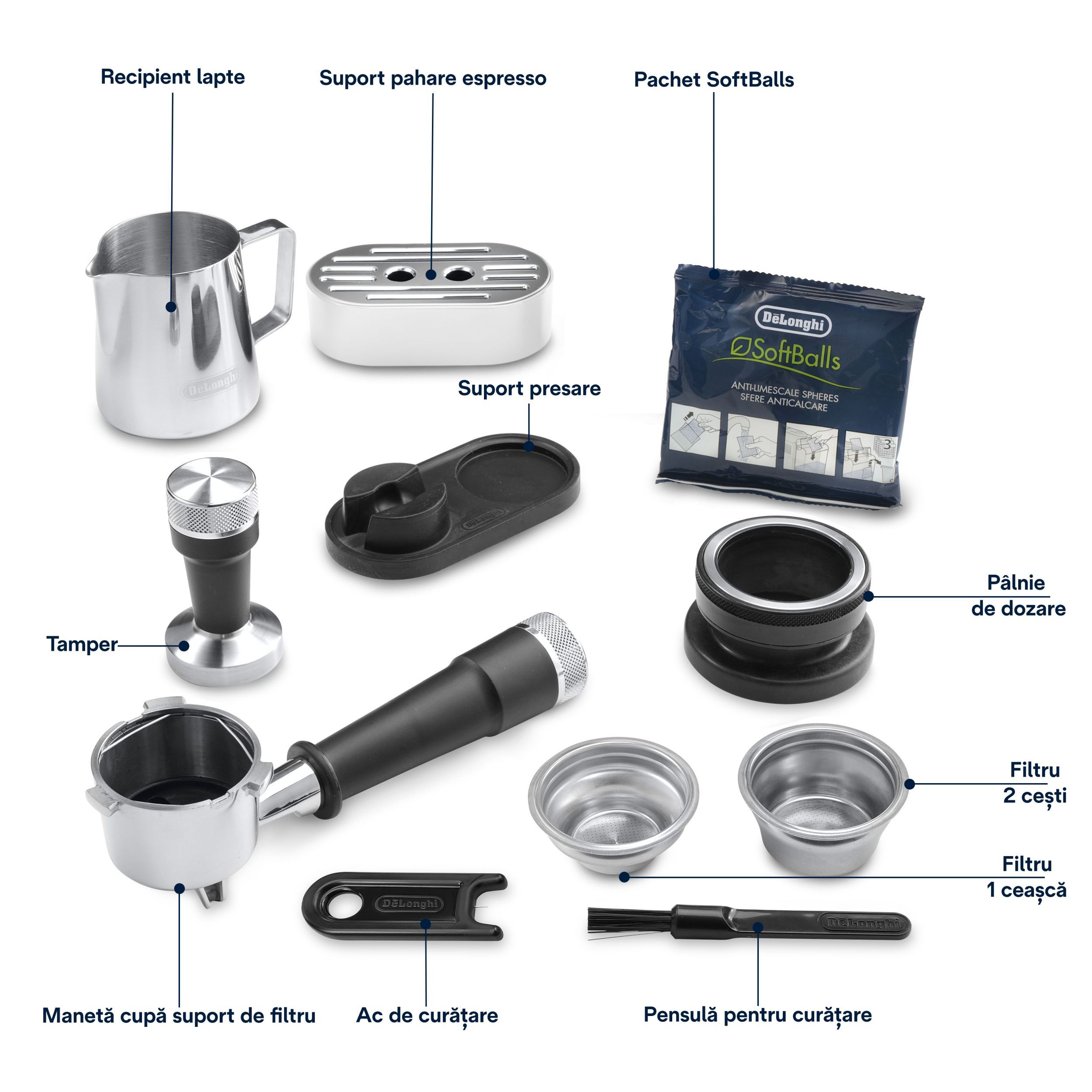 • Trăiește experiența barista la domiciliu, folosind kitul complet de accesorii, inclusiv ghidul de dozare și de presare a pudrei de cafea;