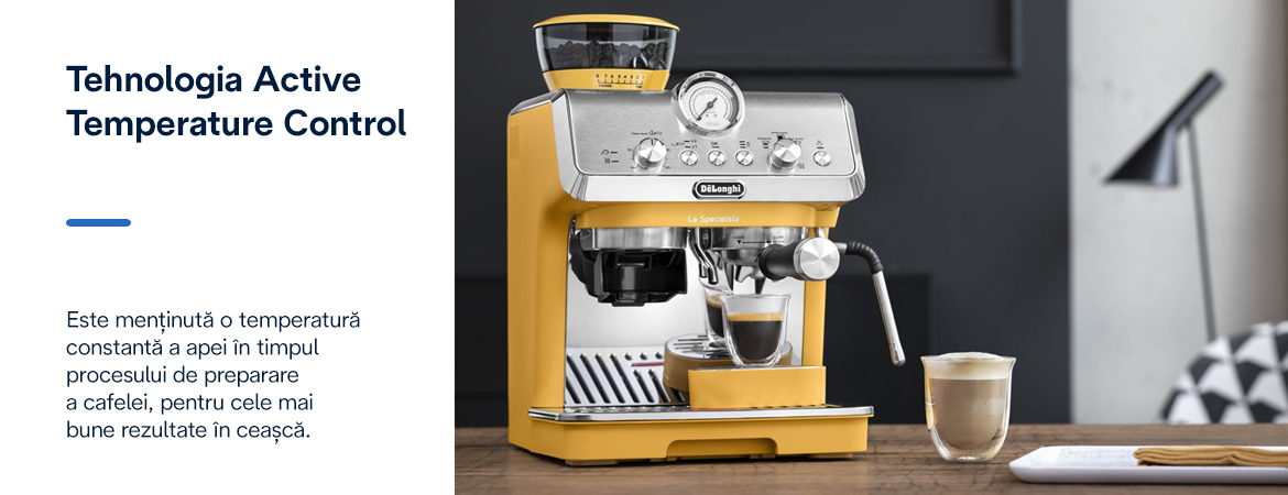 Este menținută o temperatură constantă a apei în timpul procesului de preparare a cafelei, pentru cele mai bune rezultate în ceașcă.