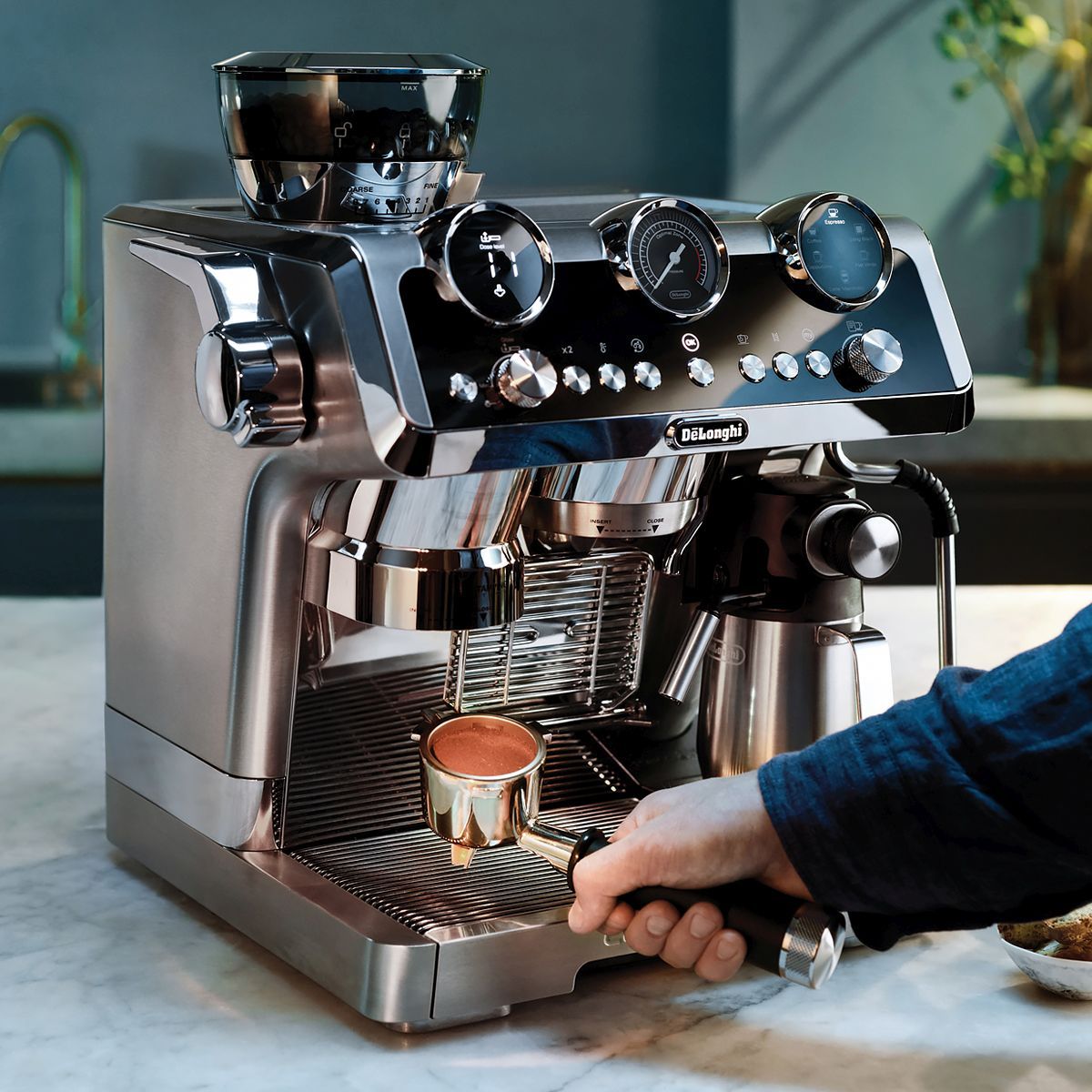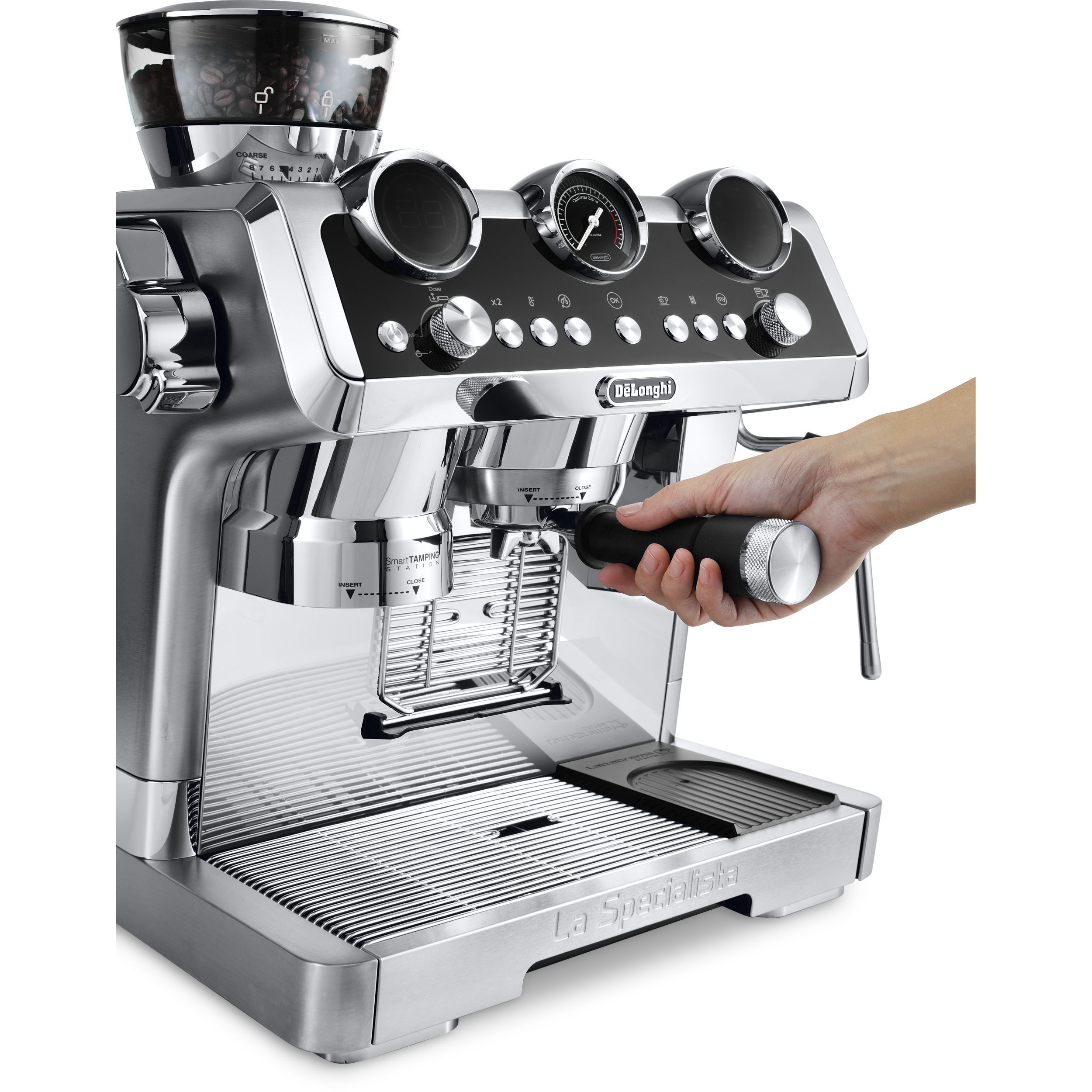 Obține rezultate optime privind presiunea de presare. Întregul proces se desfășoară în interiorul espressorului, deci riscul de murdărie din cauza boabelor de cafea este exclus.