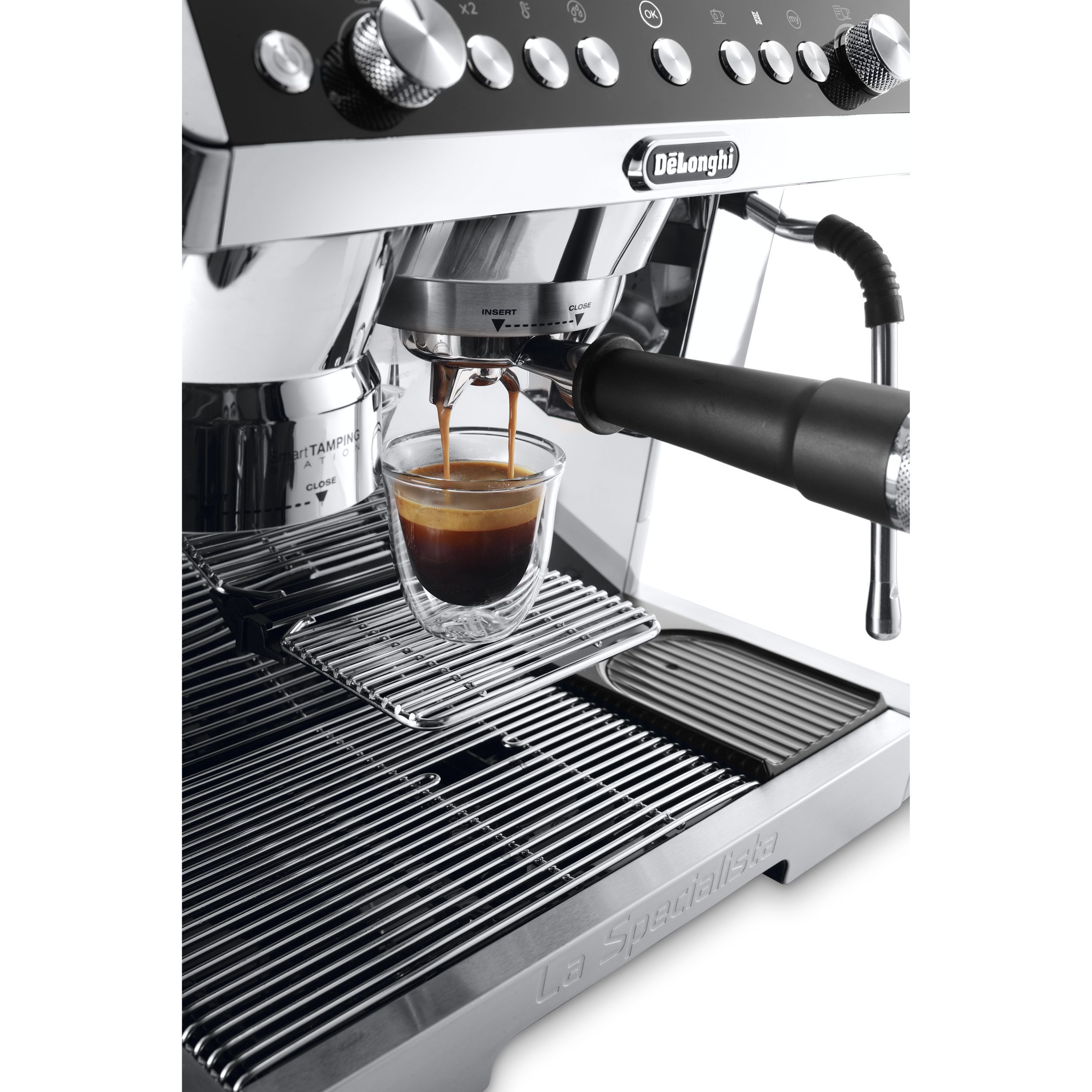 Sătui de pete sau stropire inutilă? Utilizați grătarul integrat pentru ceștile de espresso, astfel puteți evita bătăi de cap inutile, totul realizându-se rapid, simplu și eficient. Grătarul poate fi ridicat la loc când nevoia o cere.
