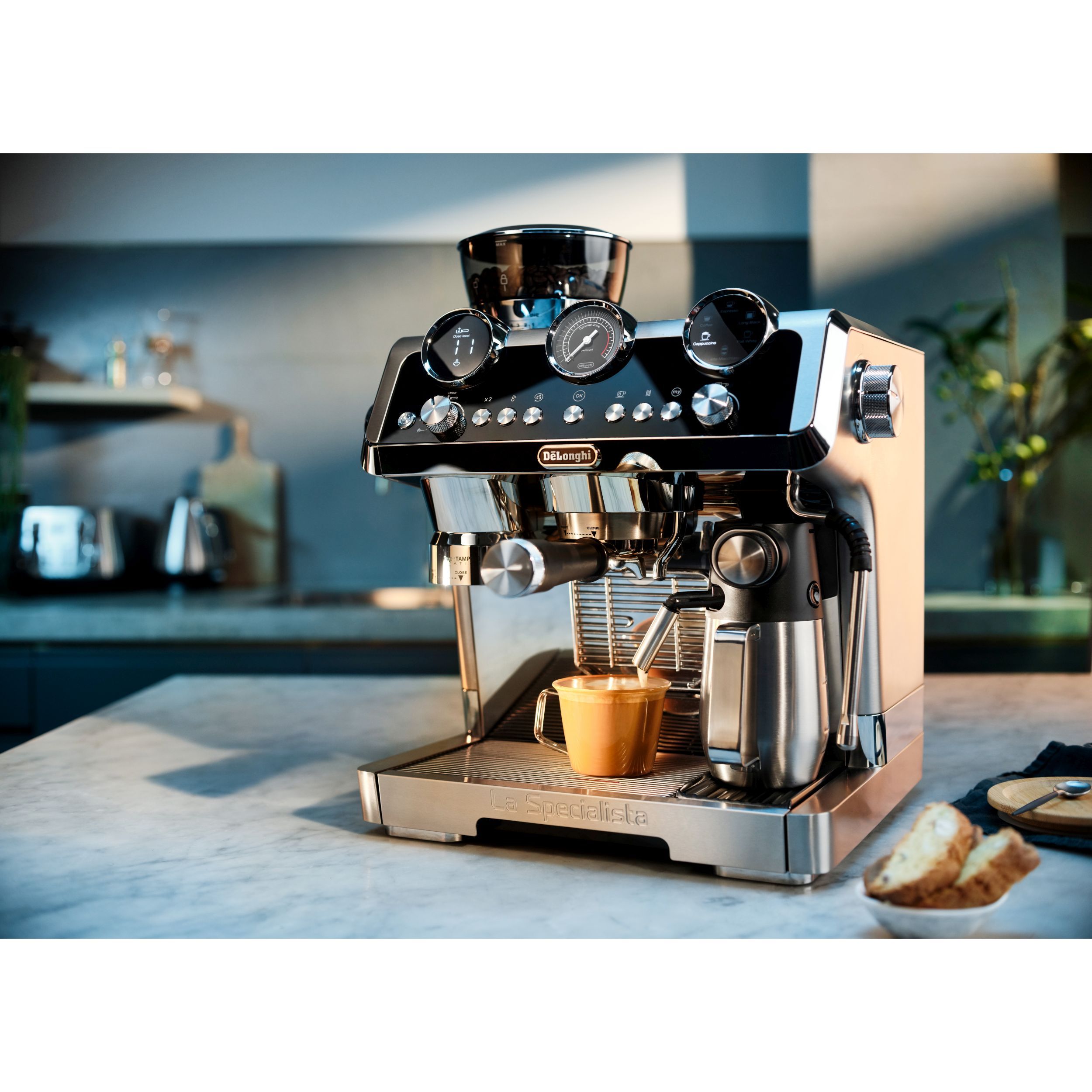 La Specialista Maestro ofera echilibrul perfect intre stiinta cafelei si arta texturarii laptelui. Oferind cea mai buna ceasca de cafea, indiferent de tipul de boabe, dar si textura perfecta a spumei de lapte, La Specialista Maestro te ajuta sa devii specialist atat in procesul de preparare a cafelei, cat si in cel de preparare a laptelui.