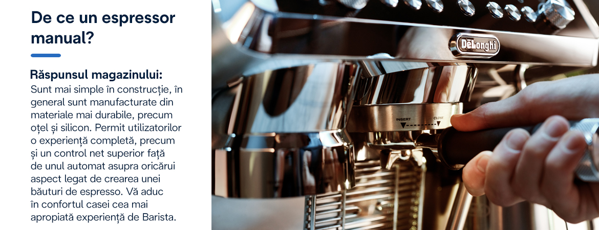 Concepută pentru a oferi un gust bogat de fiecare dată, acest espressor manual utilizează o tehnologie care te ajută în fiecare etapă a procesului de preparare a cafelei, oferindu-ți controlul fără efort. Descoperă o gamă de băuturi calde și reci, inclusiv un Espresso Cool exclusivist de la De'Longhi.