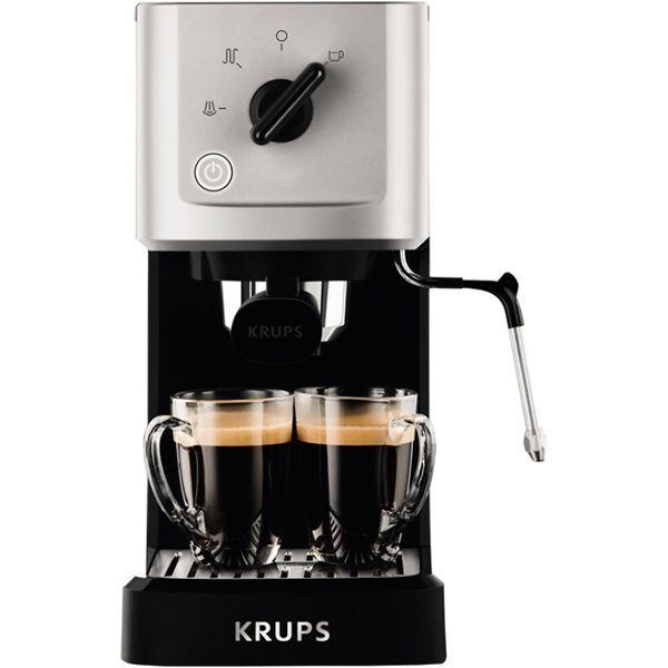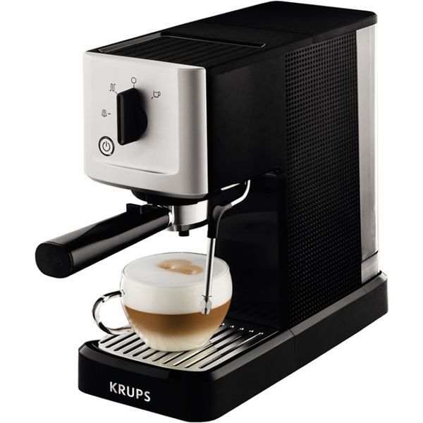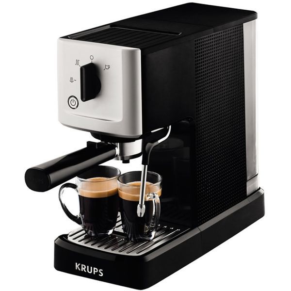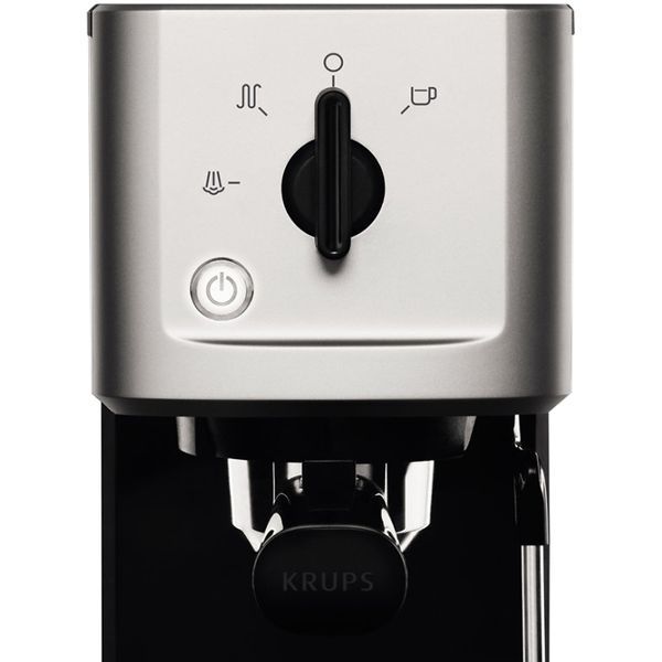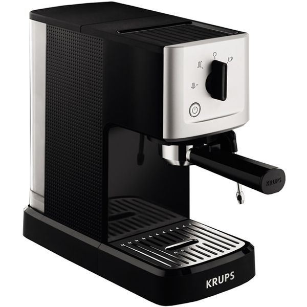 Espressor manual cu pompă KRUPS Calvi Meca XP344010, 1460W, 15bar, 1.1l, Măcinată și Capsule, Thermoblock, Duză SuperCappuccino, Espresso simplu sau dublu, Spațiu de depozitare integrat (Black Metal)