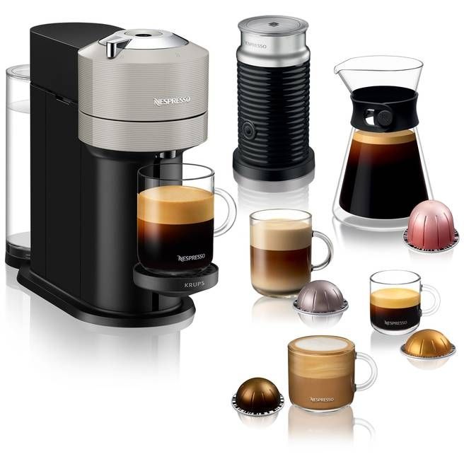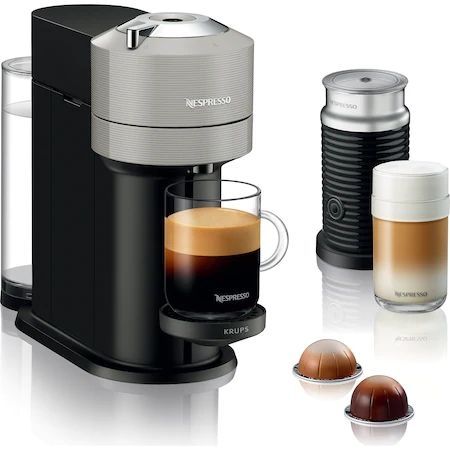 ●Îți place să mergi la o cafenea și să-ți oferi o ceașcă de cafea delicioasă?Aceeași cafea delicioasă o poți face acasă acum, Krups XN910B10 Nespresso Vertuo Next Light Grey face cafea pe gustul dvs.