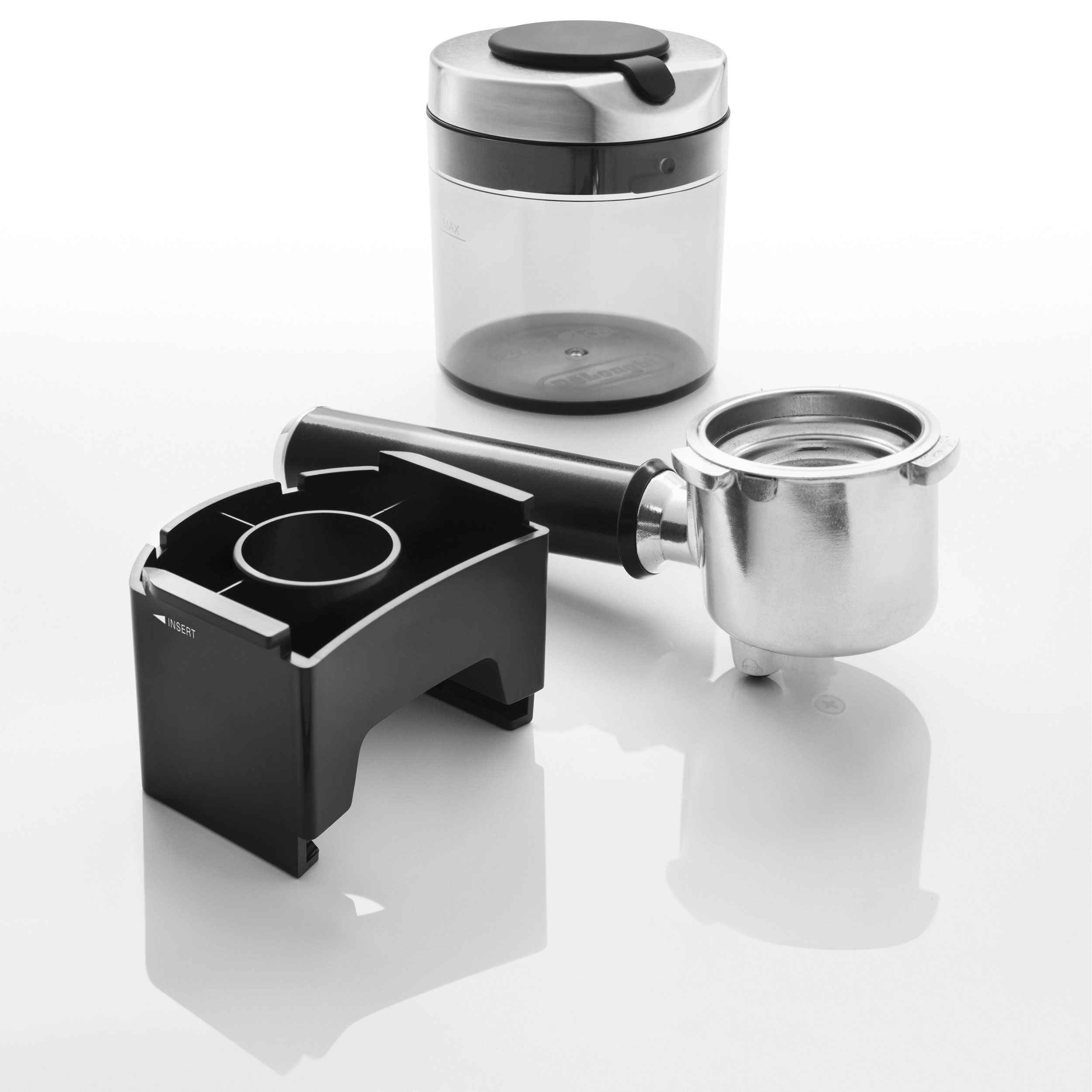 - Râșnire cu 2 opțiuni diferite: poate râșni direct în recipientul pentru cafea măcinată sau în suportul portafiltrului utilizând accesoriul dedicat;