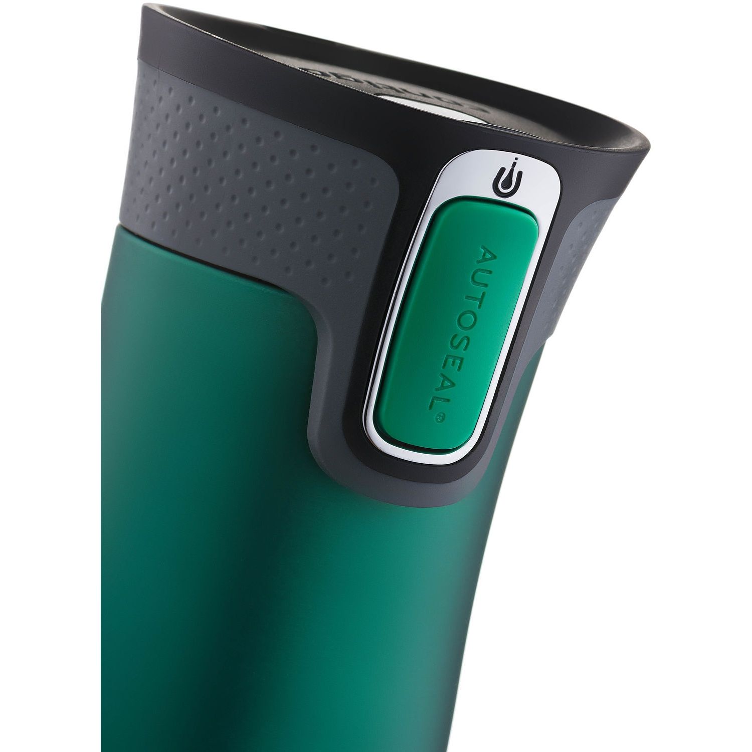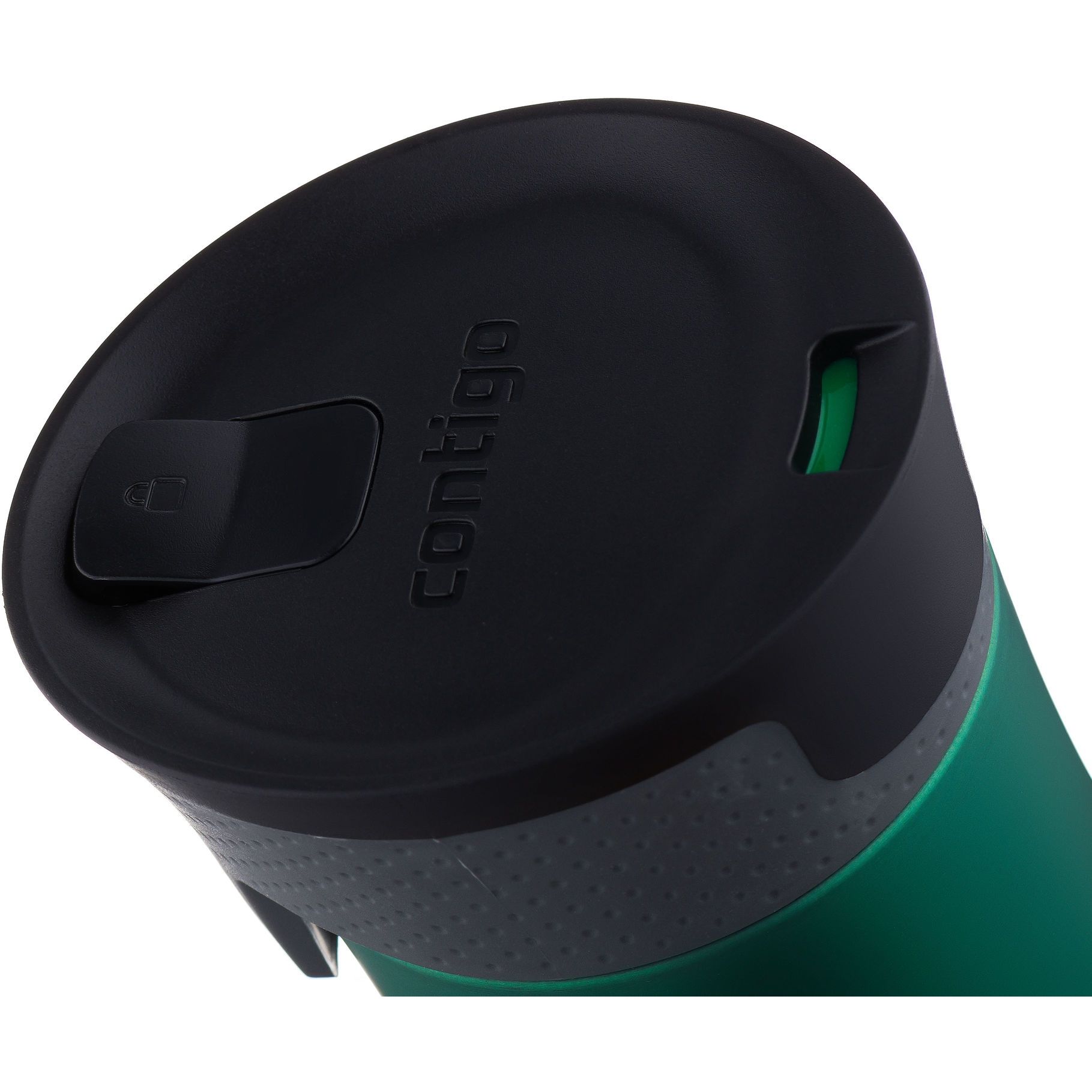 Cana termorezistenta Contigo West Loop. Capacitate 470ml. 100% garantat impotriva scurgerilor sau varsarii de lichid. Sistem unic de inchidere integrat in sistemul Autoseal®. Apasati butonul in sus ca sa inchideti sau in jos ca sa deschideti. Tehnologia de izolare in vid pastreaza temperatura bauturilor calde pana la 5 ore si a celor reci pana la 12 ore. AUTOSEAL® inchide automat intre inghitituri pentru a asigura ca nu se varsa nici macar un strop de lichid. Apasati sa beti. Eliberati capacul pentru auto-sigilare. Operare cu o singura mana. Pereti dubli de otel inoxidabil rezistent la pete. Sigur pentru raftul superior al masinii de spalat vase. Capacul se pivoteaza deschis pentru o curatare usoara. Culoare: Emerald Green.
