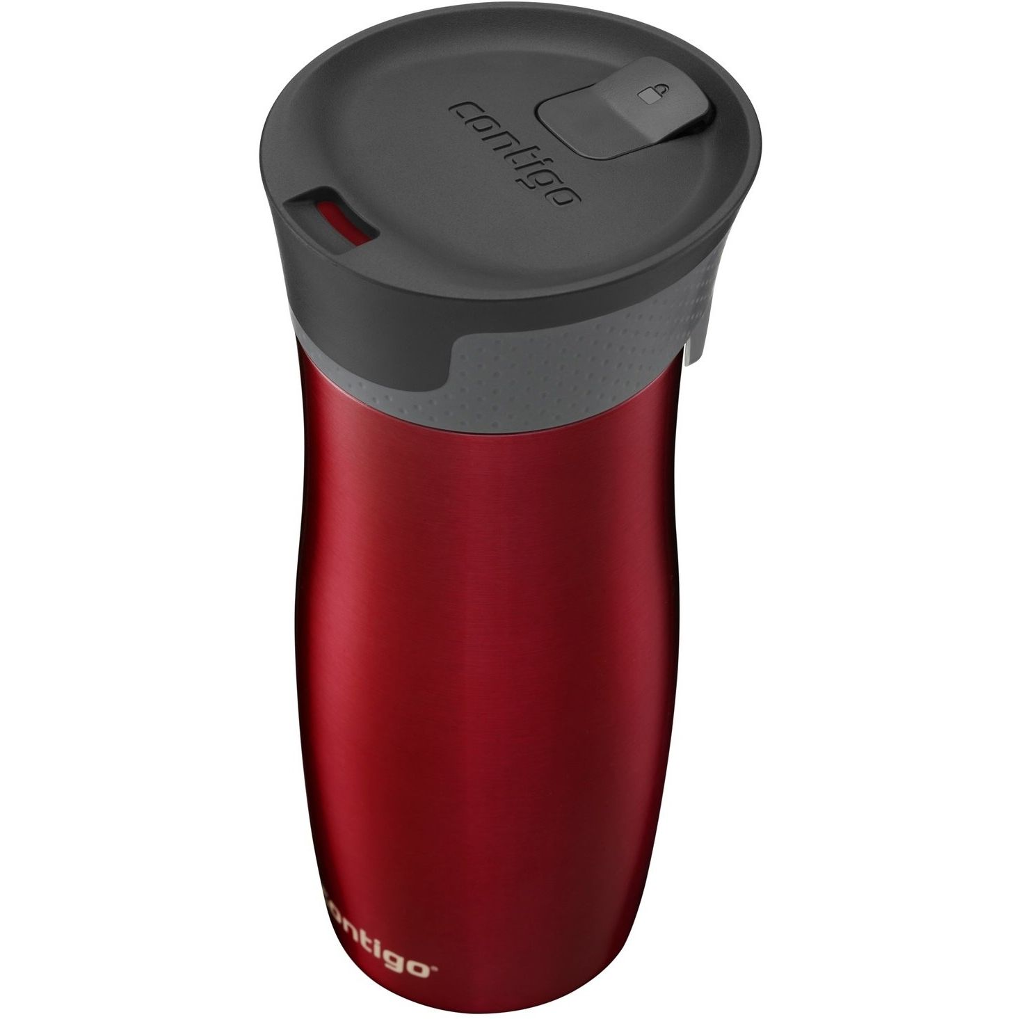Cana termorezistenta Contigo West Loop. Capacitate 470ml. 100% garantat impotriva scurgerilor sau varsarii de lichid. Sistem unic de inchidere integrat in sistemul Autoseal®. Apasati butonul in sus ca sa inchideti sau in jos ca sa deschideti. Tehnologia de izolare in vid pastreaza temperatura bauturilor calde pana la 5 ore si a celor reci pana la 12 ore. AUTOSEAL® inchide automat intre inghitituri pentru a asigura ca nu se varsa nici macar un strop de lichid. Apasati sa beti. Eliberati capacul pentru auto-sigilare. Operare cu o singura mana. Pereti dubli de otel inoxidabil rezistent la pete. Sigur pentru raftul superior al masinii de spalat vase. Capacul se pivoteaza deschis pentru o curatare usoara. Culoare: Red.
