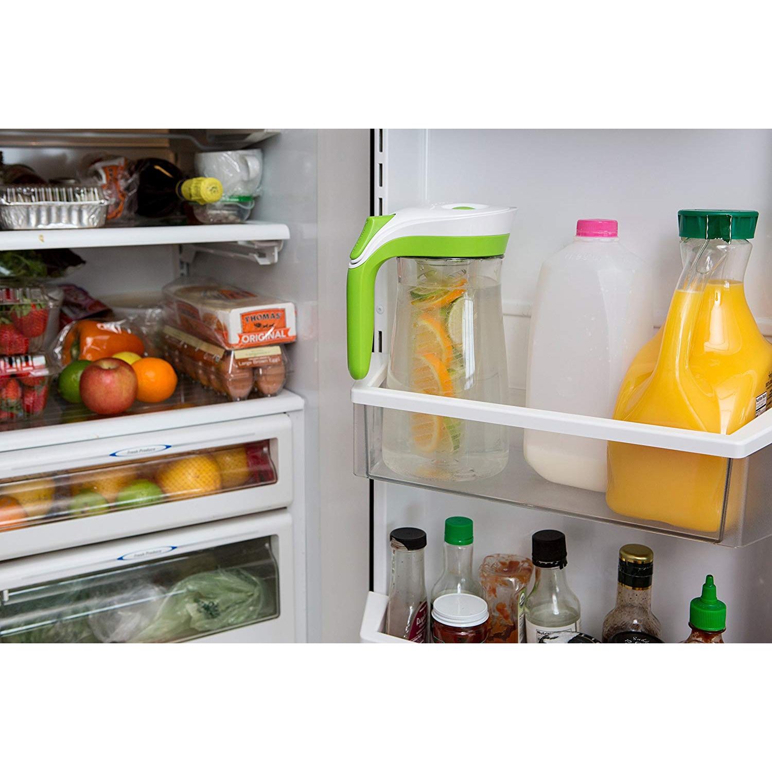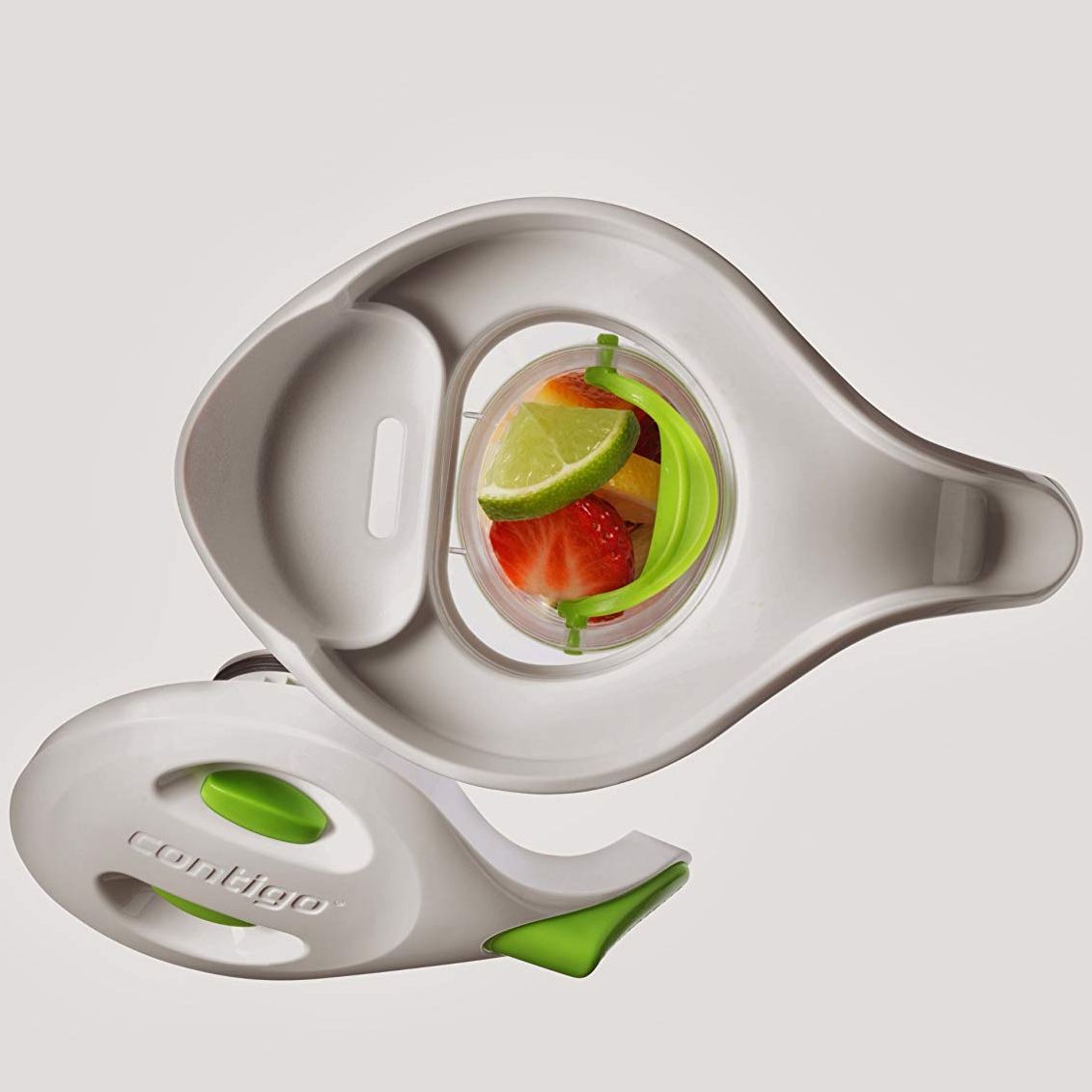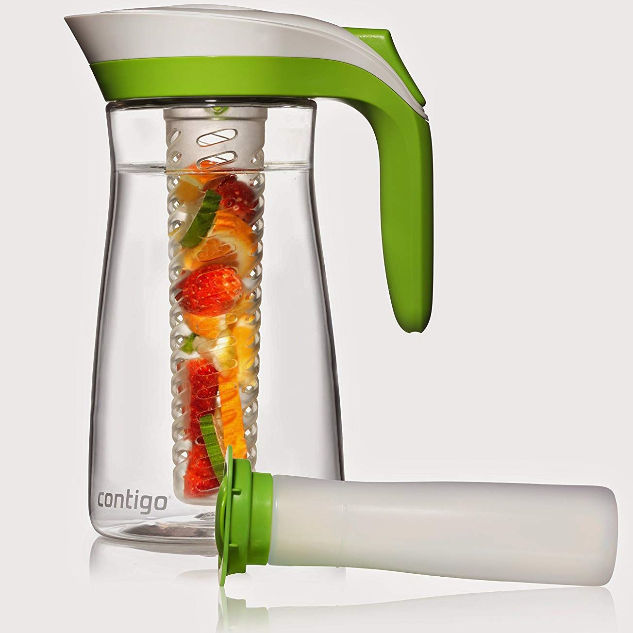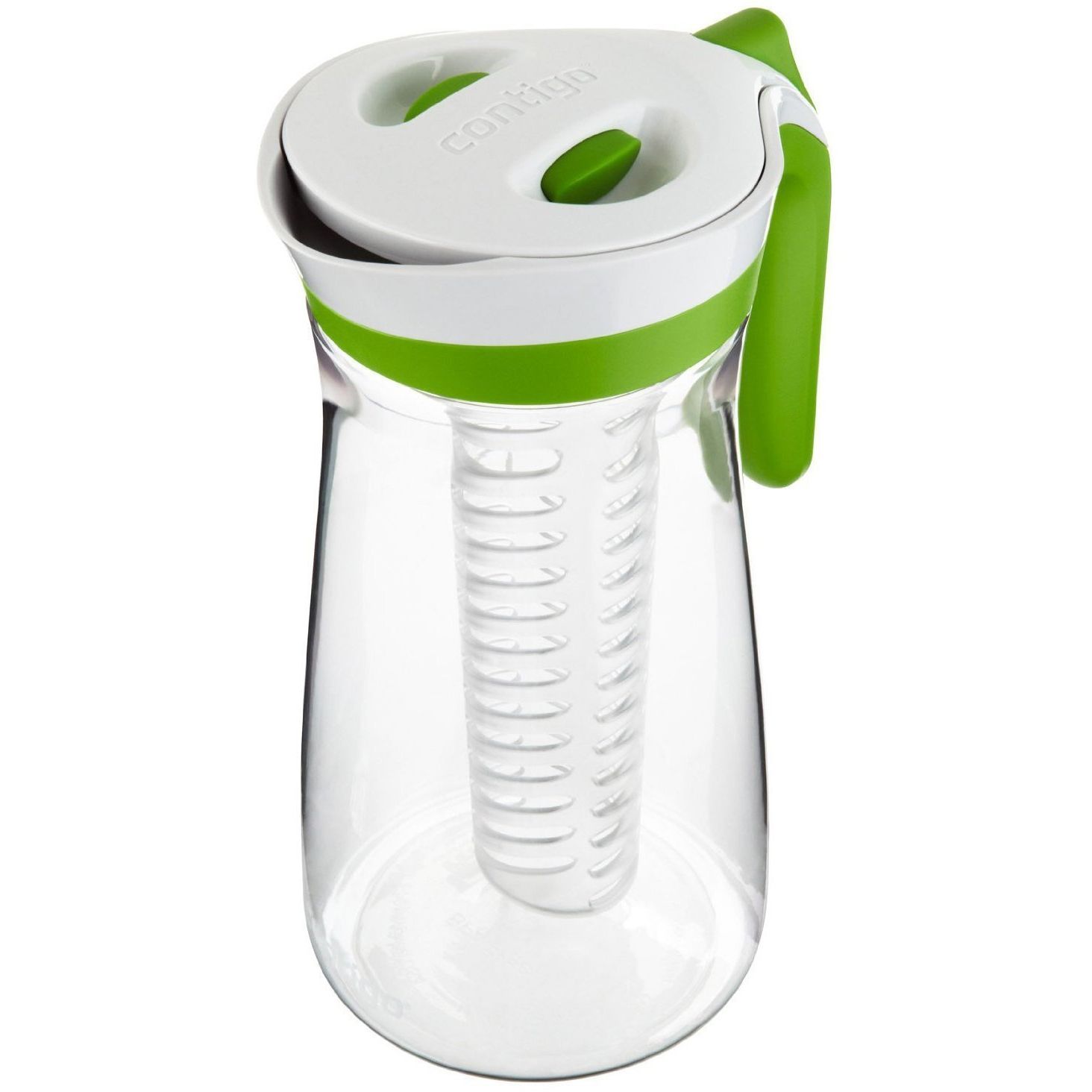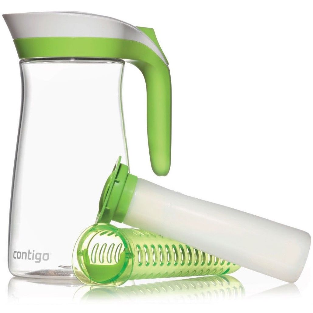 Carafa Contigo Lakeview. Capacitate 2.1 litri. Contine infuzor si bagheta de congelare. 100% garantat impotriva scurgerilor sau varsarii de lichid. AUTOSEAL® inchide automat intre inghitituri pentru a asigura ca nu se varsa nici macar un strop. Vasul se auto-sigileaza atunci cand nu turnati lichid. Operare cu o singura mana; apasati butonul ca sa turnati lichid, eliberati butonul pentru auto-sigilare. Acces capac cu eliberare rapida pentru umplere usoara si agitare. Dotat cu 2 accesorii: infuzor ca sa adaugi fructe proaspete, (menta sau alte condimente) si o bagheta “freeze” pentru a pastra bauturile reci. Nu se pateaza si nu retine mirosuri. Durabil cu rezistenta mare la impact. Sigur pentru raftul superior al masinii de spalat vase. Culoare: Citrus.