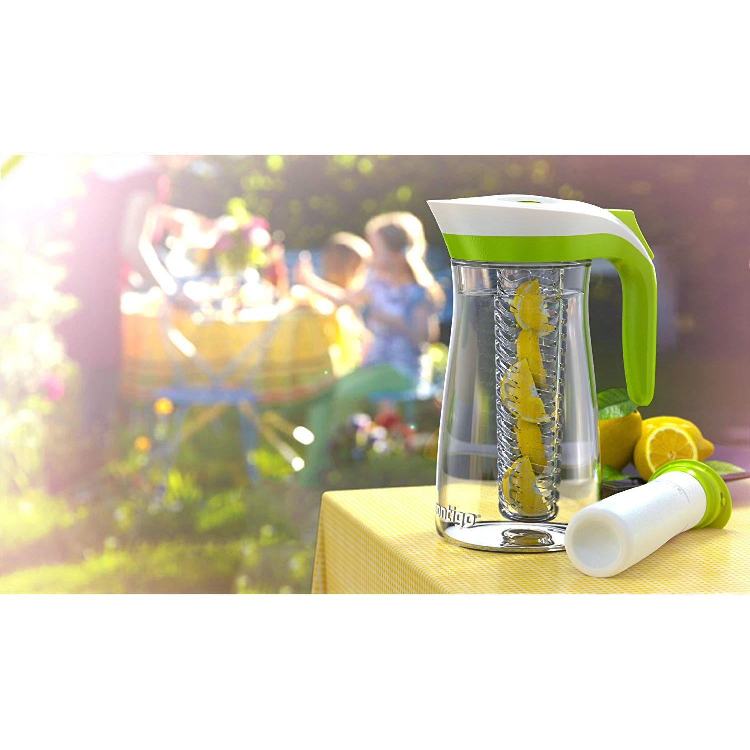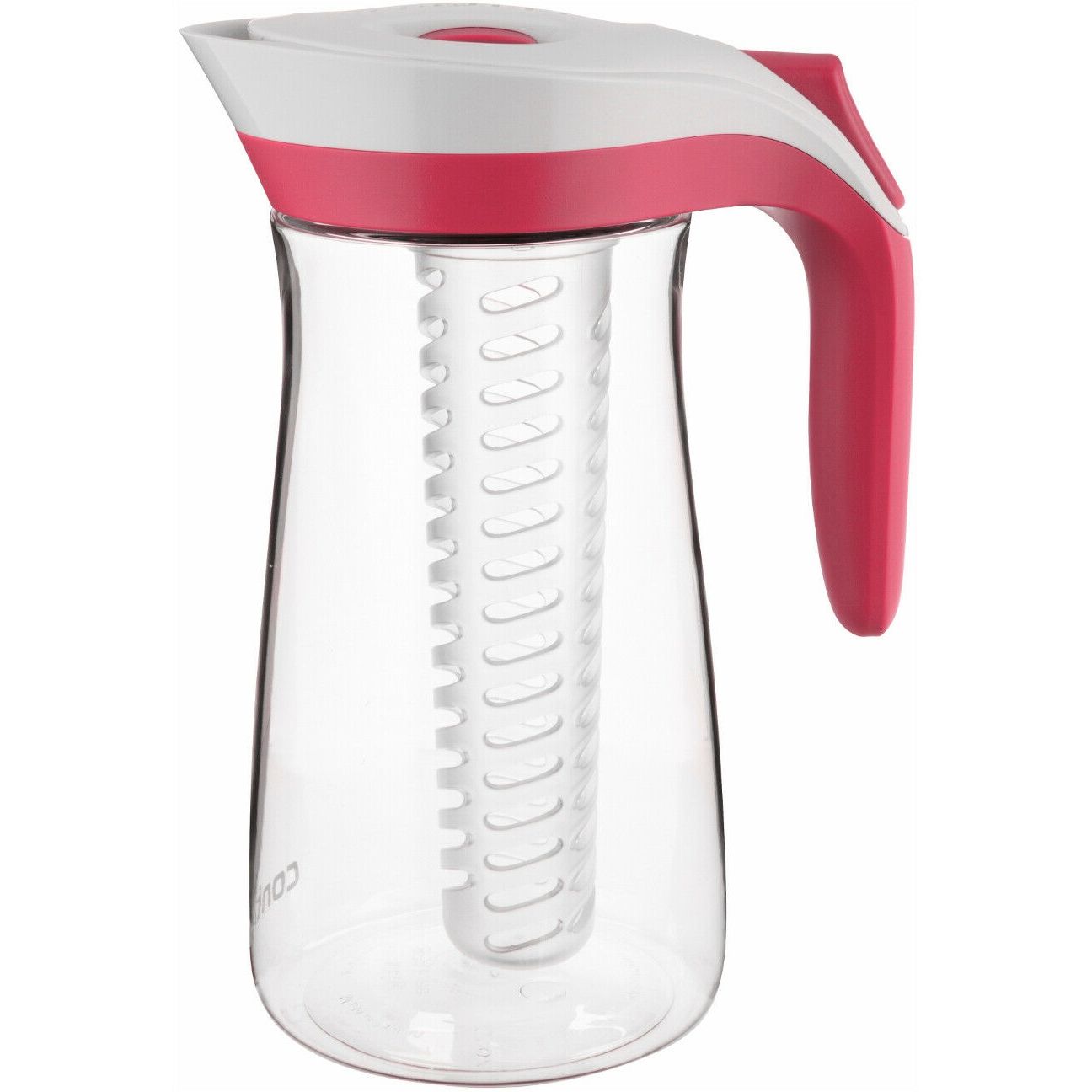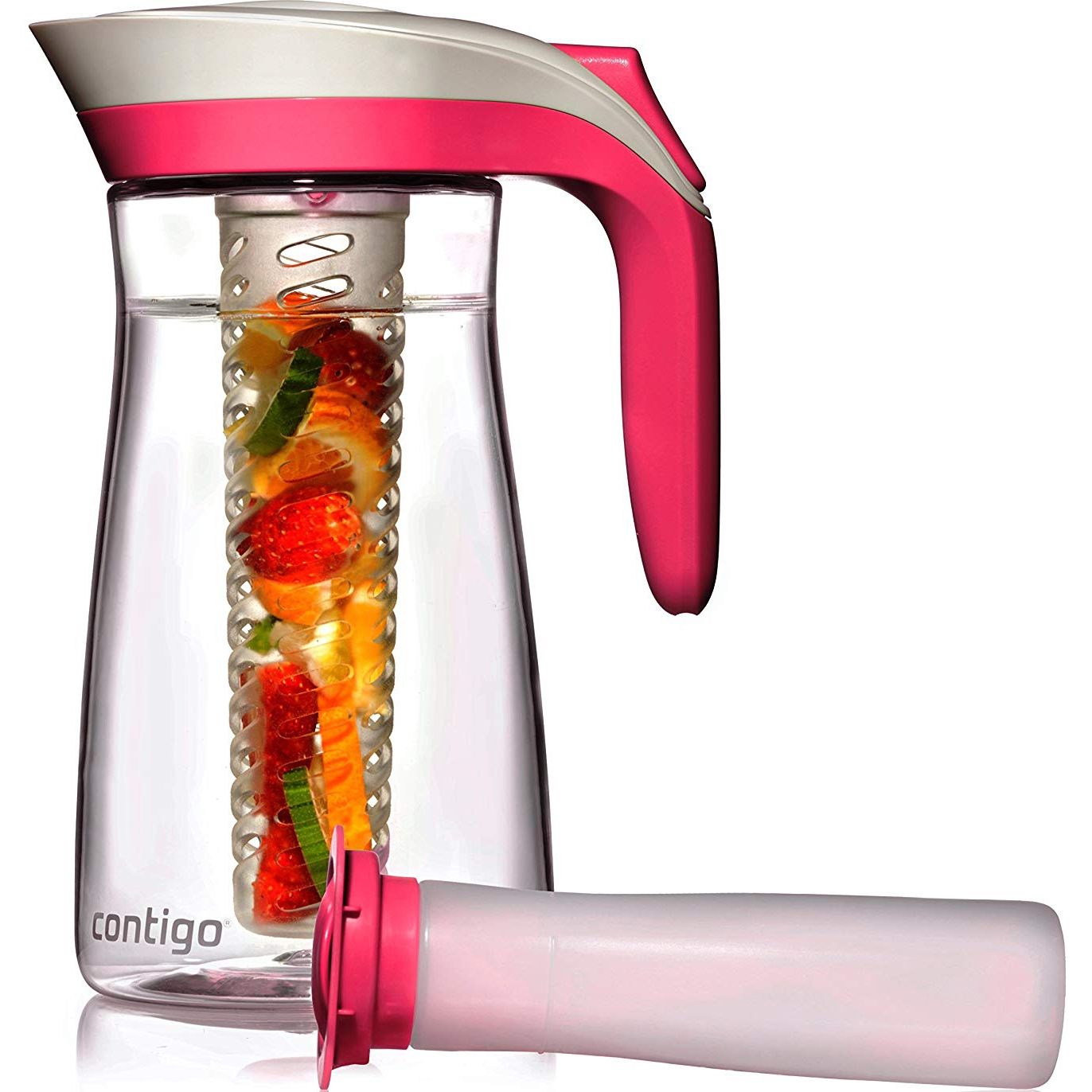 Carafa Contigo Lakeview. Capacitate 2.1 litri. Contine infuzor si bagheta de congelare. 100% garantat impotriva scurgerilor sau varsarii de lichid. AUTOSEAL® inchide automat intre inghitituri pentru a asigura ca nu se varsa nici macar un strop. Vasul se auto-sigileaza atunci cand nu turnati lichid. Operare cu o singura mana; apasati butonul ca sa turnati lichid, eliberati butonul pentru auto-sigilare. Acces capac cu eliberare rapida pentru umplere usoara si agitare. Dotat cu 2 accesorii: infuzor ca sa adaugi fructe proaspete, (menta sau alte condimente) si o bagheta “freeze” pentru a pastra bauturile reci. Nu se pateaza si nu retine mirosuri. Durabil cu rezistenta mare la impact. Sigur pentru raftul superior al masinii de spalat vase. Culoare: Watermelon.