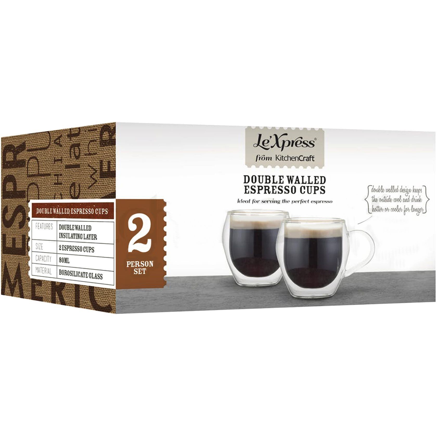 Set două ceşti espresso din sticla "Le'Xpress", marca Kitchen Craft.