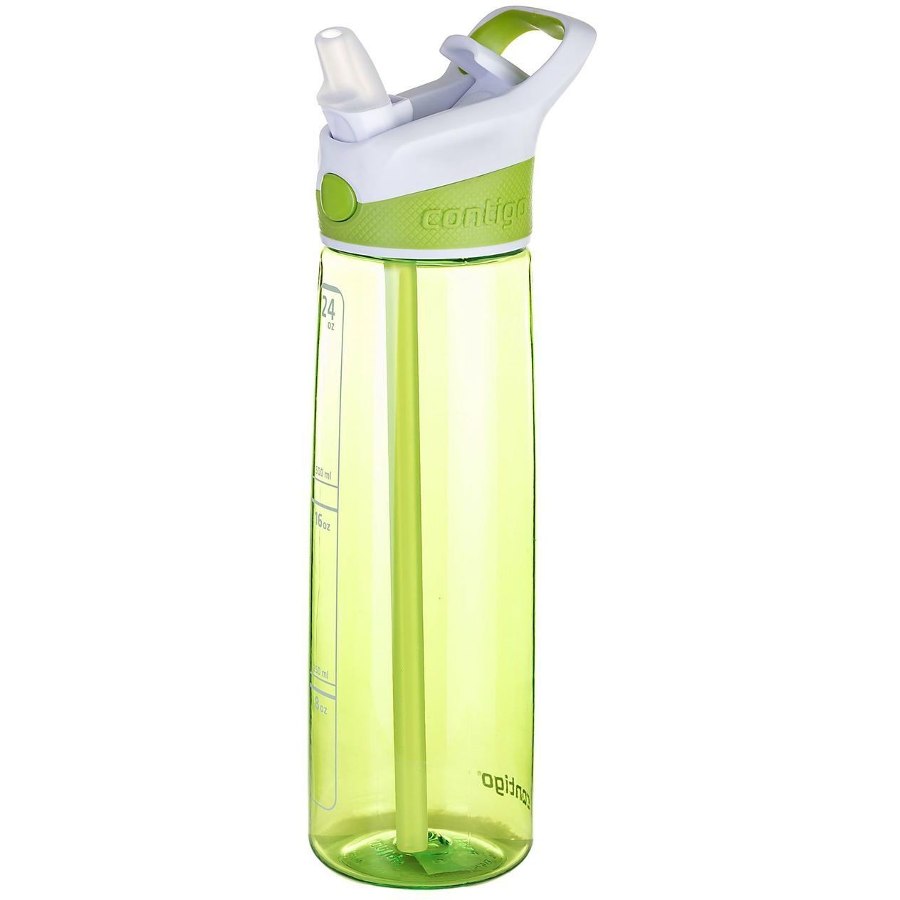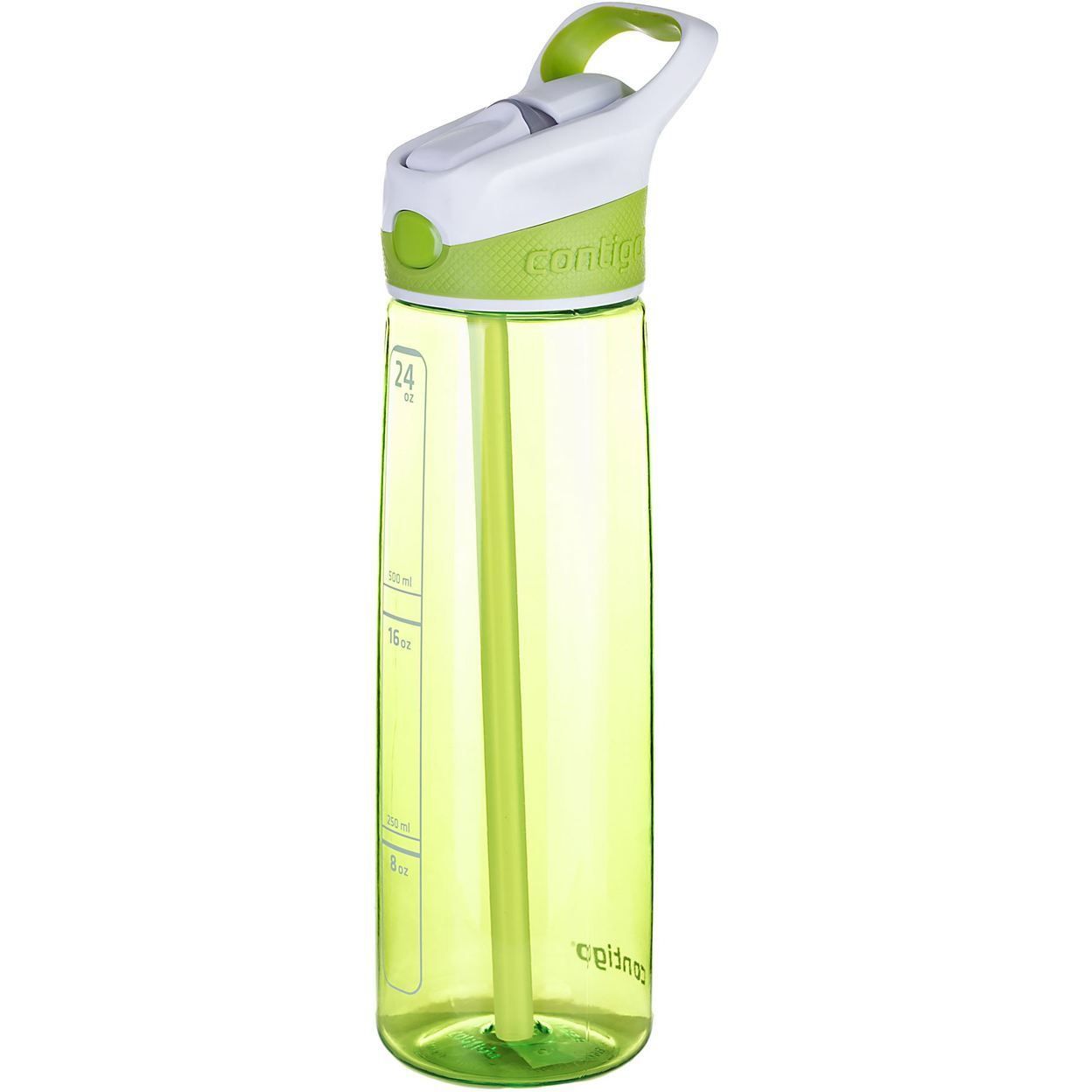 Sticla de apa Contigo Addison. Capacitate 720ml. 100% garantat impotriva scurgerilor sau varsarii de lichid. Manson din cauciuc pentru confort sporit. Bucla incorporata pentru transport facil. Operare cu o singura mana. Tehnologia AUTOSPOUT pastreaza supapa capacului etans inchisa blocand scurgerea lichidului. Fabricat din copolyster Tritan transparent, fara BPA. Material durabil si rezistant la socuri. Sigur pentru raftul superior al masinii de spalat vase. Culoare: Citron/White.
