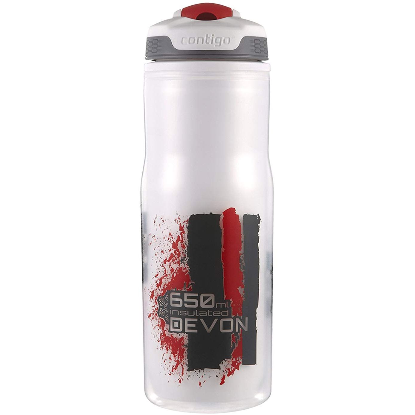 Sticla de apa Contigo Devon Insulated. Capacitate 650ml. Protectia capacului mentine sticla de apa curata si protejata. Constructia cu perete dublu mentine temperatura lichidului mai bine decat alte sticle pentru sport. 100% garantat impotriva scurgerilor sau varsarii de lichid. Butonul AUTOSPOUT™ opereaza duza de baut cu o singura atingere. Stilul de operare si tehnologia AUTOSPOUT recomanda aceasta cana special pentru ciclisti. Ciocul nu trebuie muscat, ceea ce face administrarea de fluid mult mai comoda si, in acelasi timp, mult mai igienica. Operare cu o singura mana. Nu contine BPA. Sigur pentru raftul superior al masinii de spalat vase. Culoare: Red.