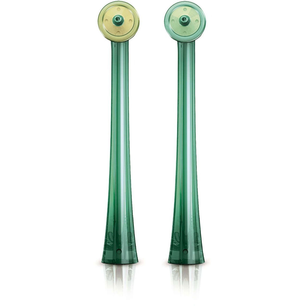 Vârful de ghidaj asigură amplasarea corectă. Capul înclinat şi subţire și vârful de ghidaj facilitează găsirea amplasării corecte. Nu trebuie decât să glisezi vârful de-a lungul suprafeţei dintelui lângă linia gingiilor până când intră în spaţiul dintre dinţi.