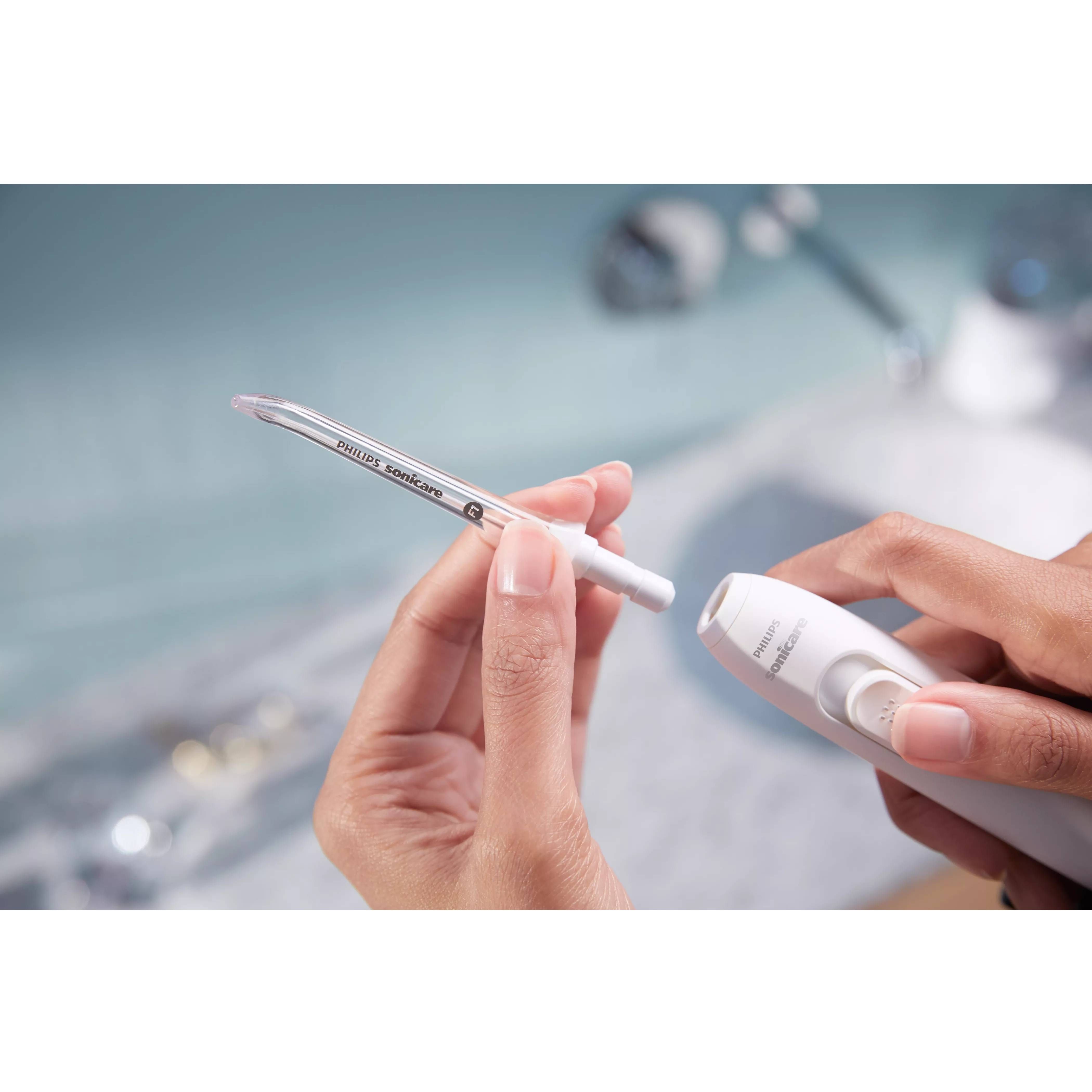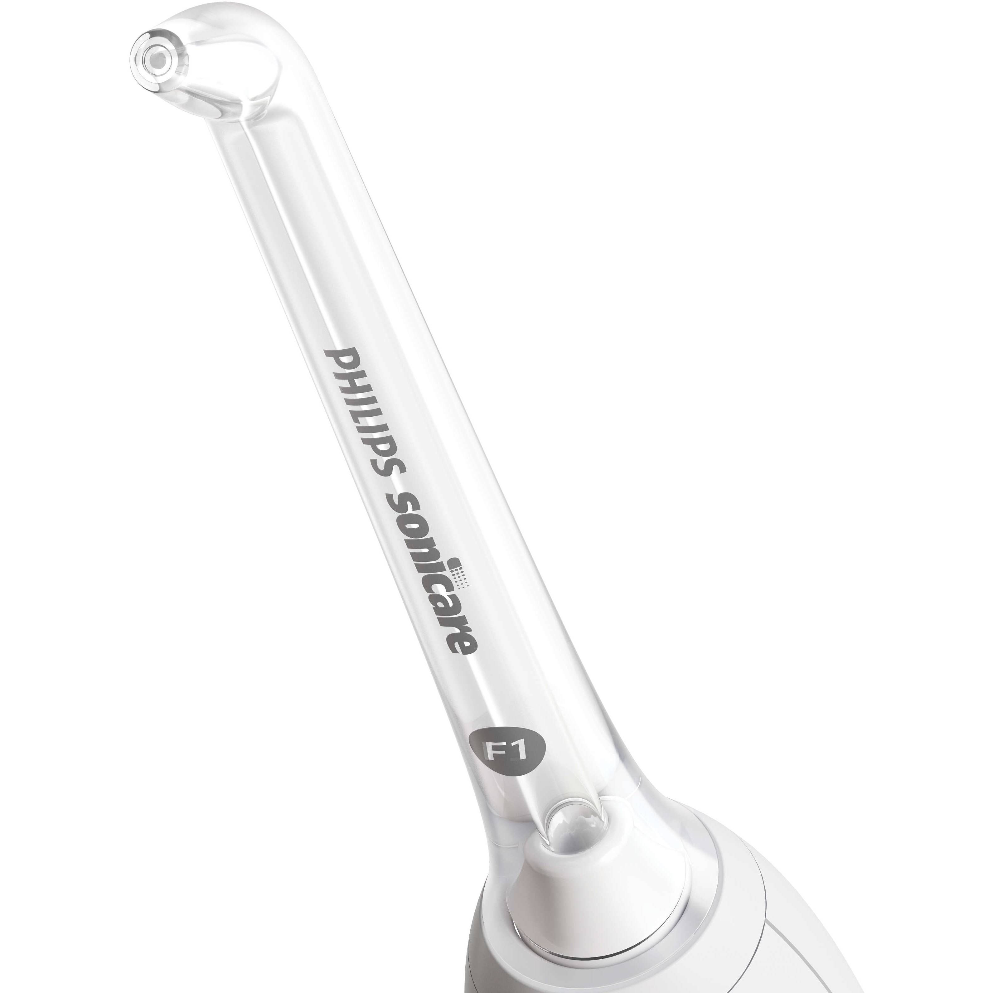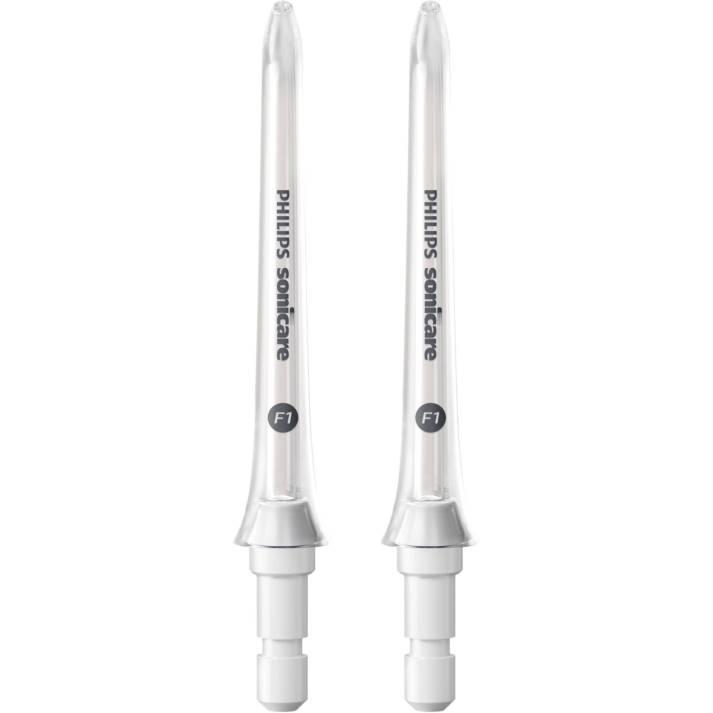 Set de 2 capete irigator oral Philips Sonicare F1 Standard HX3042/00, Cap de curățare Standard cu un singur jet de apă pentru îndepărtarea resturilor și a plăcii bacteriene