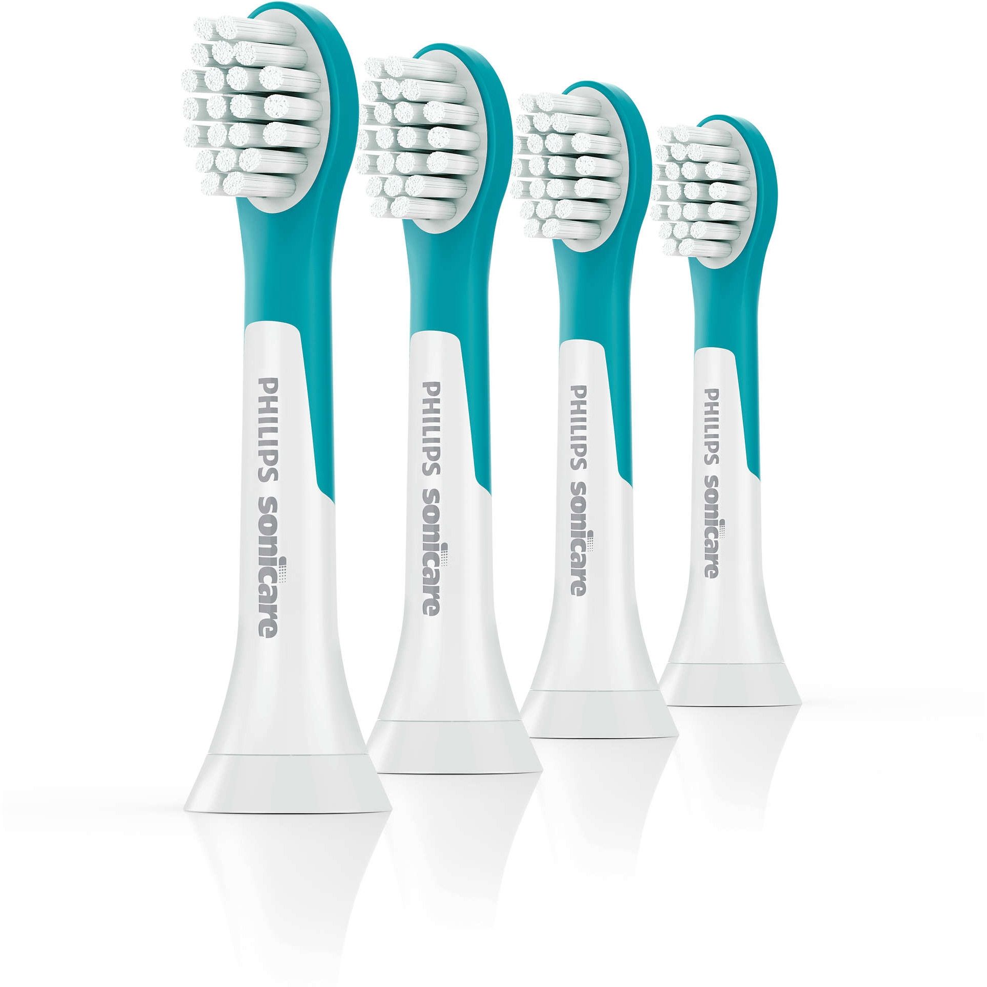 Vârsta 3+. Capul de periuţă de dinţi standard Philips Sonicare for Kids are un profil astfel conturat încât să se potrivească dinţilor copilului tău cu vârsta de peste 3 ani şi peri moi care asigură o experienţă de periaj delicată. De asemenea, este prevăzut cu o perniţă de cauciuc plasată pe spatele capului de periaj, pentru o curăţare mai sigură, mai plăcută. Disponibil şi în varianta de dimensiuni standard, mai mari, pentru copii cu vârsta peste 7 ani.