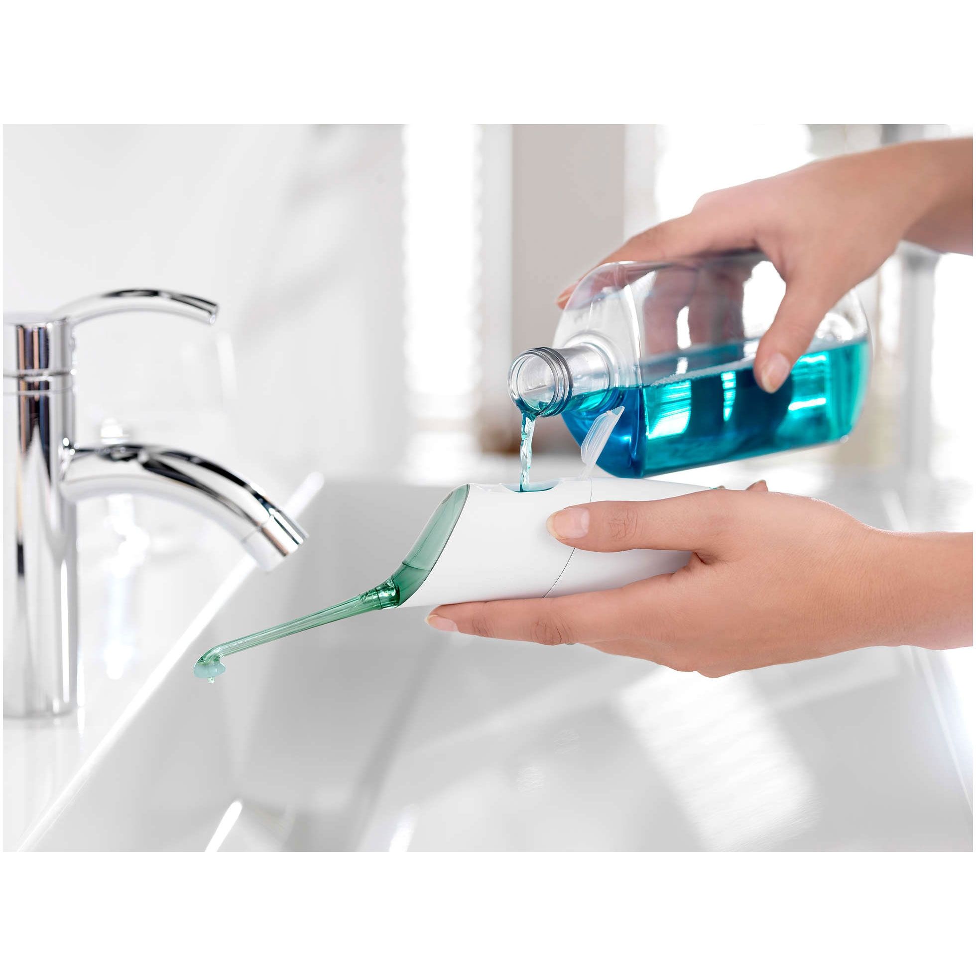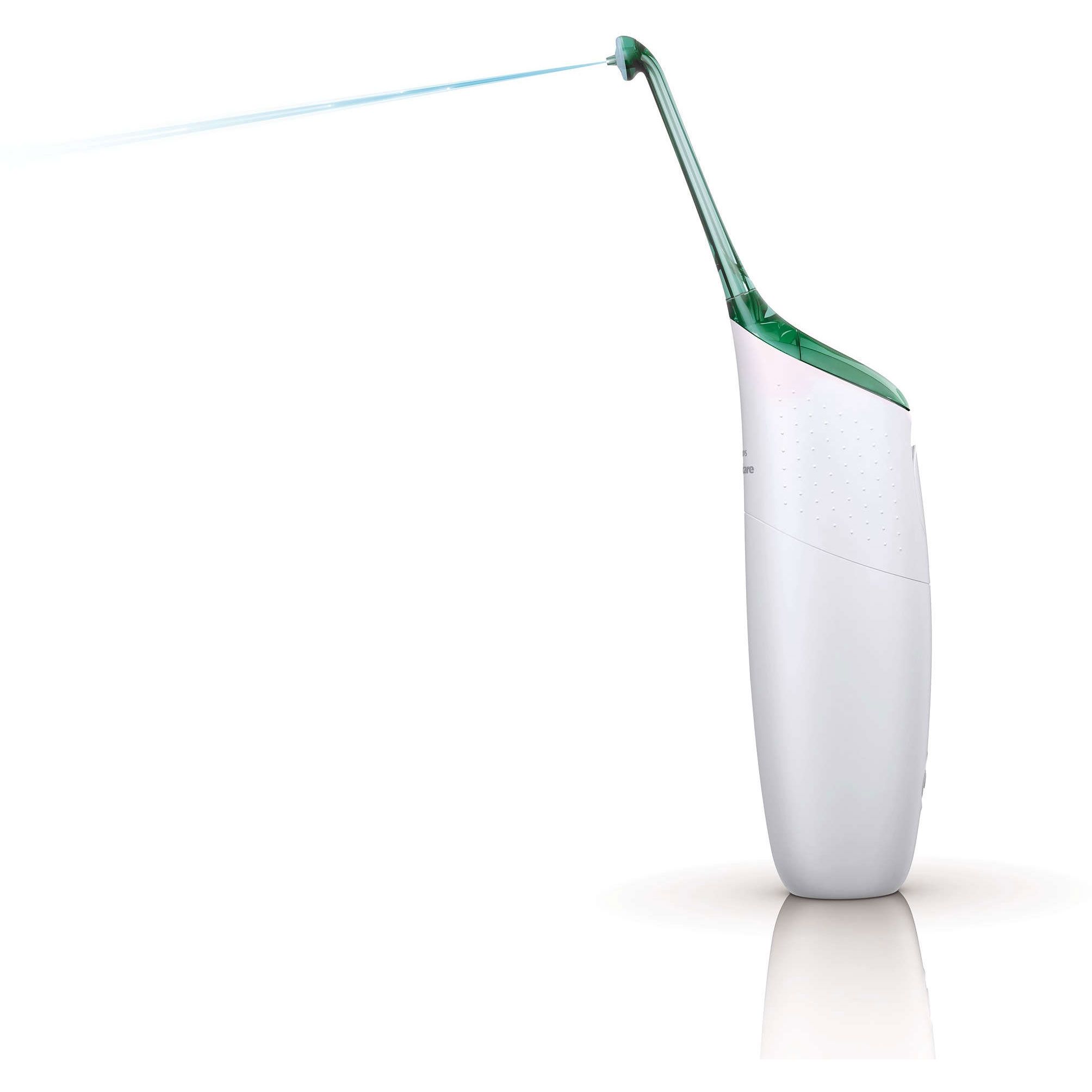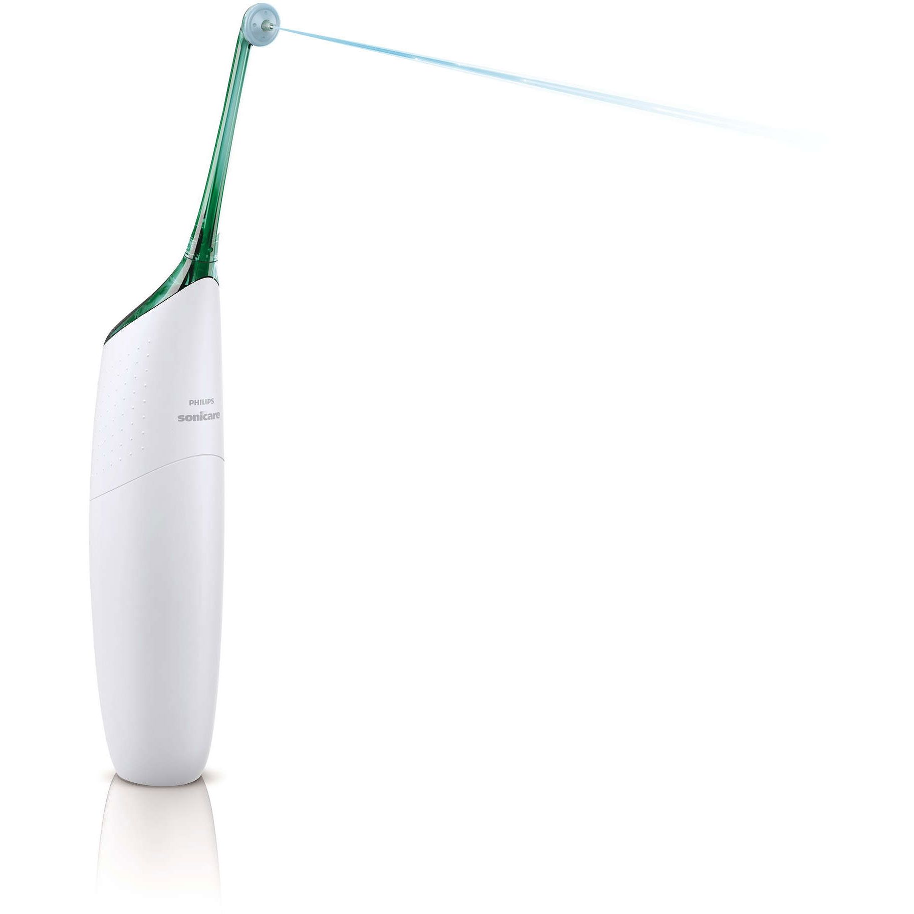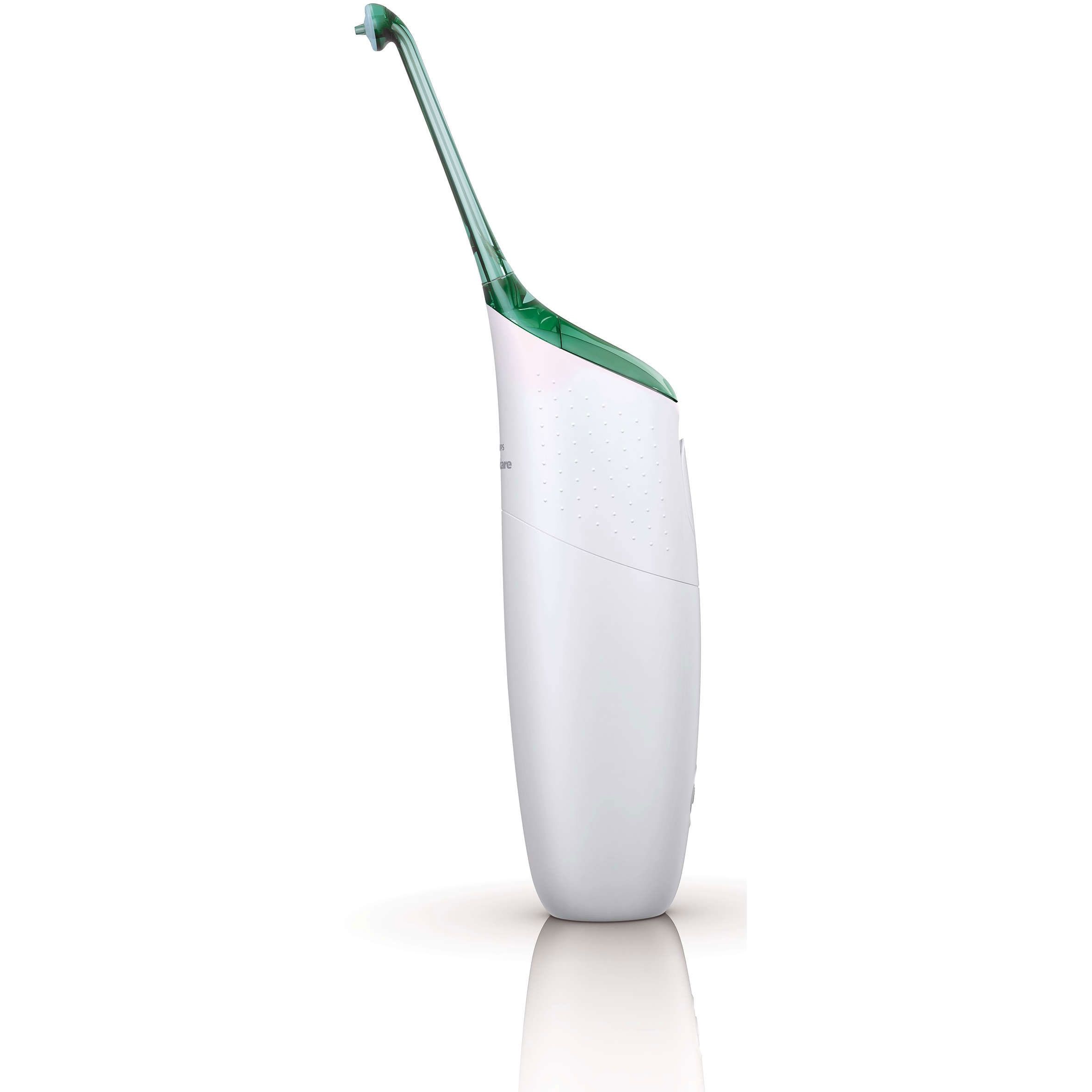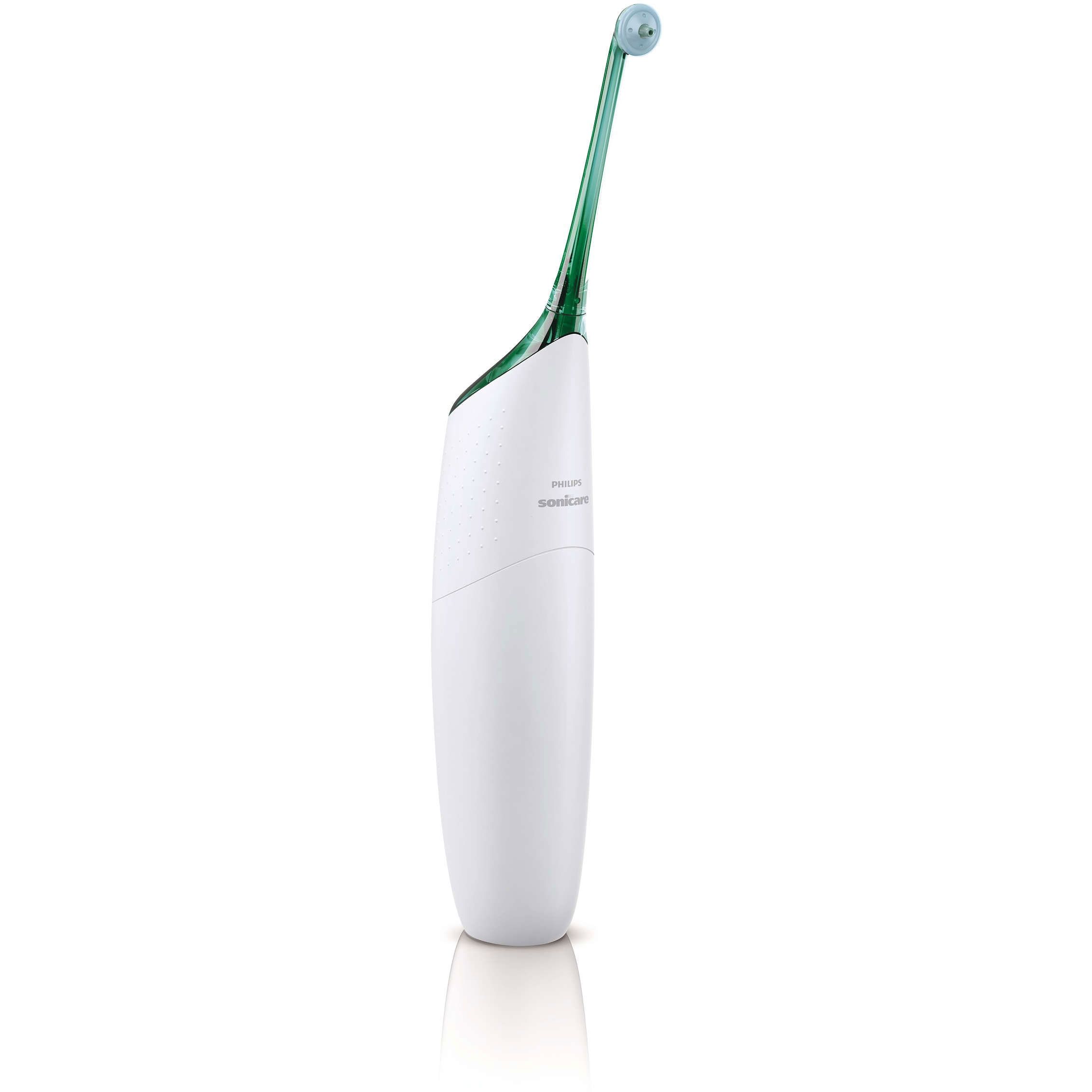 Mâner confortabil şi ergonomic. Fiind proiectat să fie uşor de manevrat în spaţii mici, AirFloss are un mâner confortabil şi ergonomic cu suprafaţă antialunecare.