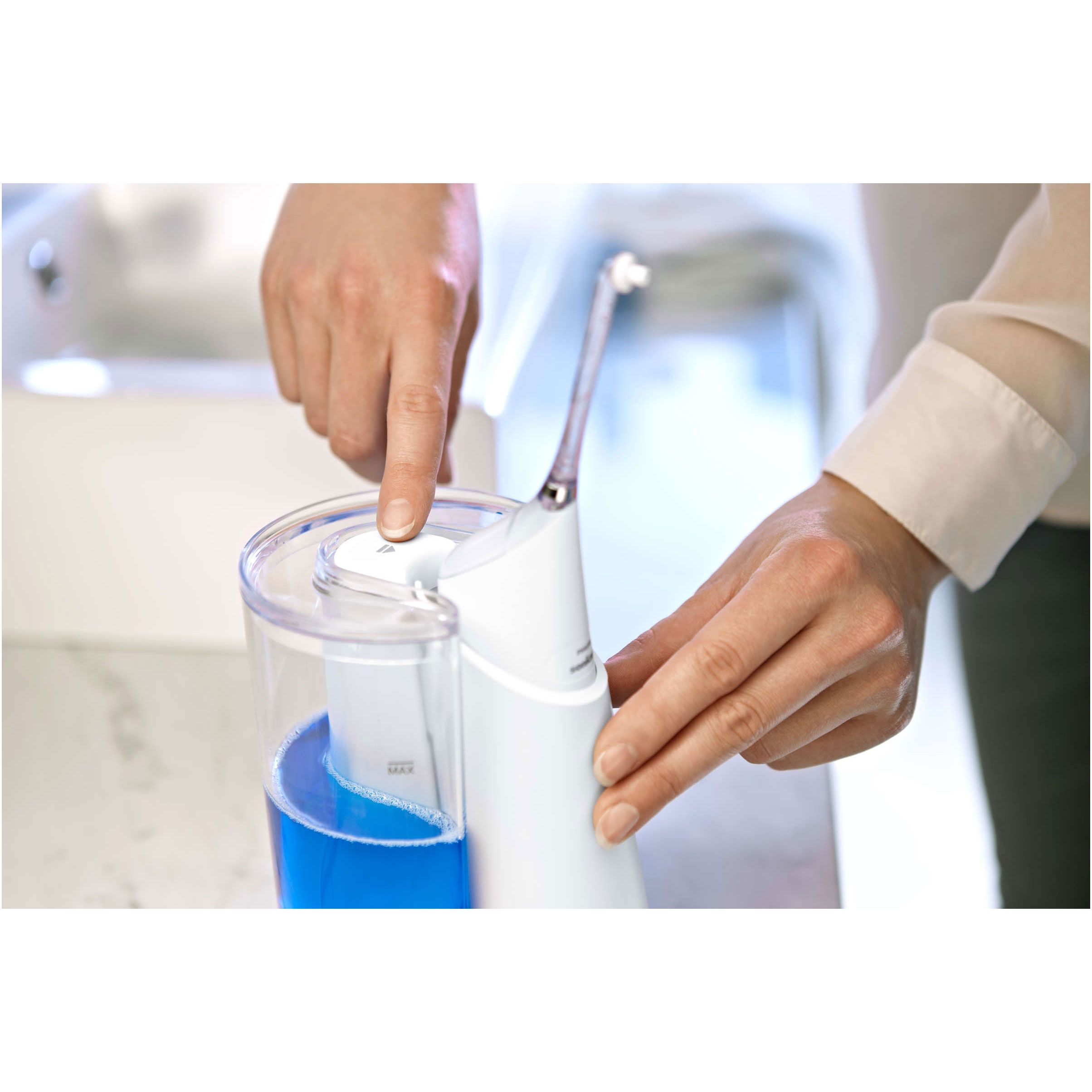Durează numai 60 de secunde: orientare, apăsare, curăţare! Cu AirFloss Ultra, curăţarea întregii guri durează mai puţin de 60 de secunde pe zi. Pur şi simplu selectezi frecvenţa jeturilor (unic, dublu sau triplu) şi ţii apăsat butonul de activare pentru jeturi continue automate sau îl apeşi şi-l eliberezi pentru modul cu jeturi manuale. Senzaţie de prospeţime datorită apei de gură Senzaţie de prospeţime datorită apei de gură Utilizează cu apa de gură, pentru o prospeţime excepţională şi pentru combaterea microbilor.